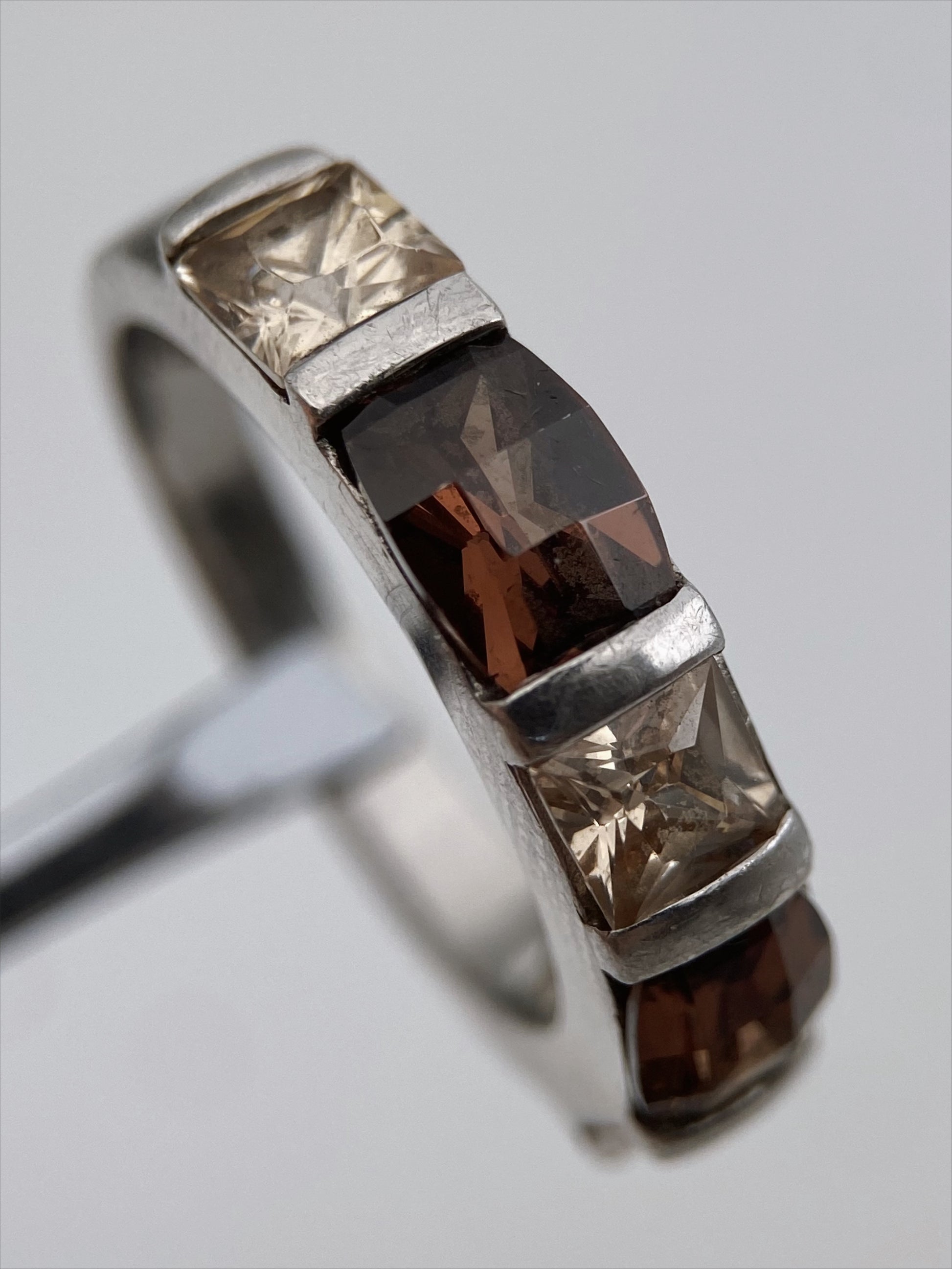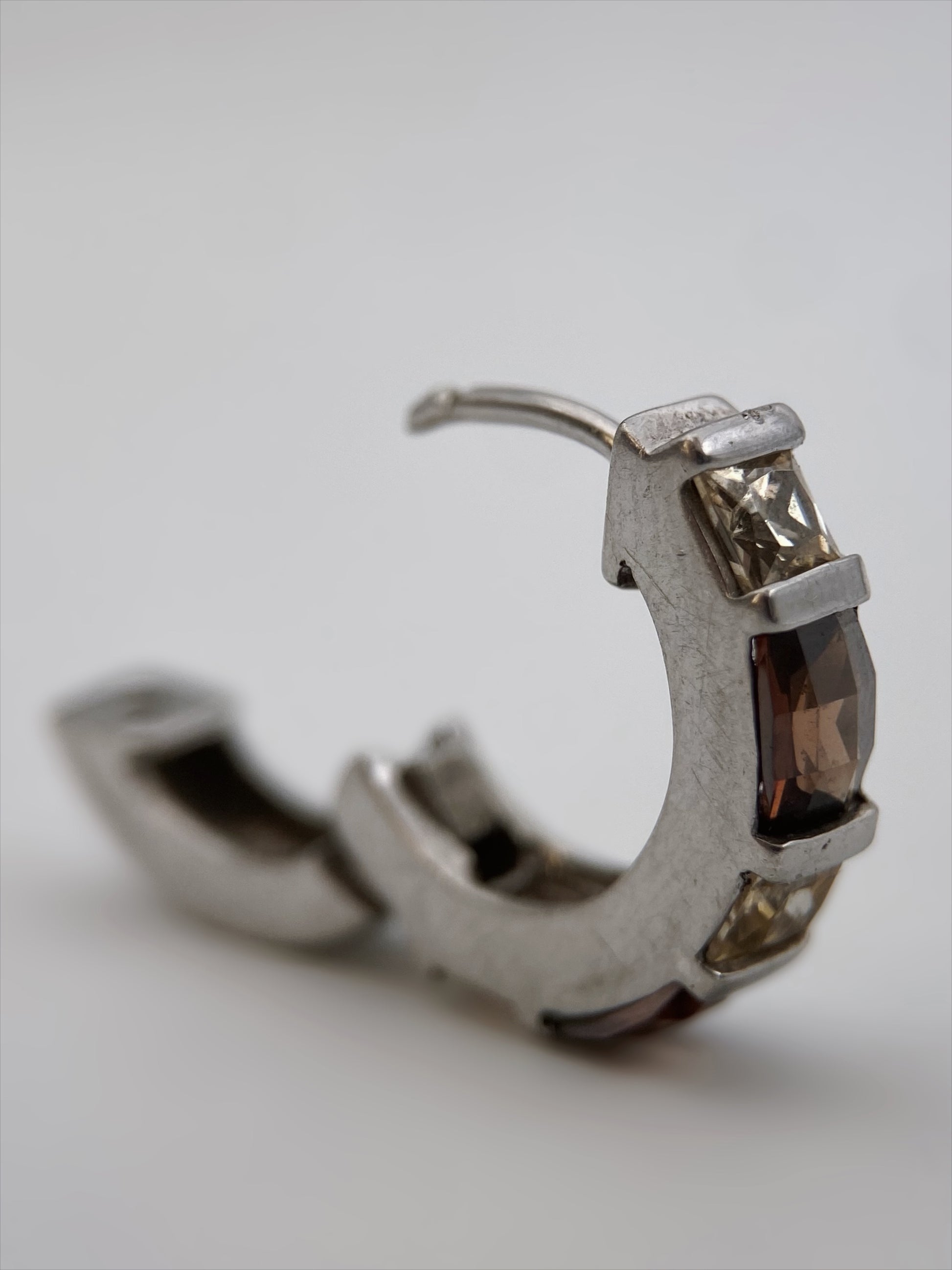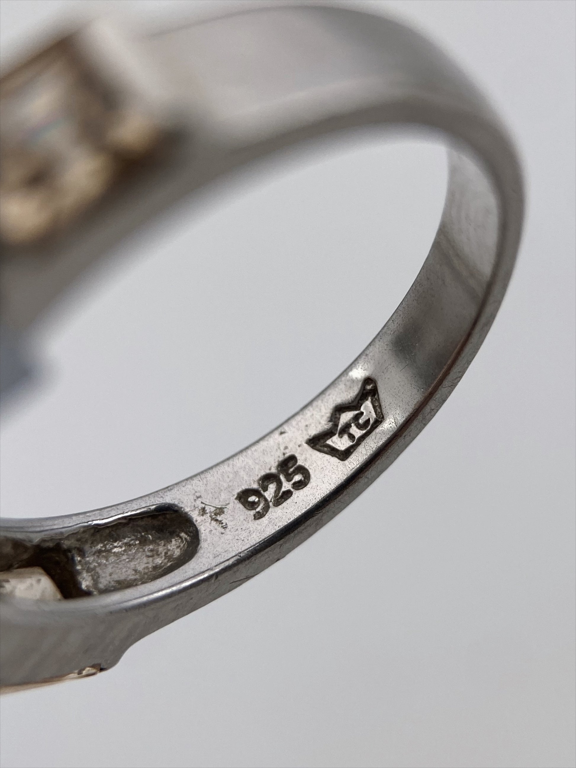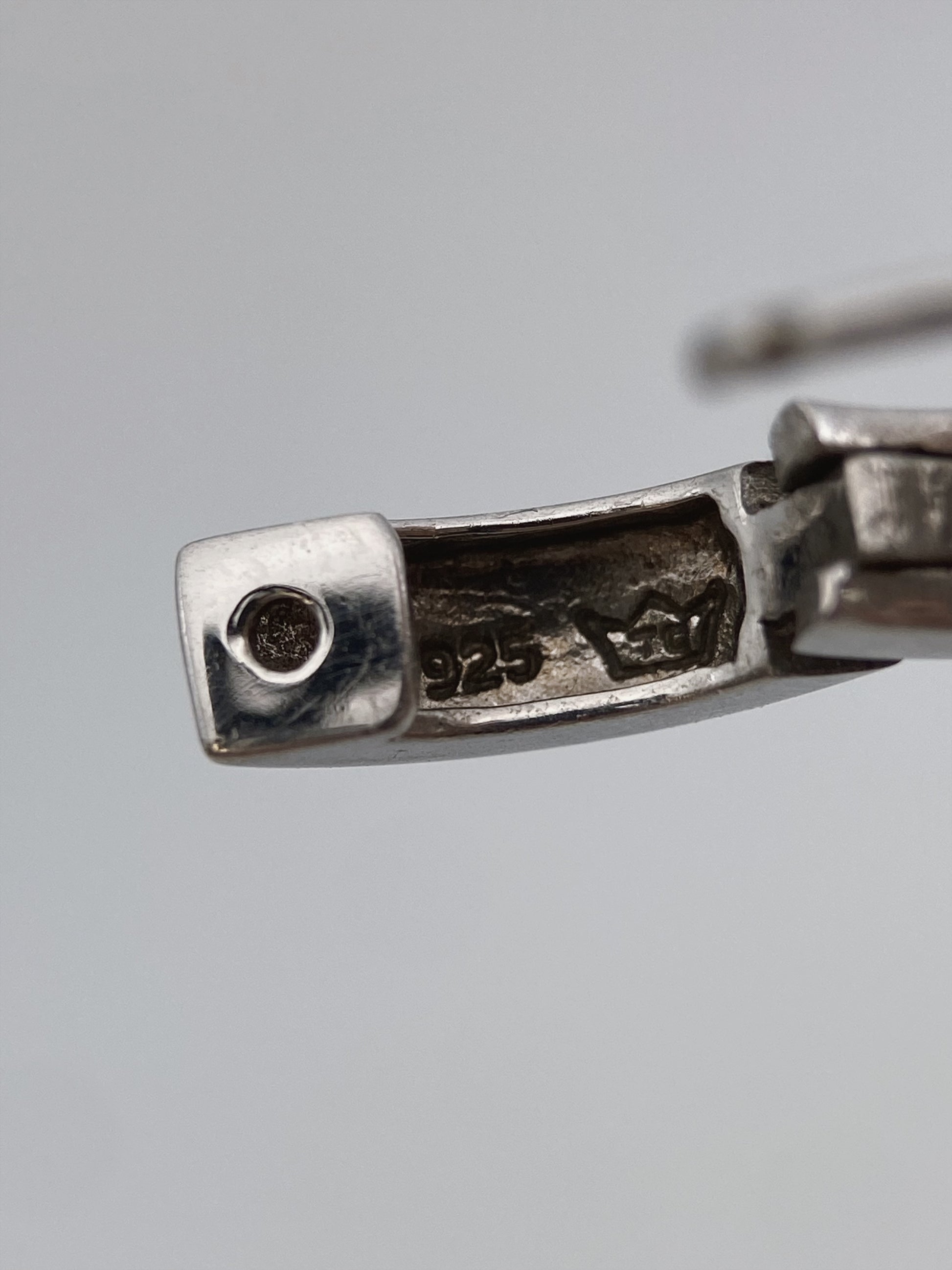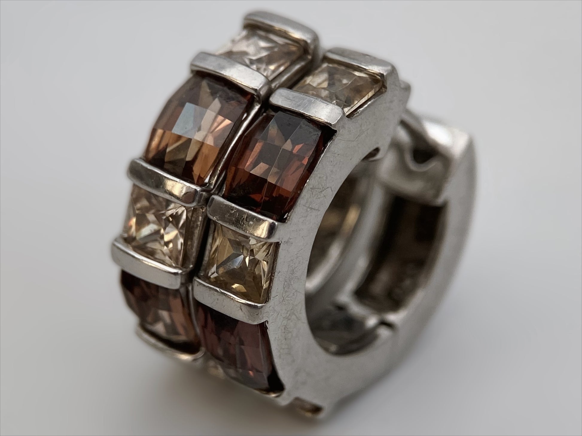 Sudėtis: sidabras, stiklo kristalai Būklė: labai gera Išmatavimai (auskarai): 1,5 x 0,5 cm Vidinės dalies skersmuo (žiedas): 18 mm Spalva: sidabro, ruda, rusva Šalis: Vokietija Žymėjimas: “925, karūna” Laikotarpis: 1990-2010 metai Rinkos vertė: 45-60 EUR