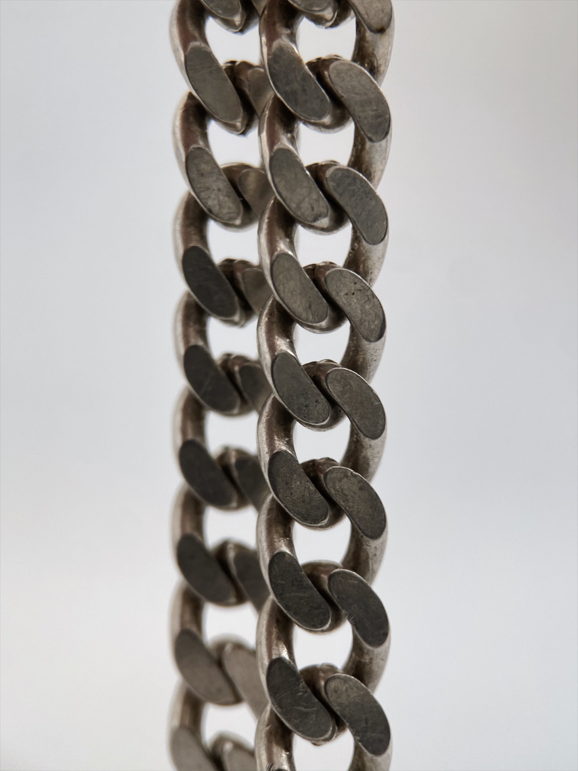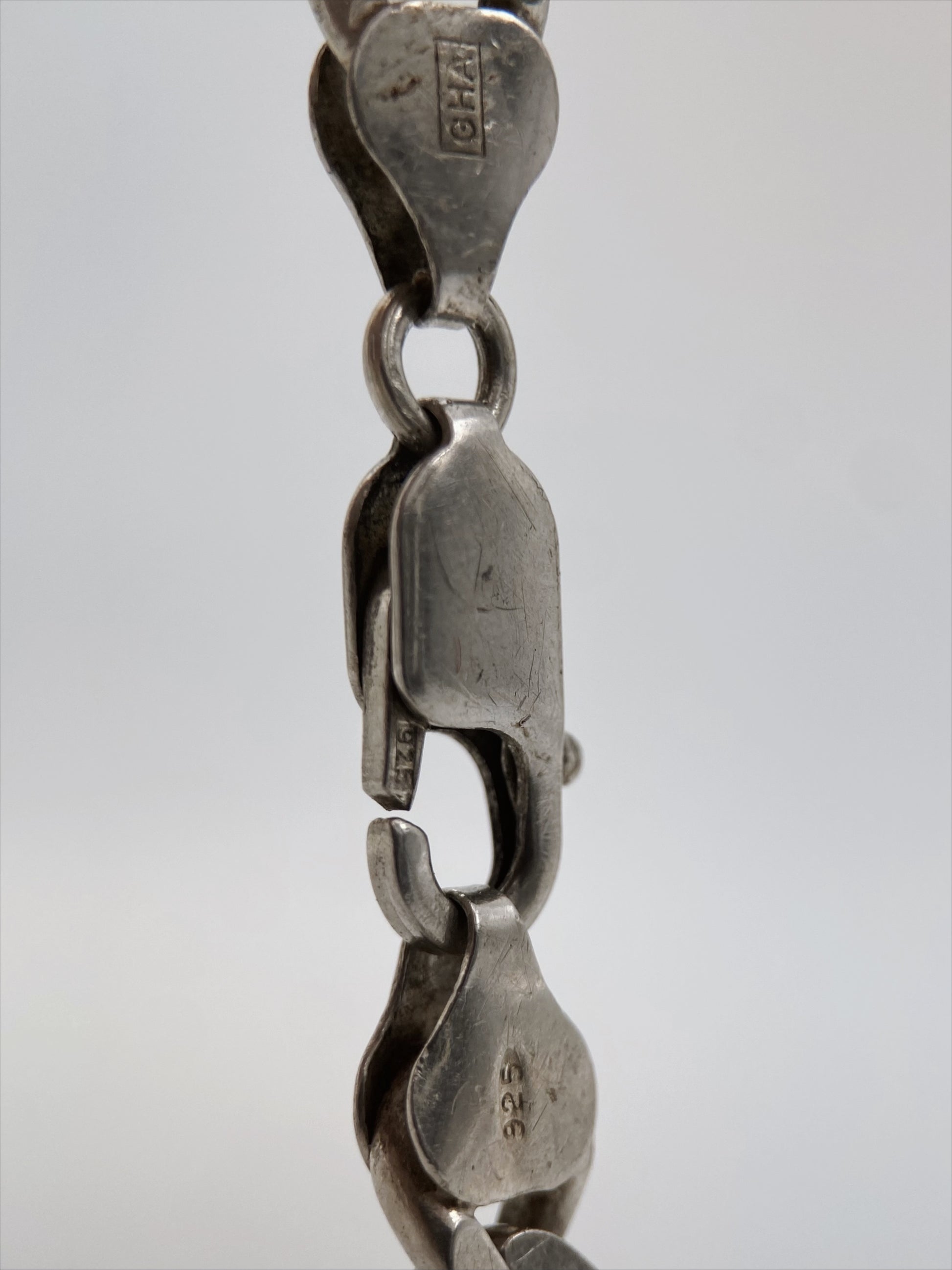 Originali Anderssons Gravyr & Guldsmedsverk (GHA) sidabrinė apyrankė, pagaminta Švedijoje apie XX a. vidurį–pabaigą. Klasikinio curb tipo grandinėlė su patikimu užsegimu – solidus, lygus paviršius su natūralia patina.