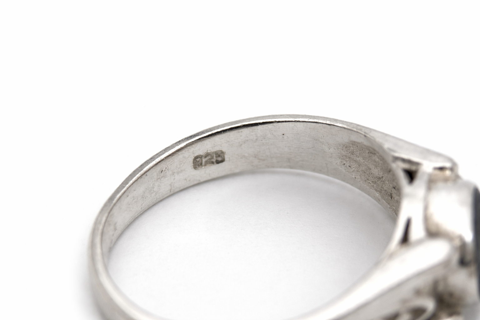 Sudėtis: sidabras, kianitas Būklė: labai gera Vidinės dalies skersmuo: 17,7 mm (7,5 dydis) Spalva: sidabro, mėlyna Šalis: Vokietija Žymėjimas: "925” Laikotarpis: 1990-2000 metai Rinkos vertė: 25-40 €