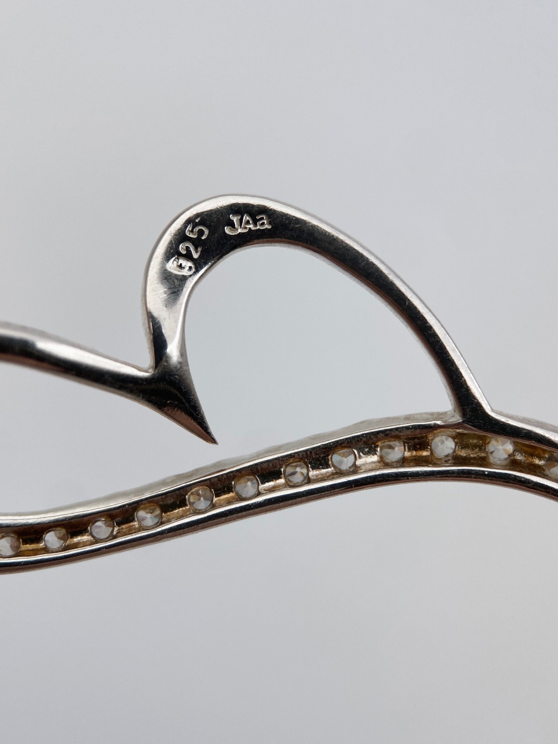 Danų gamybos sterlinginio sidabro pakabukas su cirkoniais, pažymėtas „925 S JAA“, apie 1990 m.