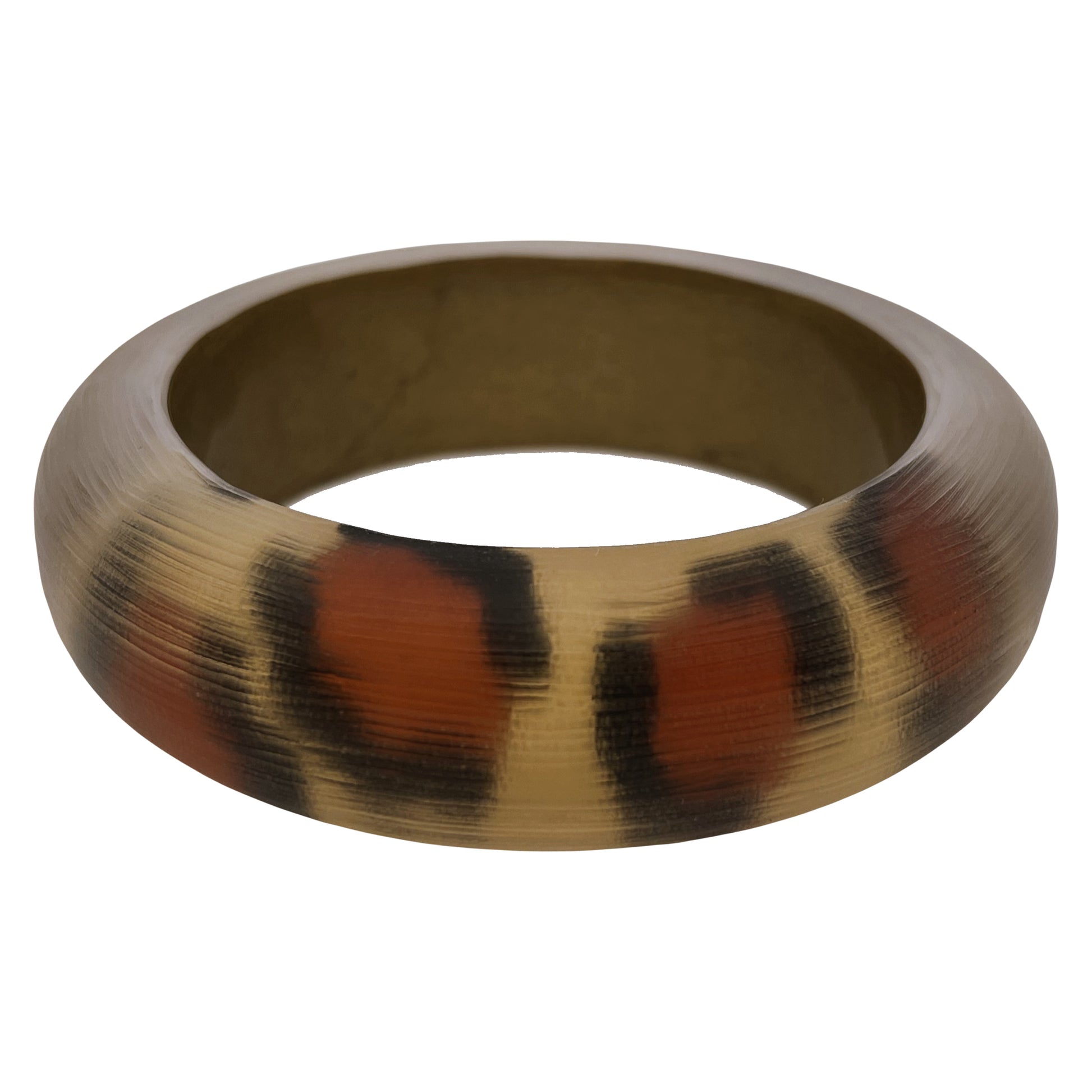 Tai vertinga rankų darbo apyrankė iš žymaus šiuolaikinio dizainerio Alexis Bittar kolekcijos. Ši apyrankė yra pagamintaiš rankomis raižyto lucito su leopardiniu raštu ir pusiau matinės tekstūros išoriniu sluoksniu. Leopardiniai raštai yra riboto leidimo modeliai ir yra labai paklausūs.