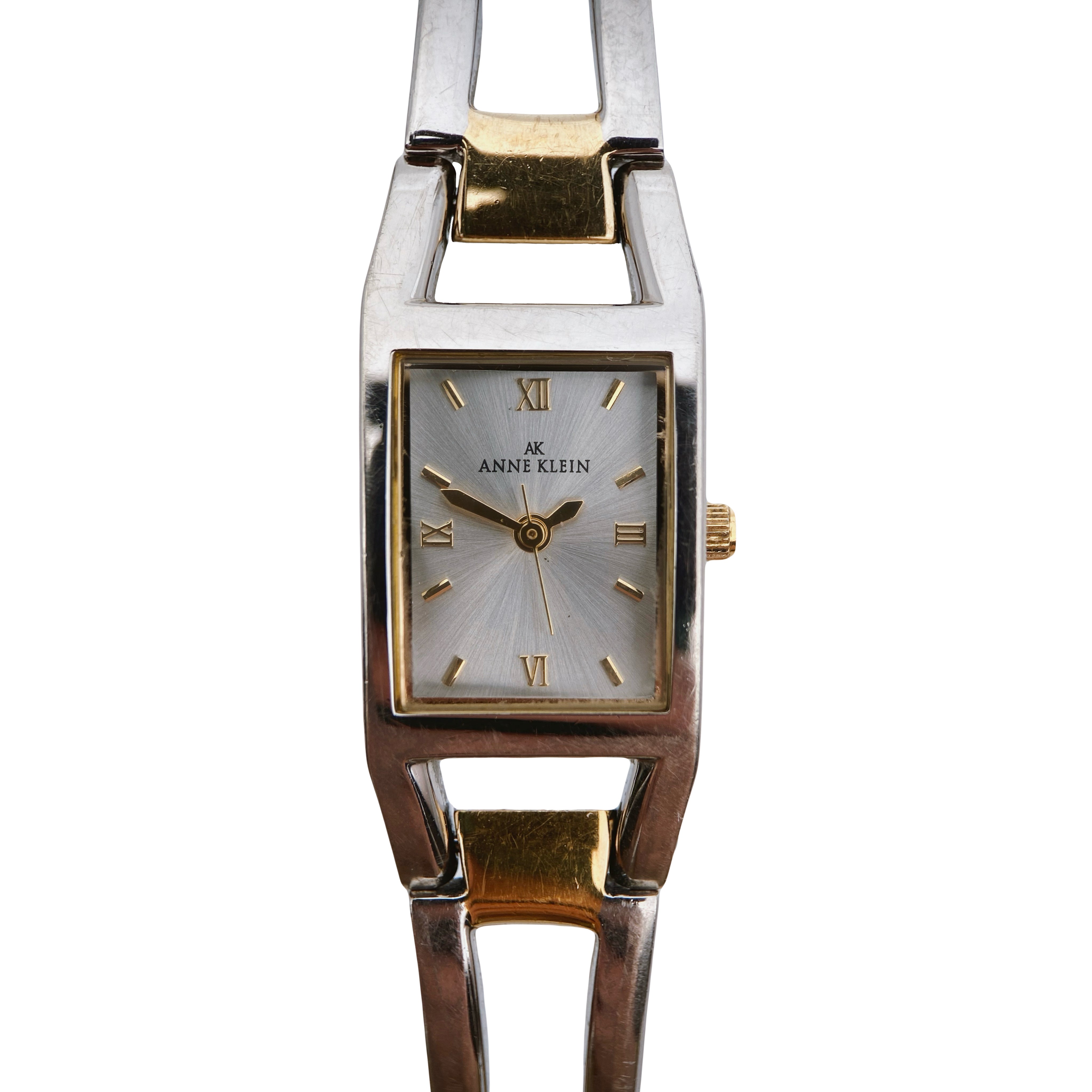 Anne Klein (AK) yra klasikinio, moteriško stiliaus kvarcinis laikrodis. Šio laikrodžio modelis – 107299 / 733H. Ciferblatas – stačiakampis, sidabrinio atspalvio su romėniškais skaitmenimis ir auksiniais žymekliais. Mechanizmas – kvarcinis, pagamintas Tailande („THAILAND MOVT“). Korpusas – metalinis su paauksuoto pagrindo rėmeliu (žymė „BASE METAL BEZEL“), nerūdijančio plieno nugarėlė. Apyrankė – sidabro ir aukso spalvų, su AK logotipu ant užsegimo.