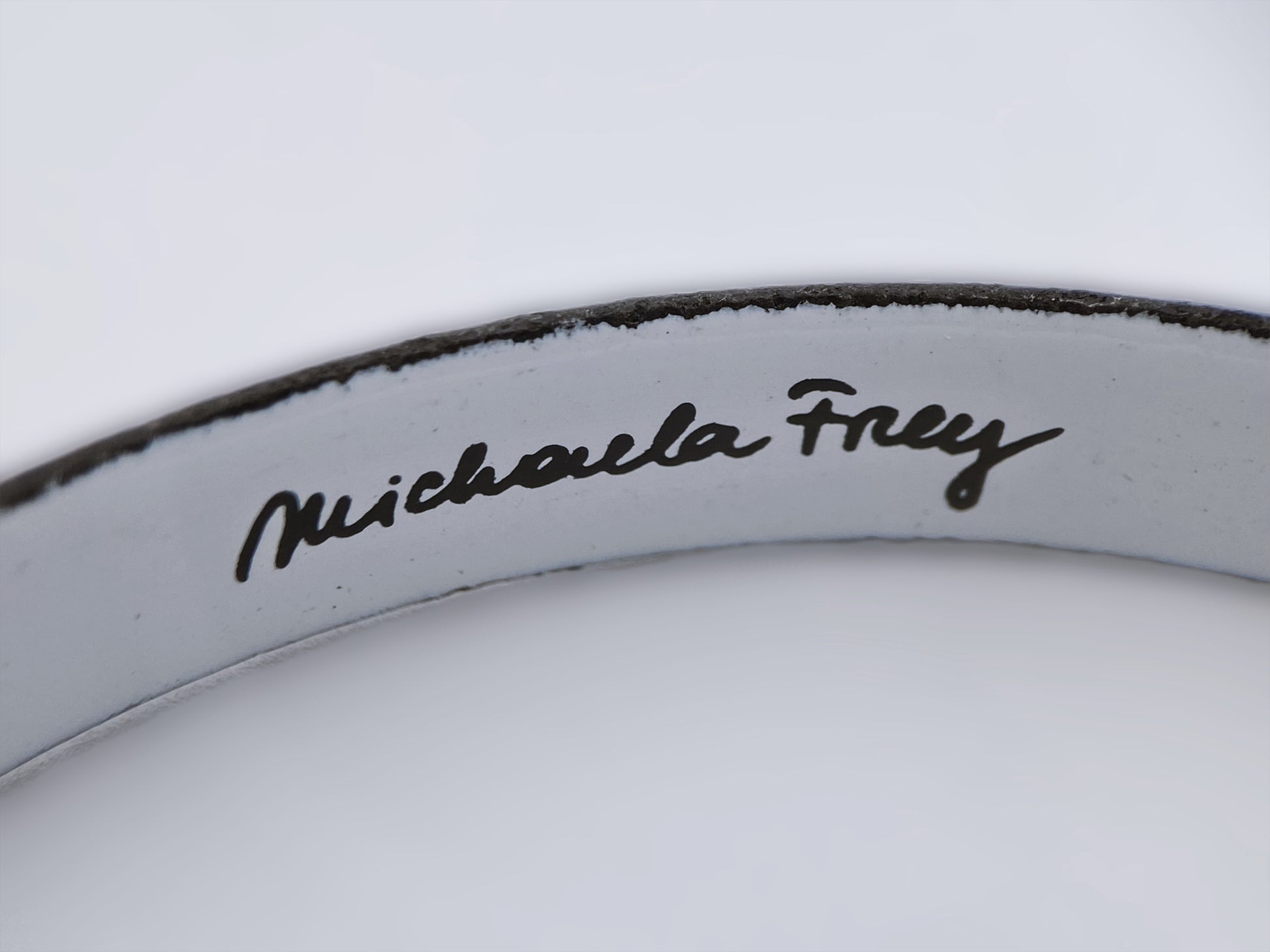 “Michaela Frey” bangle tipo apyrankė – tai labai gerai žinomas ir kolekcininkų vertinamas vokiškos / austrų kilmės emaliuotos bižuterijos gamintojas, šiandien labiau žinomas kaip “Frey Wille”. “Michaela Frey įkurta Vienoje (Austrija) 1951 metais. Specializavosi emaliuotuose papuošaluose, ypač rankų darbo “bangle” apyrankėse su meniškais, dažnai etniniais ar simbolistiniais motyvais. Po Michaela Frey mirties (1980 metais), įmonė tapo Frey Wille. Vidinė dalis pasirašyta Michaela Frey – tai rodo ankstyvą gamybos etapą.