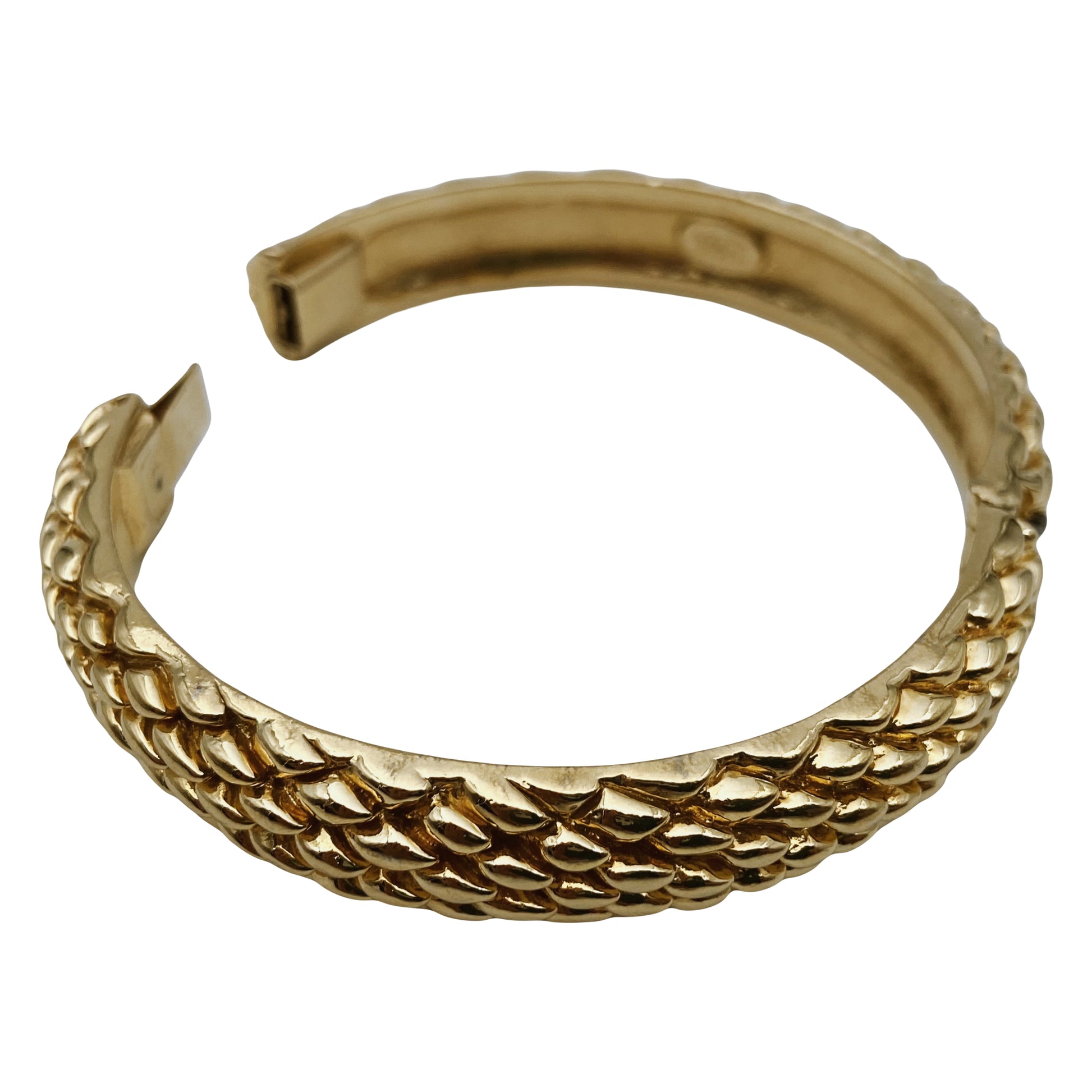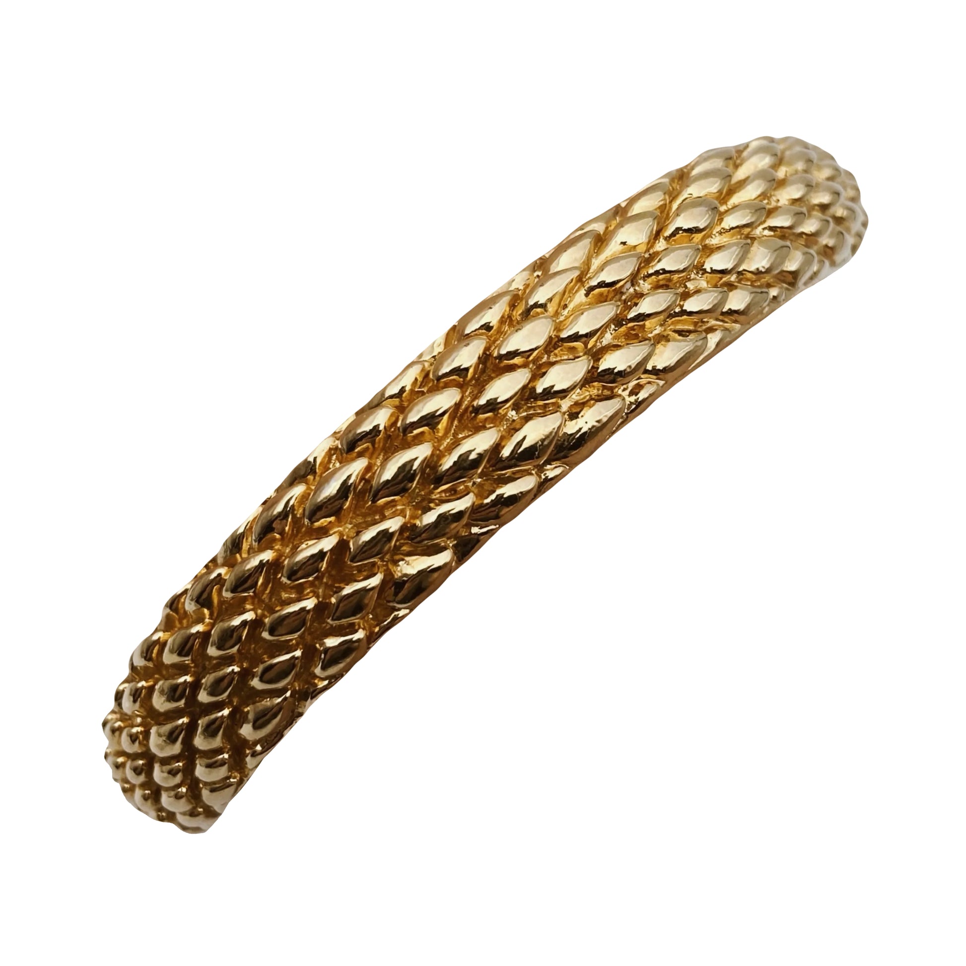 Ši apyrankė – tai originalus Joan Rivers dizaino papuošalas. Pažymėta „©Joan Rivers“, tai reiškia, kad tai autentiška bižuterija iš jos vardinės linijos. Tai standi, pusiau atvira apyrankė su tekstūriniu “fish scale” (žvynelių) reljefu.