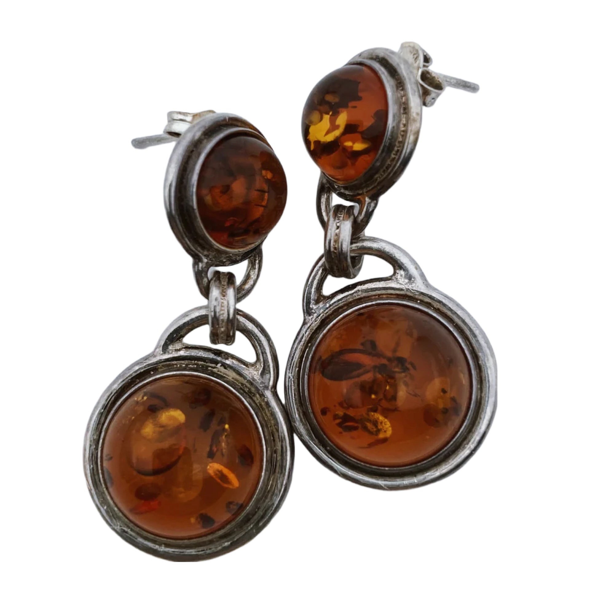 Sidabro ir gintaro auskarai
