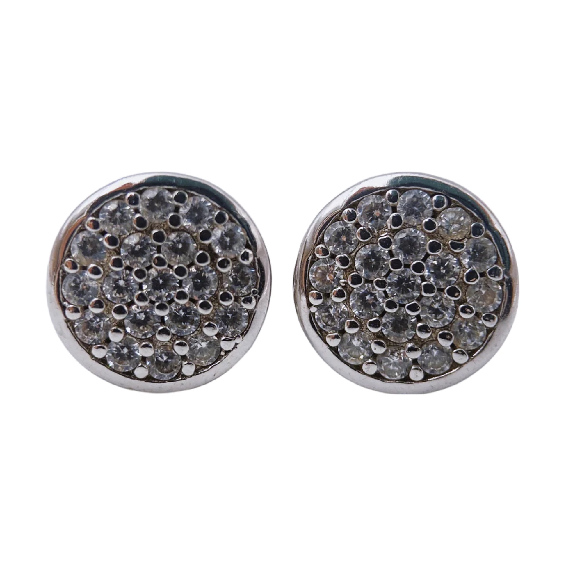 Sidabro auskarai, pažymėti „SU 925“ – tai reiškia, kad jie pagaminti iš tikro sterlingo sidabro (92,5 % sidabro), o „SU“ – tai JAV papuošalų gamintojo arba importuotojo žyma. Dažniausiai „SU“ siejama su Sunstone Imports ar Sunstone Inc. (JAV), kurie dažnai ženklindavo taip savo importuojamą arba vietoje pagamintą juvelyriką, ypač 1990–2010 m. laikotarpiu. Auskarų paviršiuje įstatyti maži skaidrūs akmenys, beveik neabejotinai kubiniai cirkoniai (CZ) – tai labai dažnas derinys su sidabru, imituojantis deimantų inkrustaciją („pavé“ stilius).