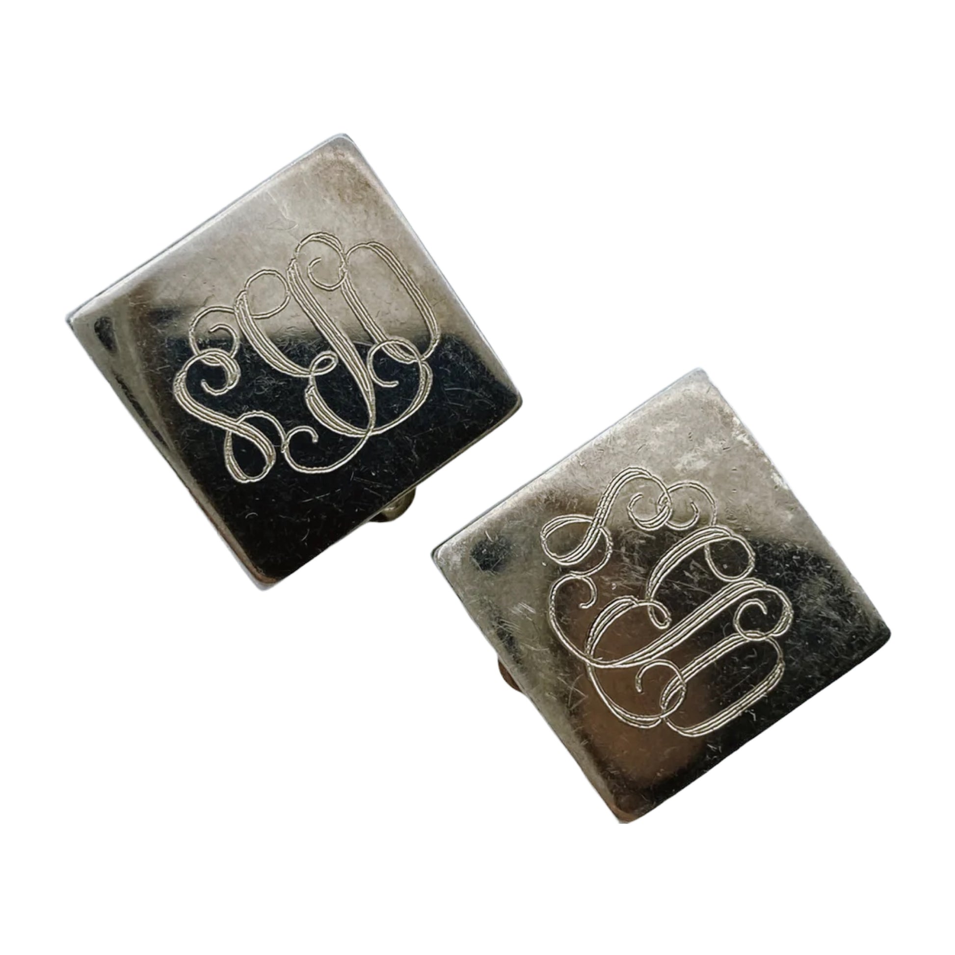Tai Meksikoje pagaminti 925 prabos sidabro klipsai. Klasikinio kvadratinio dizaino, puošti graviruota monograma.