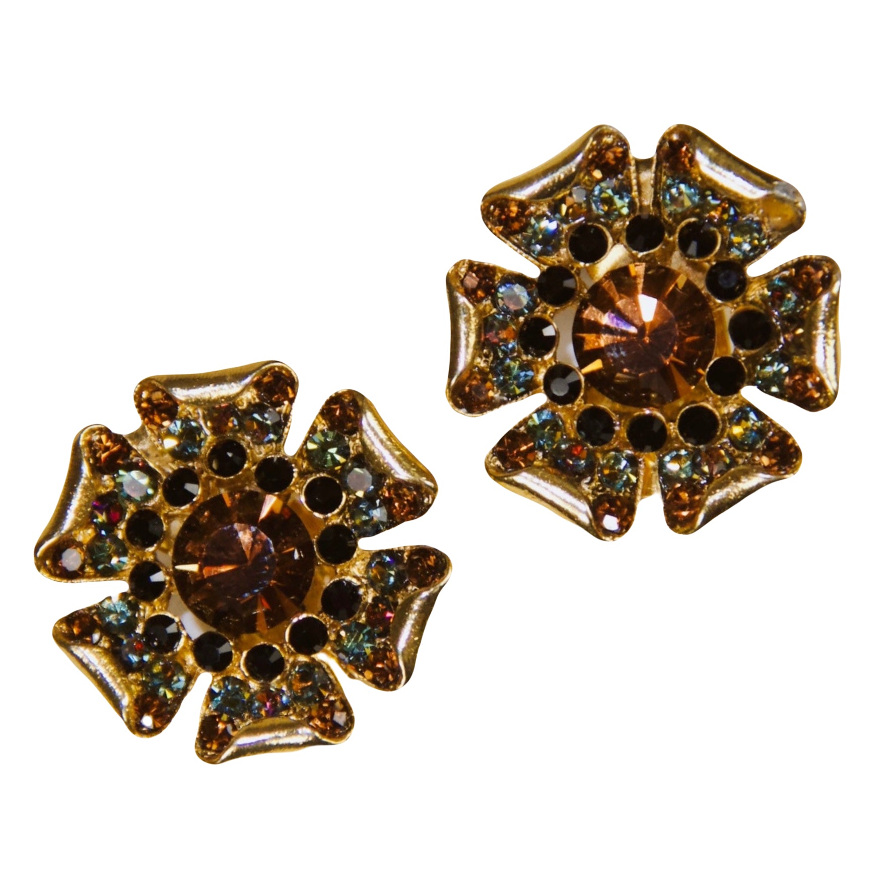 Sudėtis: paauksuotas metalas, kristalai Būklė: labai gera Išmatavimai: 2 x 2 cm Spalva: aukso, ruda Žymėjimas: “Barrera” Šalis: JAV Laikotarpis: XX a. pab.