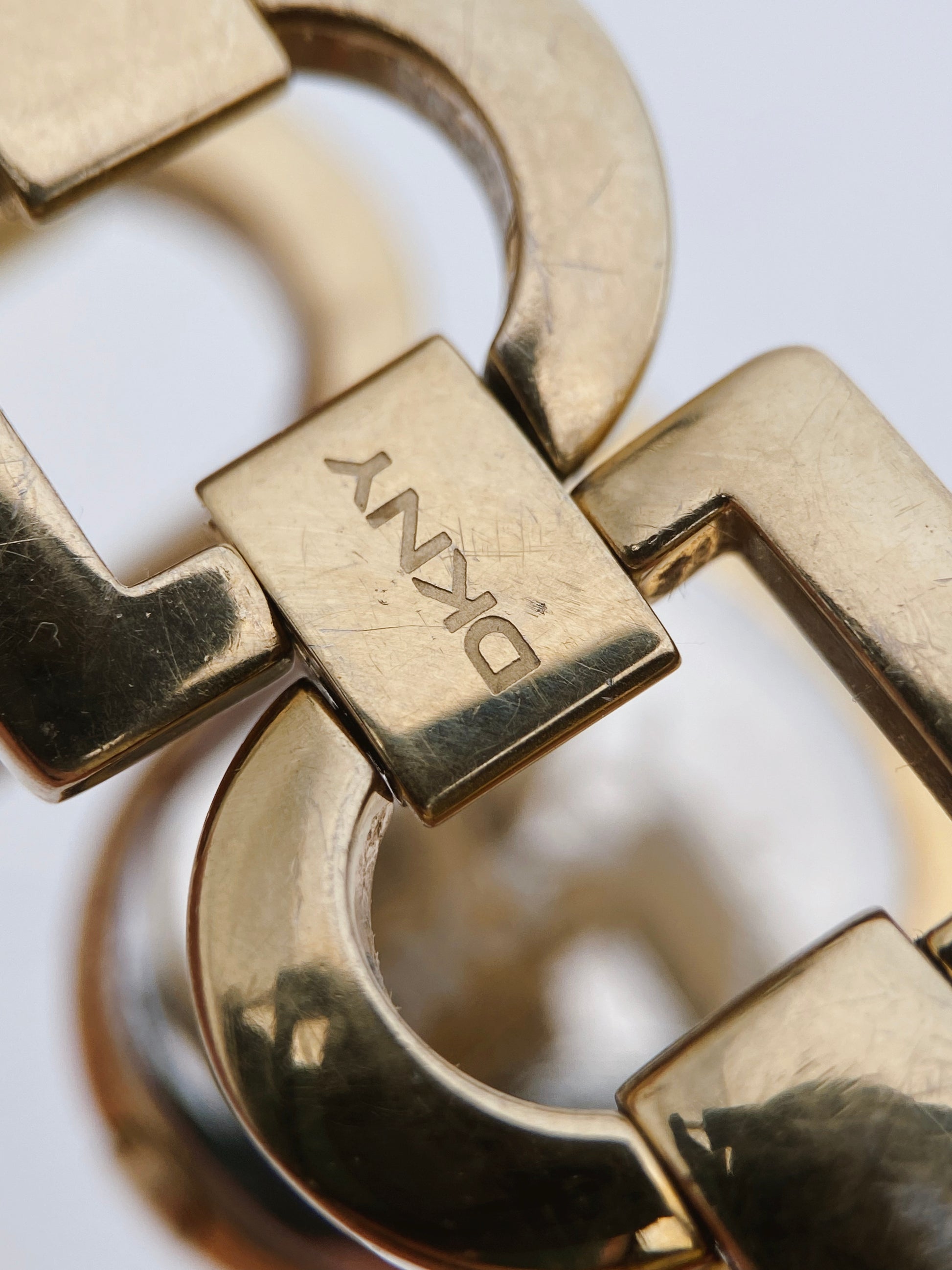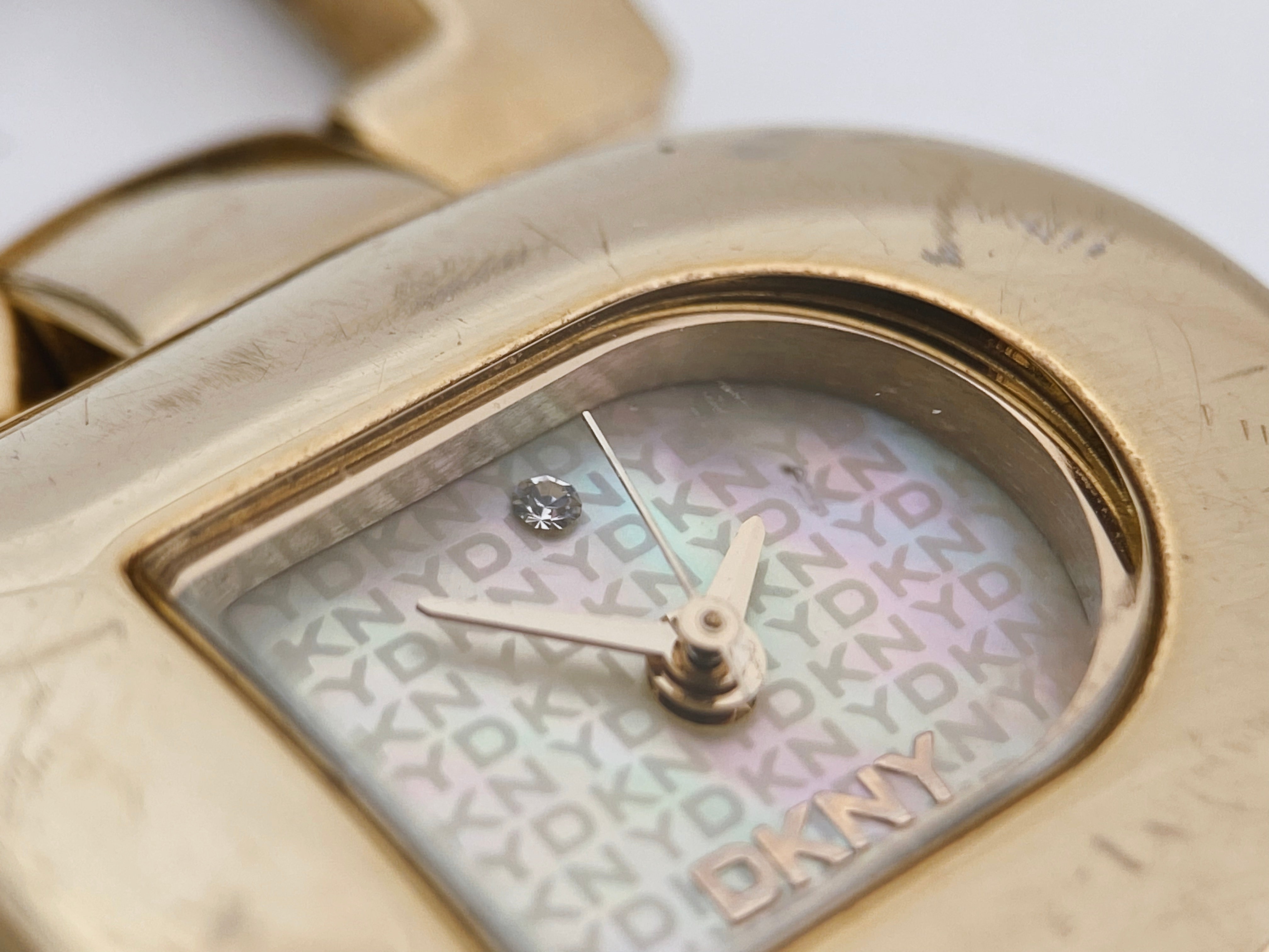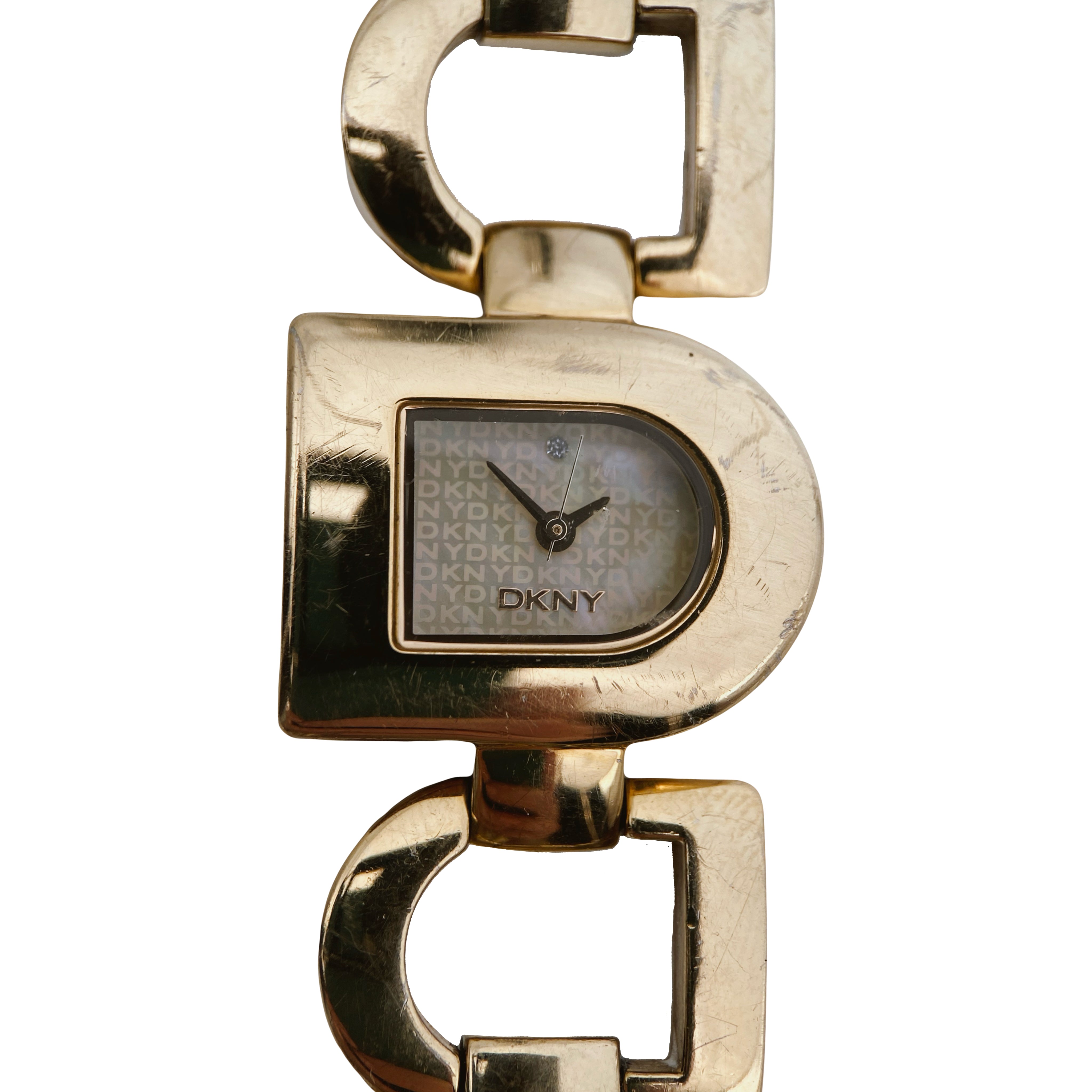 “DKNY” laikrodis yra autentiškas dizainerio laikrodis iš Donna Karan New York (DKNY) prekės ženklo. Tai madingas, išskirtinio dizaino moteriškas laikrodis, kuriame dominuoja stilizuotos jungtys ir paauksuotas paviršius. Ciferblatas su “DKNY” logotipu ir minimalistiniu dizainu atitinka prekinio ženklo estetiką. Kvarcinis mechanizmas, paauksuotas metalas, masyvus grandinės dizainas, stilizuotos D formos jungtys. 2000-2010 m. laikotarpiu "DKNY” kūrė laikrodžius su futuristiniu ir geometriniu dizainu, kurie buvo populiarūs kaip stiliaus akcentai. Šio laikrodžio modelis NY-4250, vandens atsparumas: 3 ATM / 30 metrų. Ciferblatas papuoštas DKNY raštu ir kristalu.