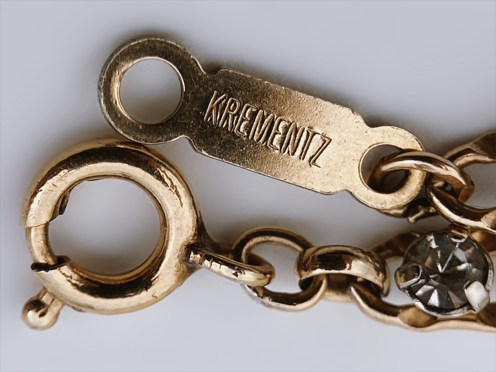 “Krementz” – tai vienas žinomiausių JAV vintažinės bižuterijos gamintojų, žinomas dėl aukštos kokybės auksu dengtos papuošalų ir elegantiško dizaino. “Krementz” įmonė įkurta 1866 m., aktyvi iki 1997 m. Greičiausiai tai auksu dengta žalvarinė grandinėlė su stiklo kristalais. Klasikinė „teniso stiliaus“ apyrankė, būdinga 1950–1970 m. madai. Senoviškas „spring ring“ tipo užsegimas – dažnas jų ankstyvosios produkcijos bruožas. “Krementz” bižuterija turi vertę tarp kolekcininkų dėl kokybės, žymaus vardo ir ilgaamžiškumo (auksavimas išsilaiko dešimtmečius).