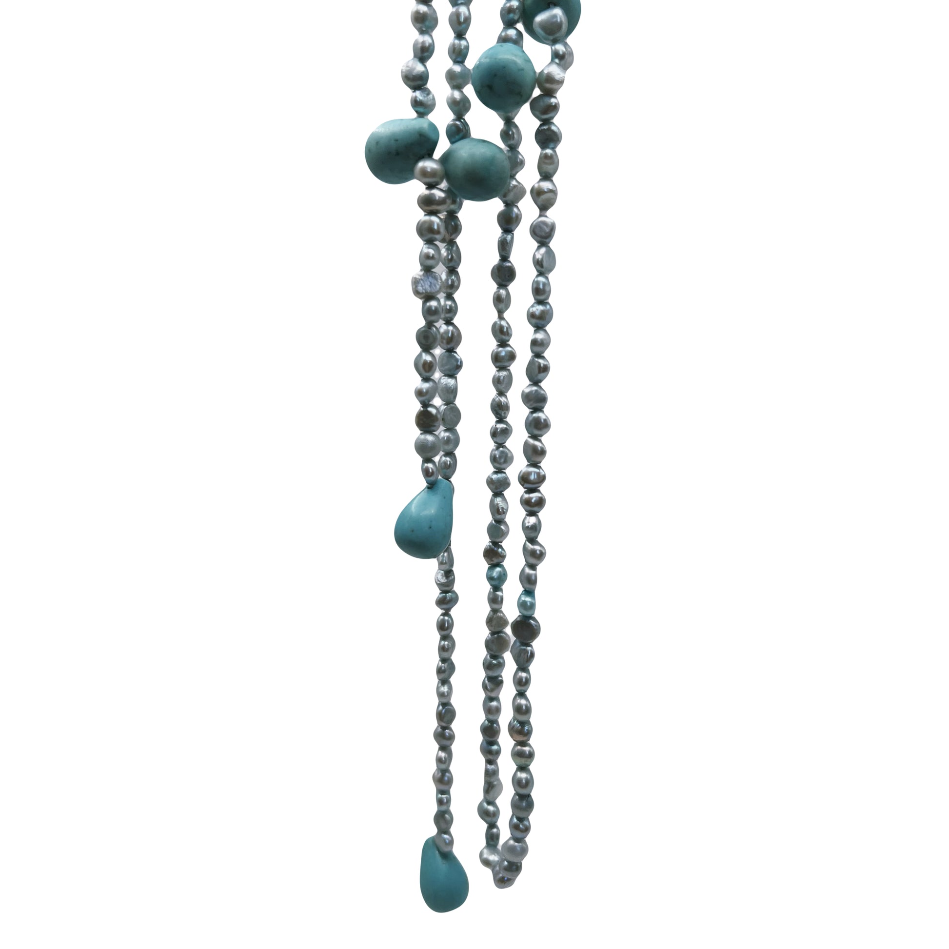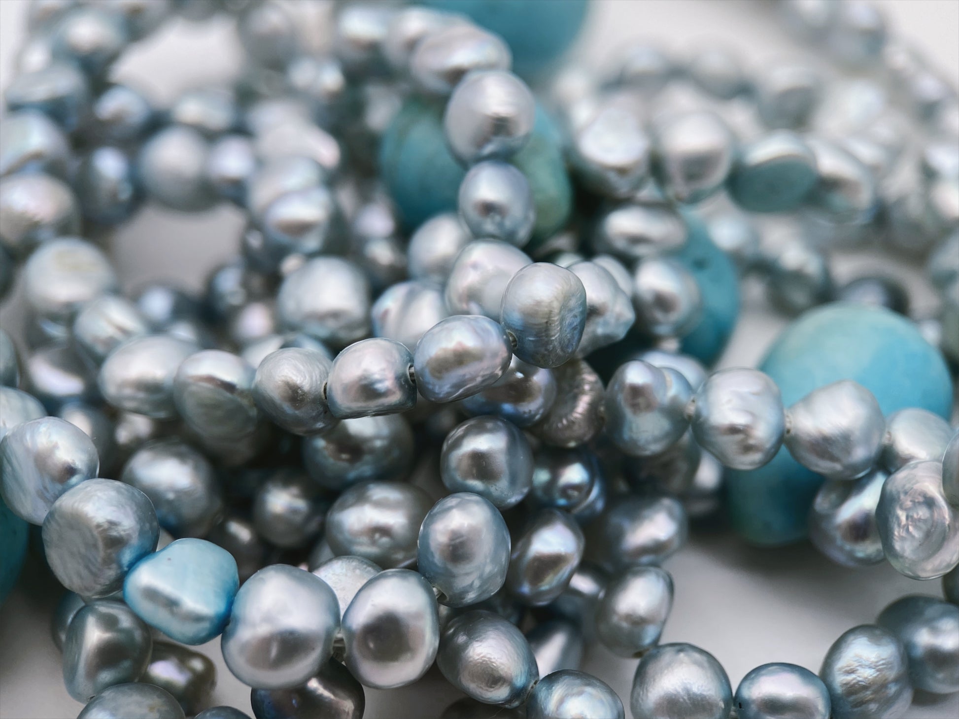 Šis papuošalas – tai ilgas vėrinys iš barokinės formos gėlavandenių perlų su mėlynai žalsvais akmenimis, kurie, tikėtina, yra magnezitas (dažnai dažomas, kad imituotų turkį). Vėrinys ilgas, gali būti nešiojamas viengubu ar dvigubu sluoksniu. Nėra aiškaus užsegimo, gali būti rišamas ar dėvimas laisvai. Gamybos stilius ir medžiagos būdingos rankų darbo ar boutique papuošalams, dažnai surenkami Azijoje arba smulkiuose Europos dizainerių dirbtuvėse.