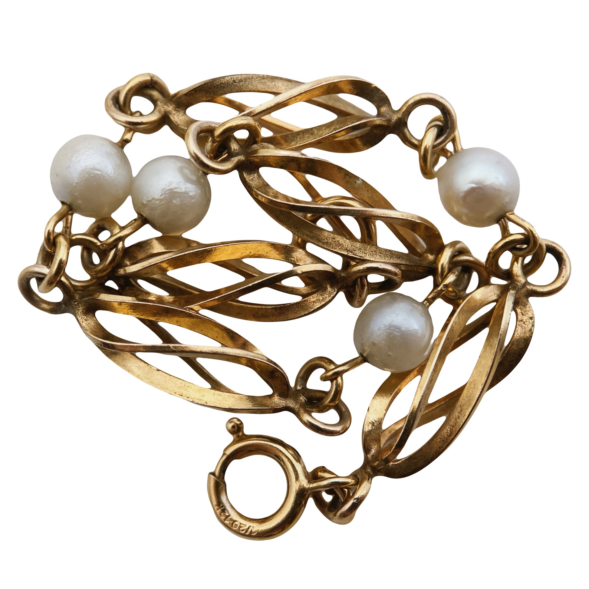 Ši apyrankė dekoruota ažūrinėmis spiralėmis, kurios būdingos 1950–1960 m. stiliui. Užsegimas: klasikinis spring ring, plačiai naudotas XX a. viduryje.