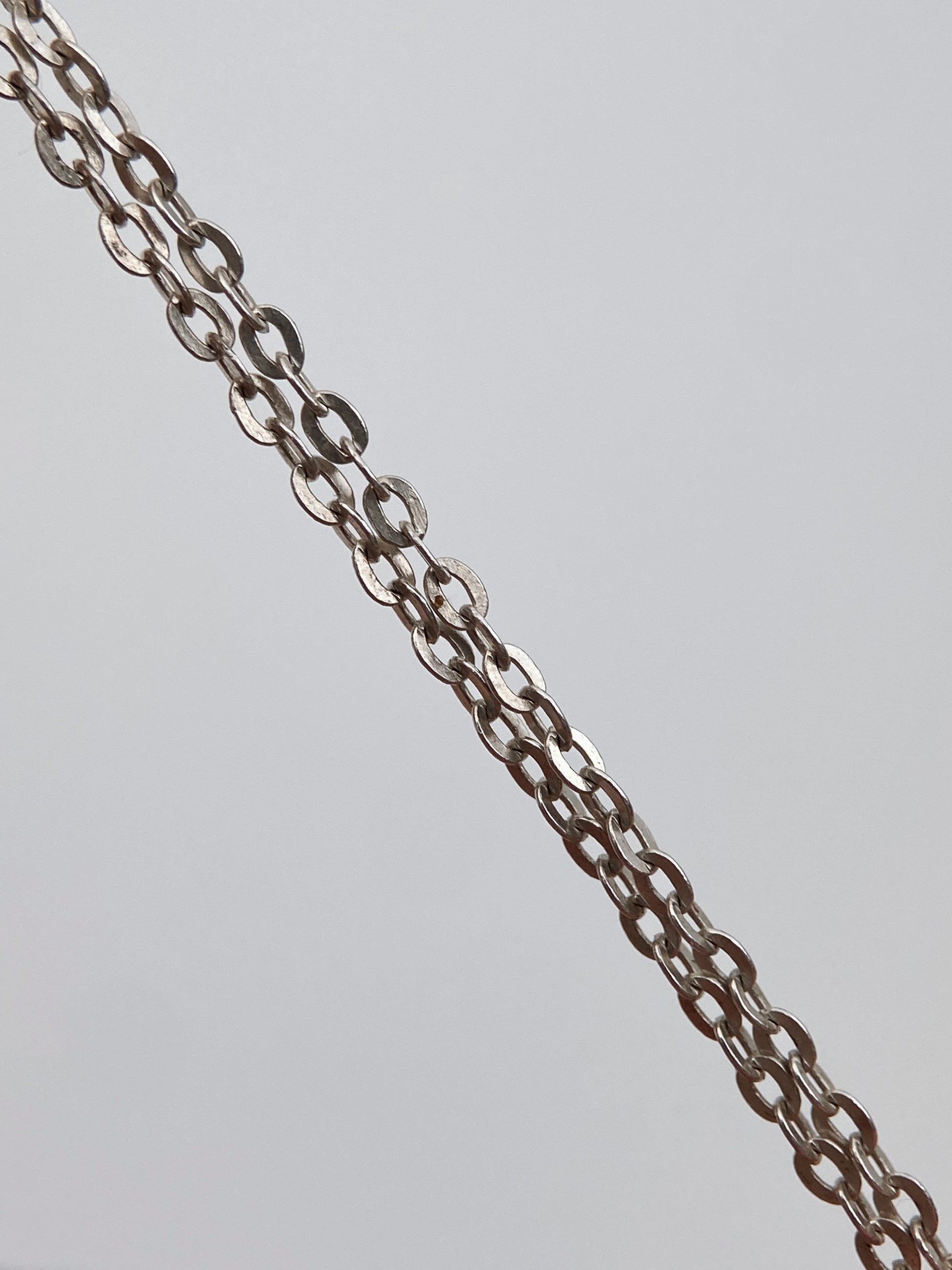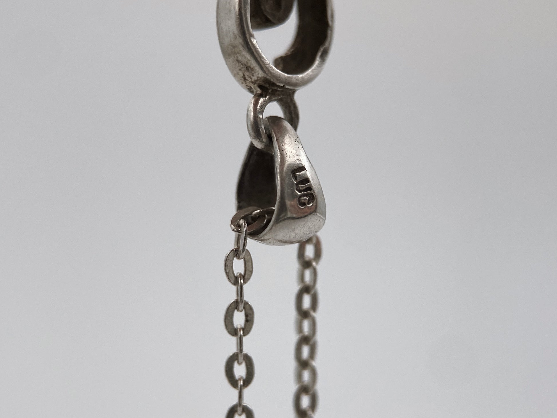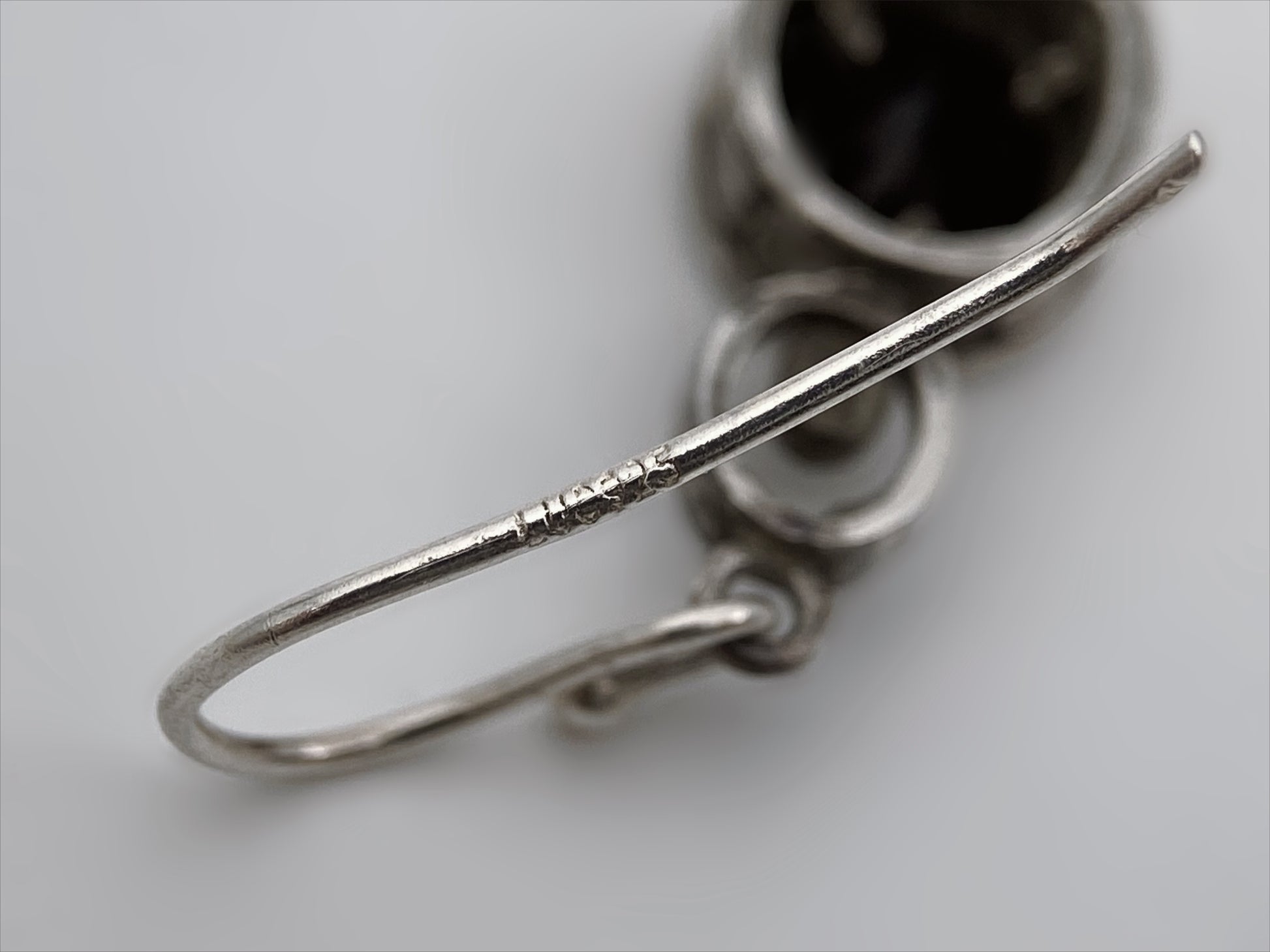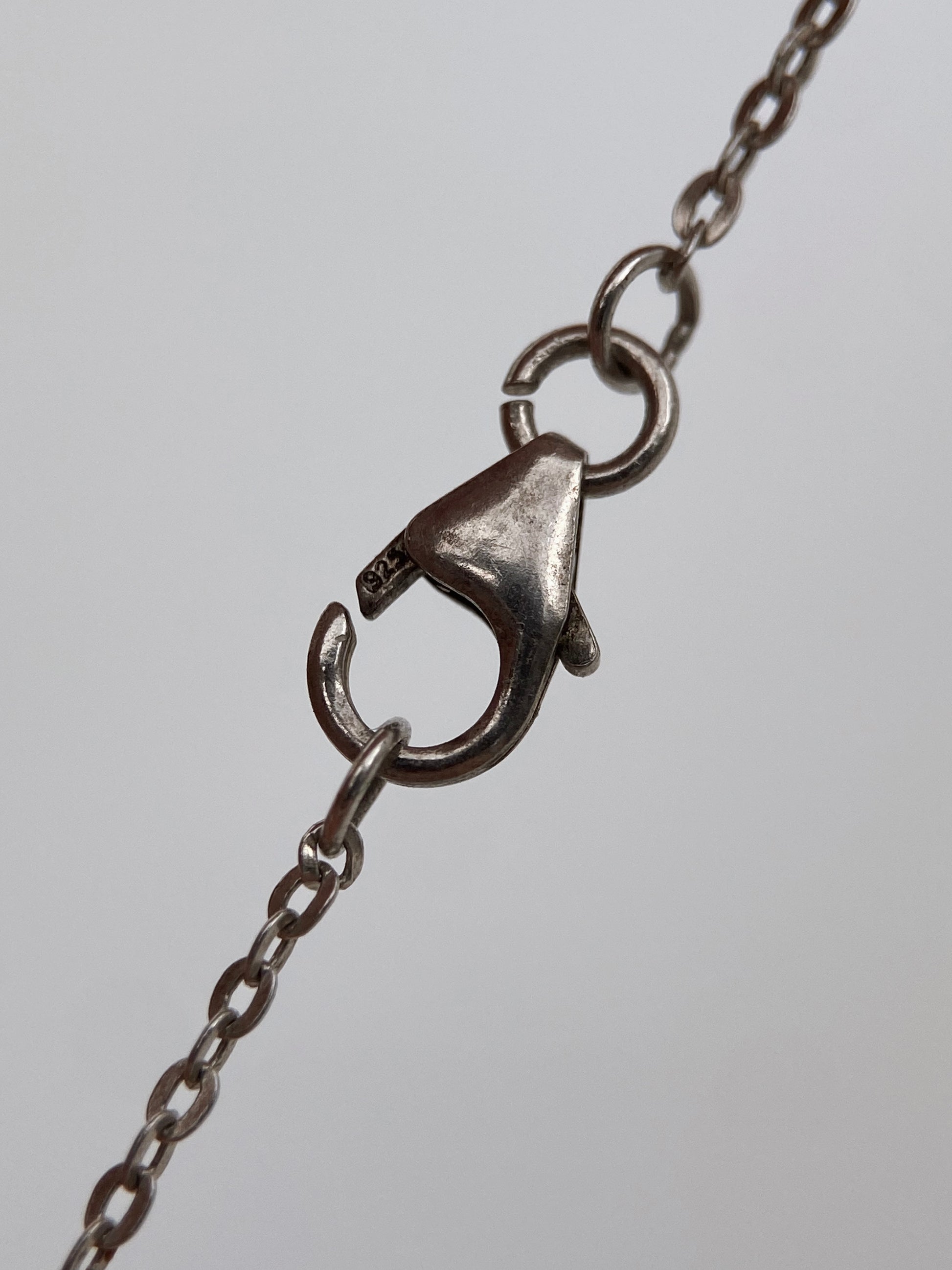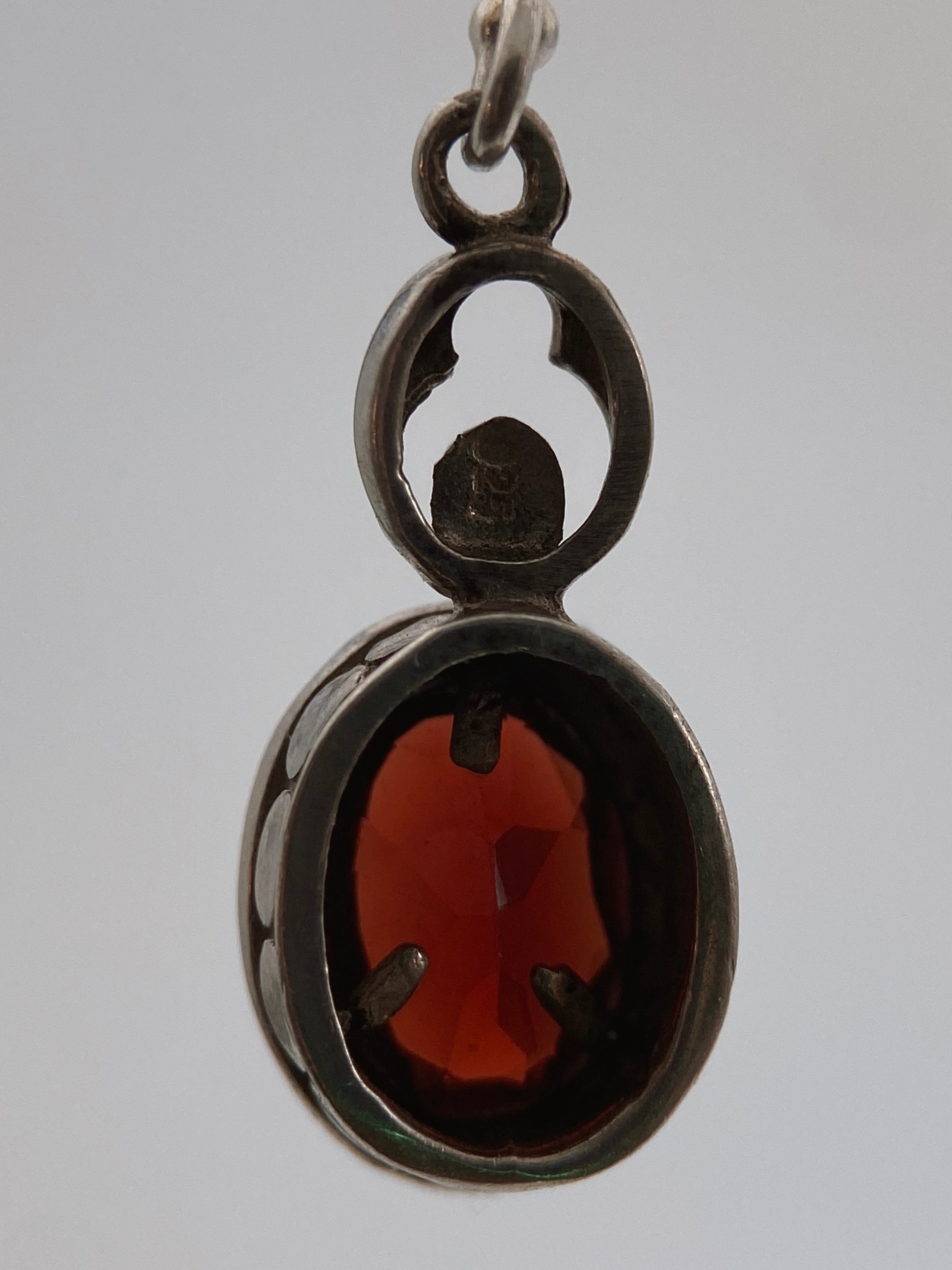 Sudėtis: sidabras, granatas Gamybos būdas: rankų darbas Būklė: labai gera Išmatavimai (grandinėlė): 44 cm Išmatavimai (auskarai): 2,5 x 0,8 cm Spalva: sidabro, bordo Žymėjimas: “LUC 925” Šalis: JAV Laikotarpis: 1985-1995 metai Rinkos vertė: 60-70 EUR