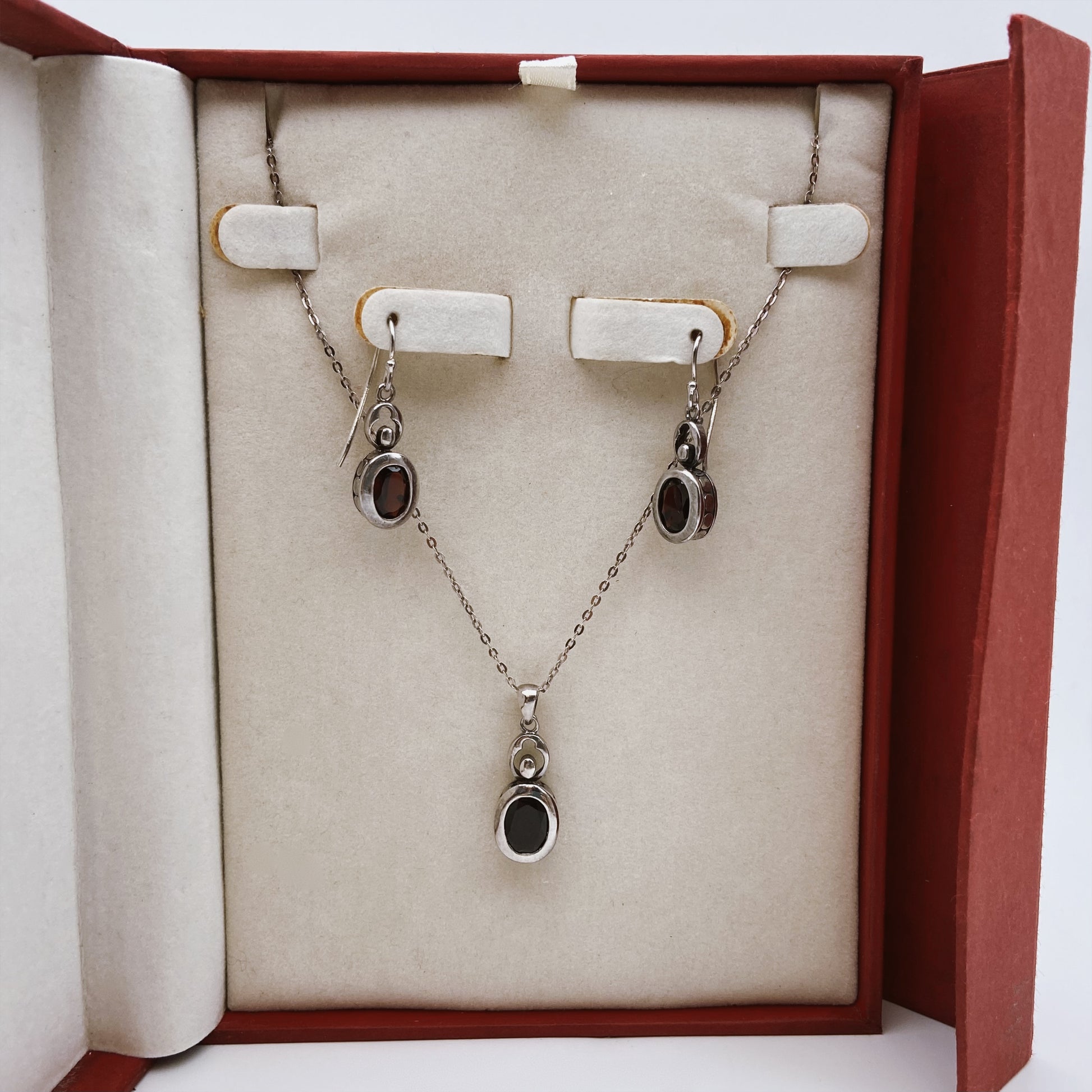 “Coldwater Creek” – JAV drabužių ir aksesuarų prekės ženklas, kuris 2000–2015 m. siūlė ir sidabruotus / sterlingo sidabro papuošalus. Sterlingo sidabras (925), poliruotas, akmenys – granatai. Minimalistinis ir organinių linijų dizainas.