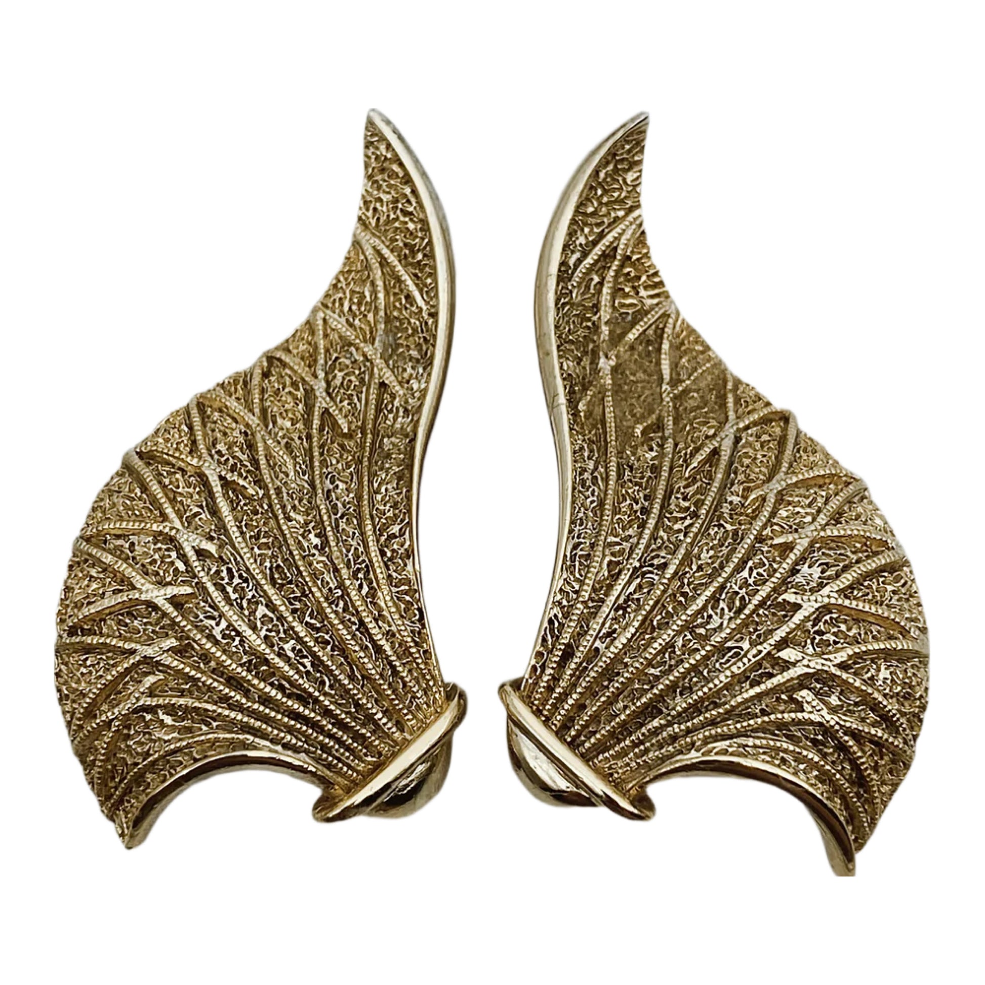 Žyma: „BB PARIS ©” - tai Balenciaga Paris logotipas, naudotas bižuterijoje XX a. 8–9 dešimtmetyje. „BB“ – monograma, būdinga to laikmečio mados namų ženklinimui. Patentinis numeris: „PAT. 2733491“ - tai JAV patentas, skirtas specifiniam klipsų mechanizmui. Naudotas aukštos kokybės papuošaluose, įskaitant Dior, Givenchy, Balenciaga, Schiaparelli. Dizainas: auksaspalvis metalas, labai detaliai išgraviruotas, primenantis sparno arba vėduoklės motyvą. Simetriškas, drąsus siluetas būdingas 1980-ųjų haute couture bižuterijai.
