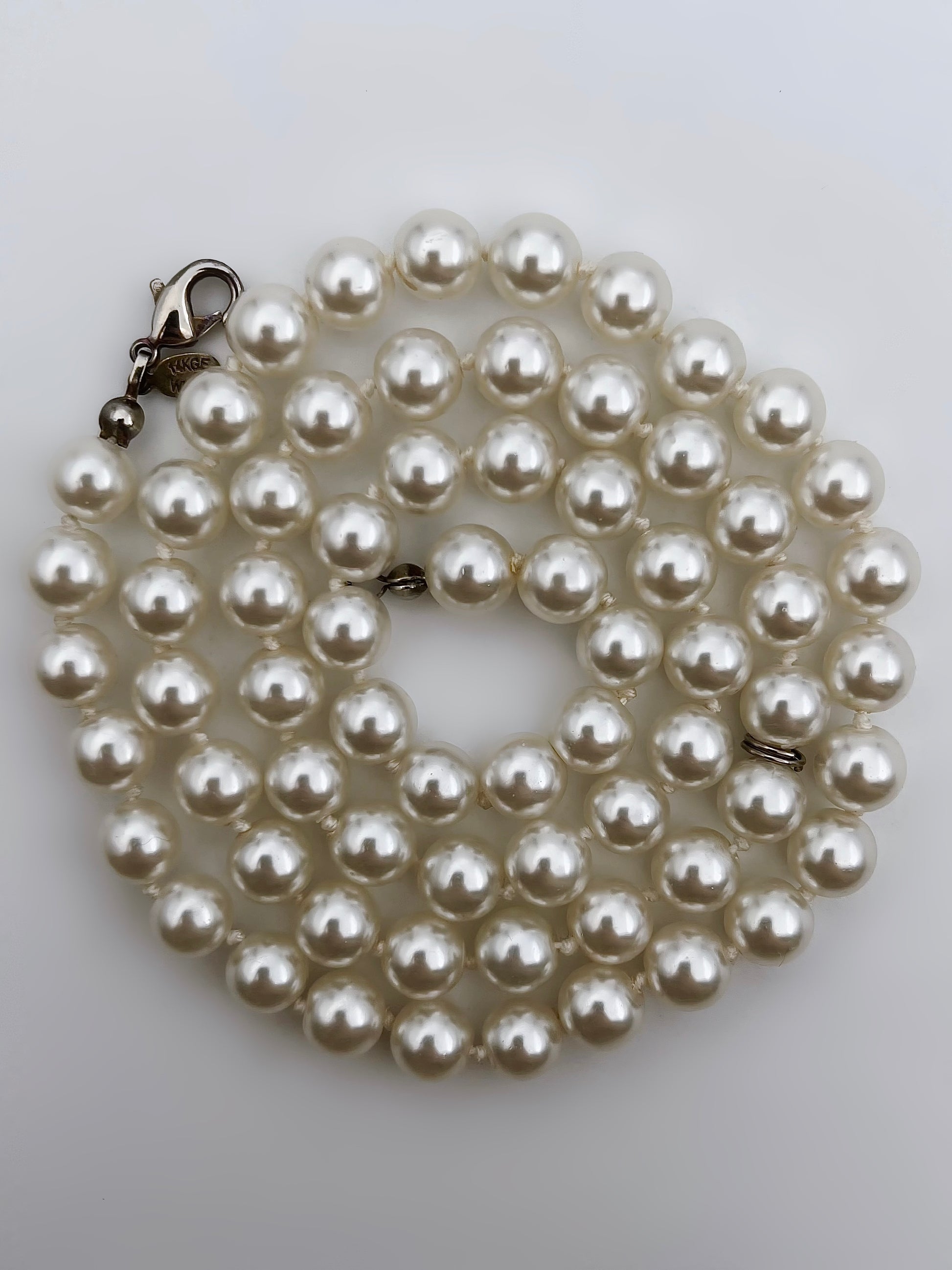 Sudėtis: perlų imitacijos, paauksuotas metalas Būklė: labai gera Išmatavimai: 60 cm Spalva: perlų, aukso Žymėjimas: „14KGE WLIND“ Šalis: JAV Laikotarpis: 1970-1990 metai Rinkos vertė: 40-60 EUR