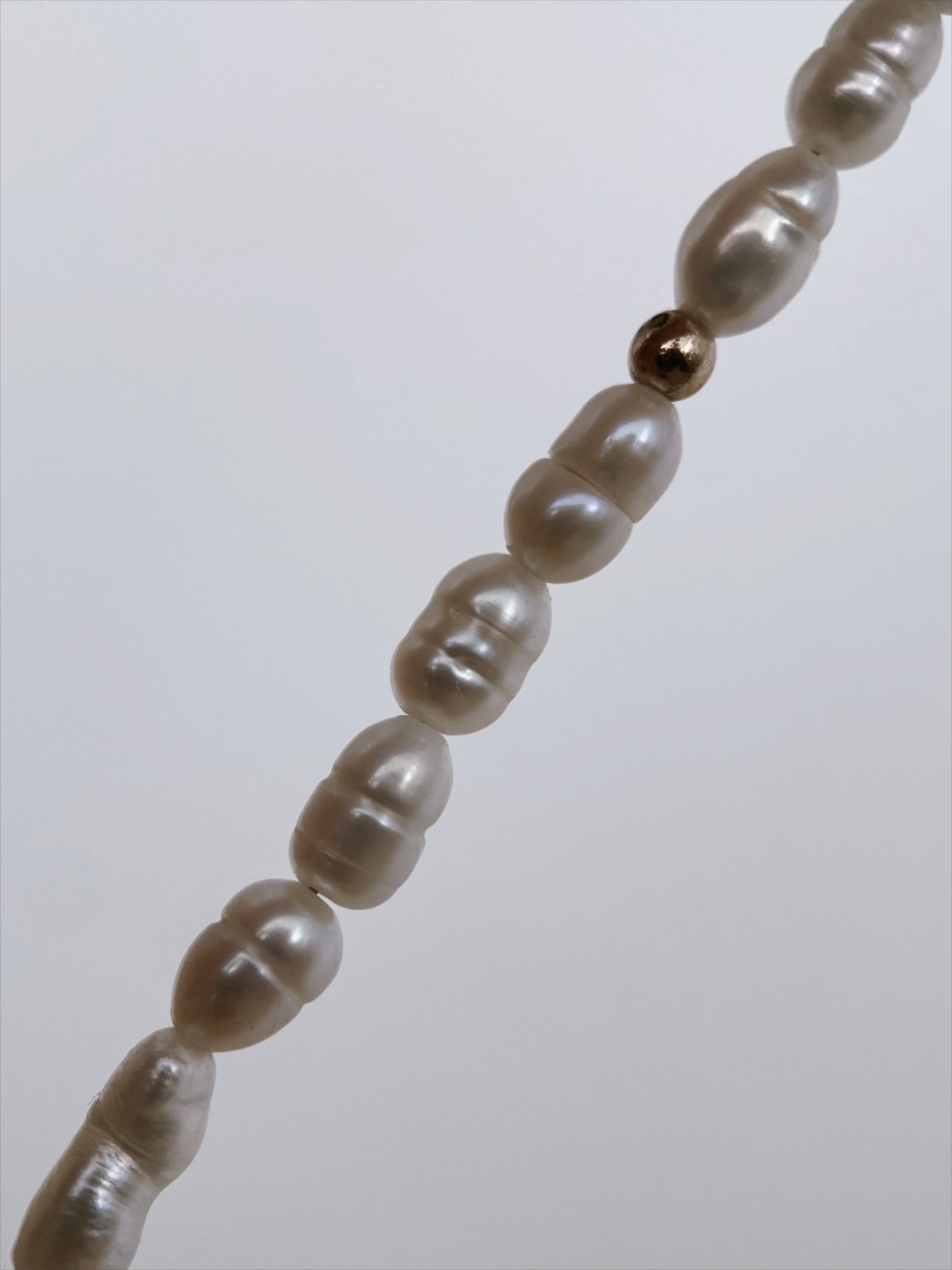Sudėtis: gėlavandeniai perlai, kristalai, metalas Būklė: labai gera Išmatavimai: 38 cm Spalva: balta, aukso Žymėjimas: nėra Šalis: Prancūzija Laikotarpis: 2000-2010 metai Rinkos vertė: 50-70 EUR