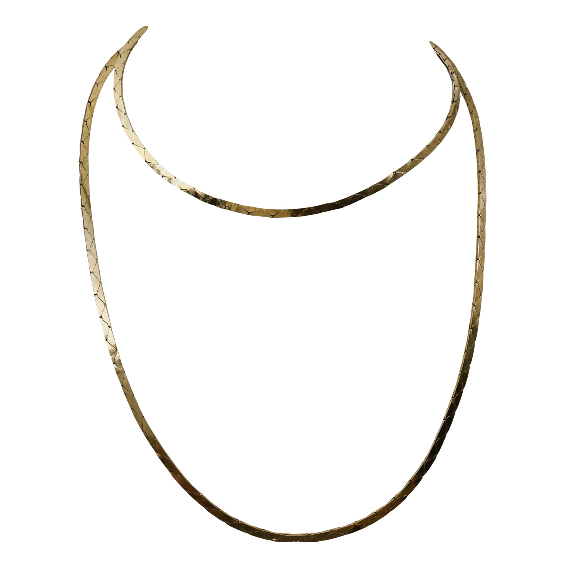 Tai “snake“ (gyvatėlės) tipo pinta ir plokščia paauksuota grandinėlė.