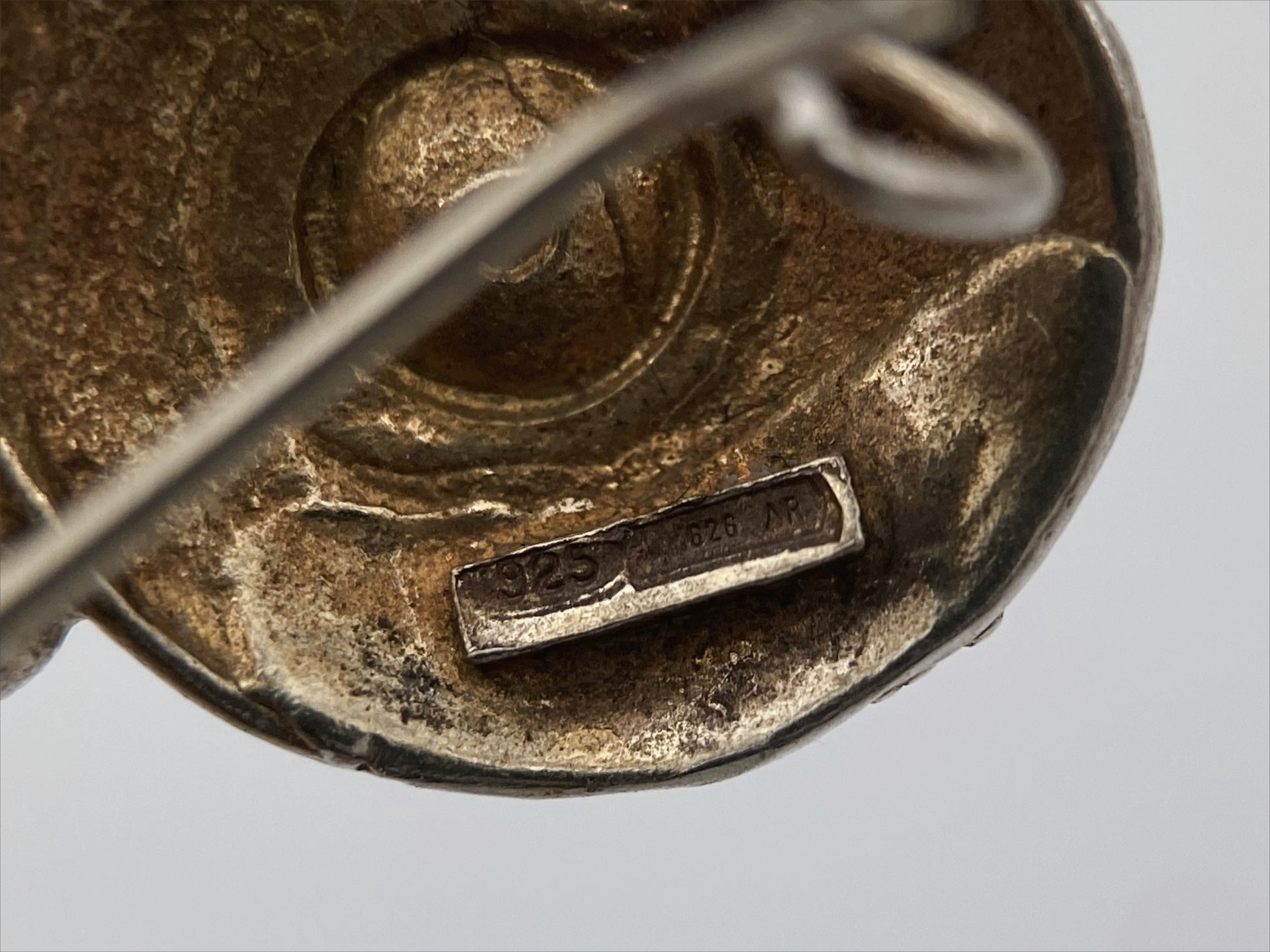Sudėtis: sidabras Gamybos būdas: rankų darbas Būklė: labai gera Išmatavimai: 2,6 x 1,6 cm Svoris: 5,1 g Spalva: sidabro Šalis: Vokietija Žymėjimas: “925, 626 AR” Laikotarpis: 1980-1990 metai Rinkos vertė: 60-80 EUR