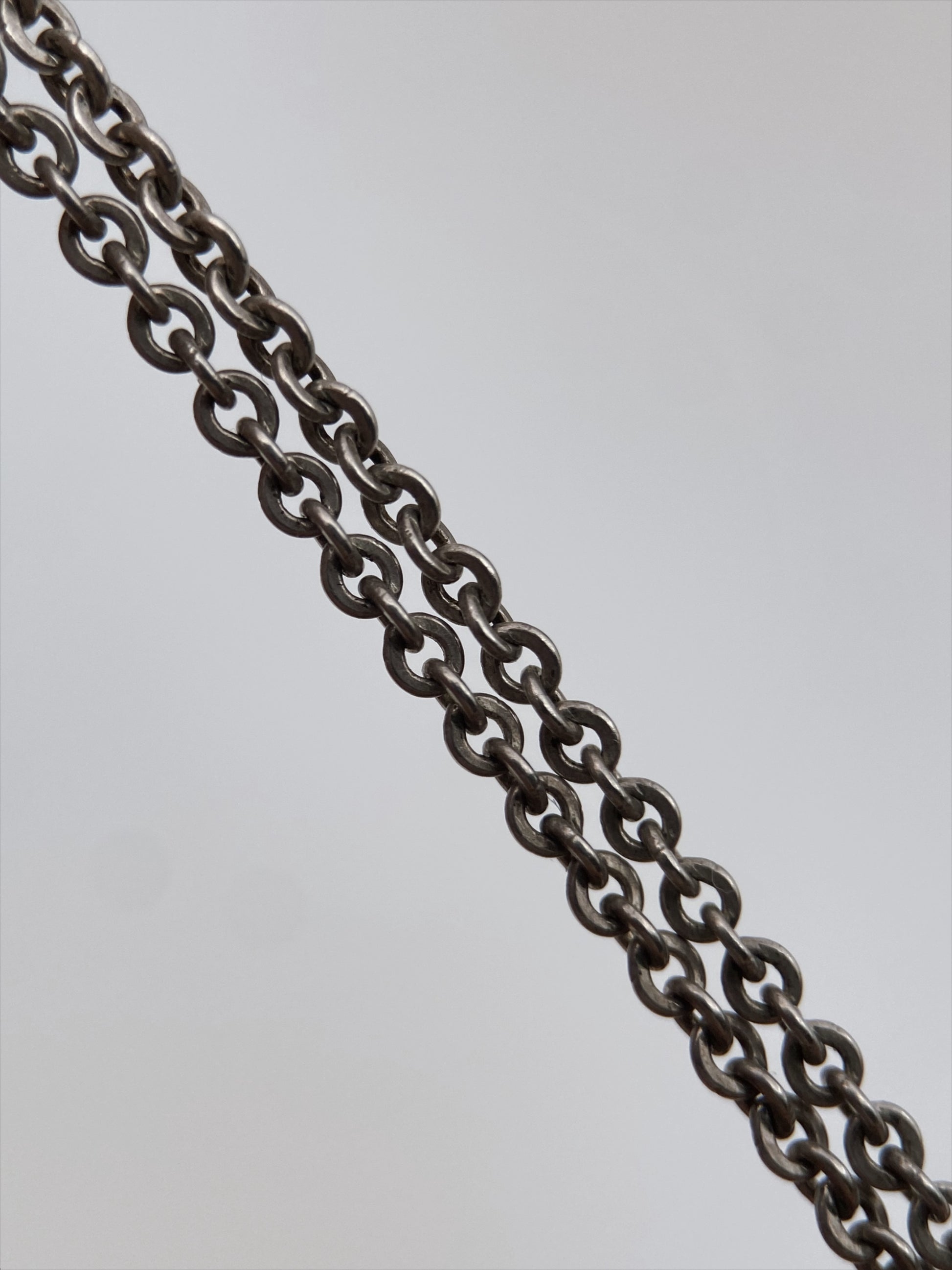 Sudėtis: sidabras, rožinis kvarcas Būklė: labai gera Išmatavimai: 82 cm (ilgis) Spalva: sidabro, rožinė Šalis: Italija Žymėjimas: Medelis | 8 | 3H | A | G7 | Laikotarpis: 1977 metai Rinkos vertė: 90-120 EUR
