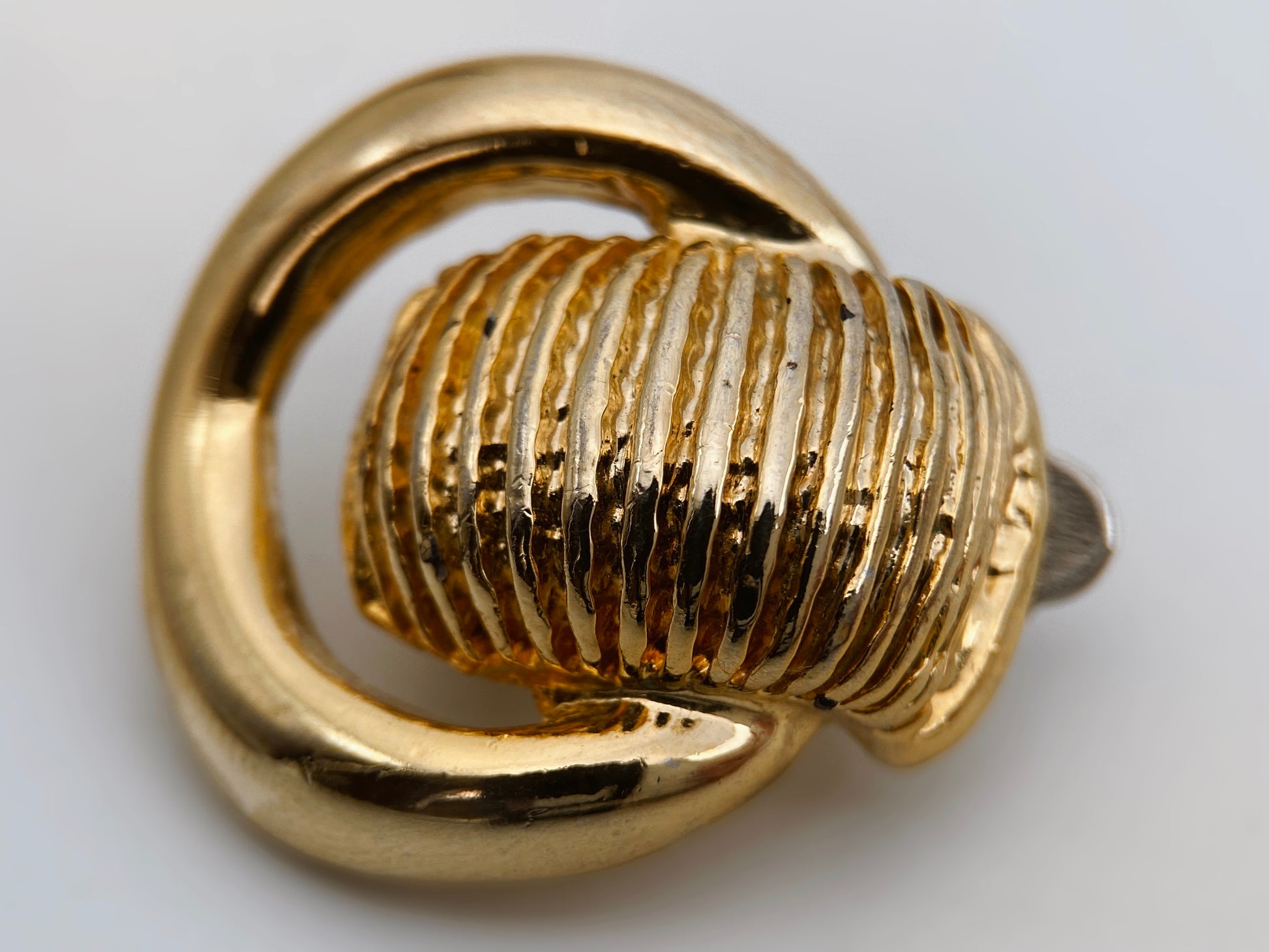 Sudėtis: paauksuotas metalas Būklė: labai gera Išmatavimai: 2,8 x 2,5 cm Spalva: aukso Šalis: Belgija Žymėjimas: nėra Laikotarpis: 1980-1990 metai Rinkos vertė: 50-70 €