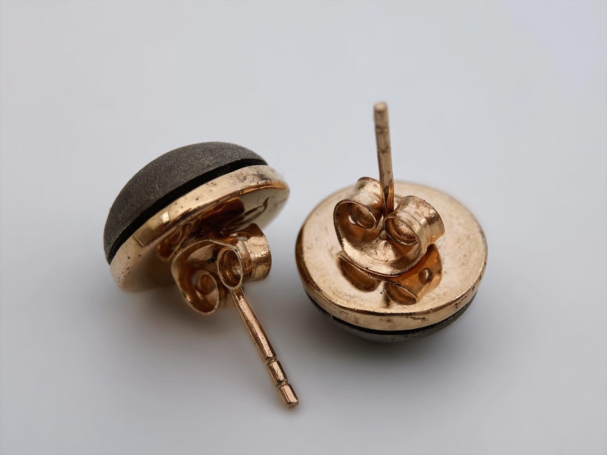 Minimalistiniai, subtilūs ir lengvai derinami – šie vintažiniai auskarai išsiskiria natūralios medienos kupolo paviršiumi ir šiltu aukso spalvos metalu. Organinė tekstūra suteikia jiems jaukumo ir išskirtinumo