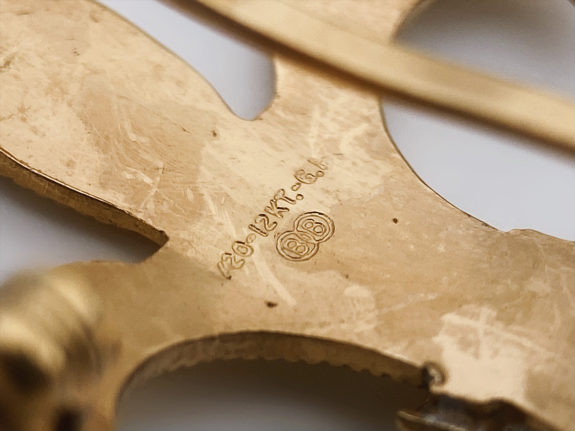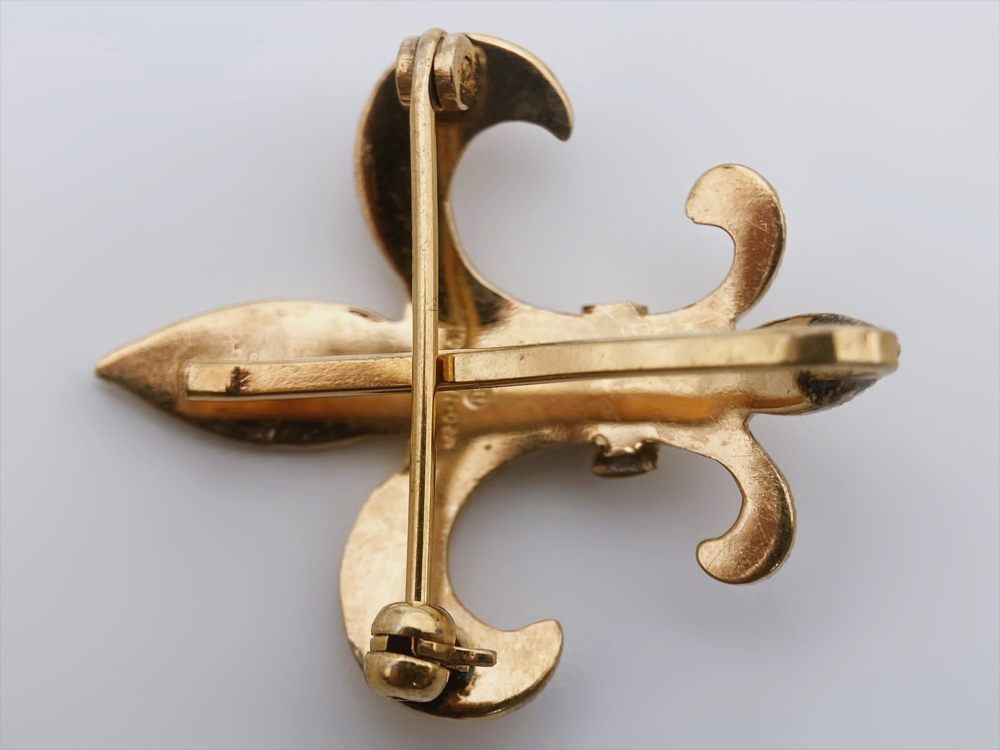 Elegantiška ir prasminga vintažo segė, vaizduojanti heraldinę „fleur-de-lis“ (lelijos) formą – istorinį karališkosios galios ir tyrumo simbolį. Pagaminta iš aukštos kokybės metalo, padengta 12 karatų auksu (1/20 12KT G.F.), su gamintojo žymėjimu – BB logotipu (Binder Brothers Inc.). Reljefiniai kraštai ir švelniai išgaubti paviršiai suteikia segės formai elegancijos bei laikui nepavaldžios estetikos. Binder Brothers Inc. – įkurta JAV XX a. pradžioje, žinoma dėl kokybiškos bižuterijos ir papuošalų su “Gold Filled” padengimu. Jų kūriniai dažnai ženklinami BB logotipu ir yra vertinami tarp kolekcininkų dėl ilgaamžiškumo ir išliekamosios vertės.