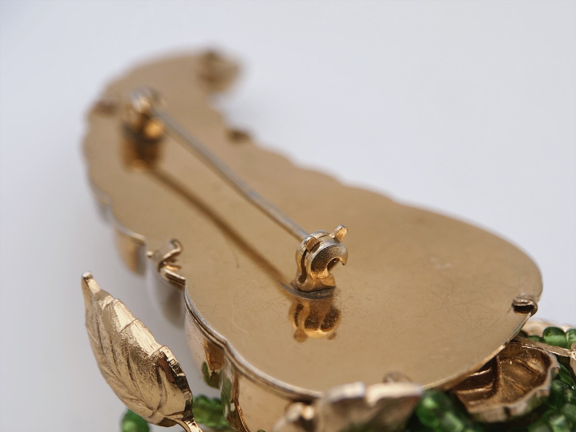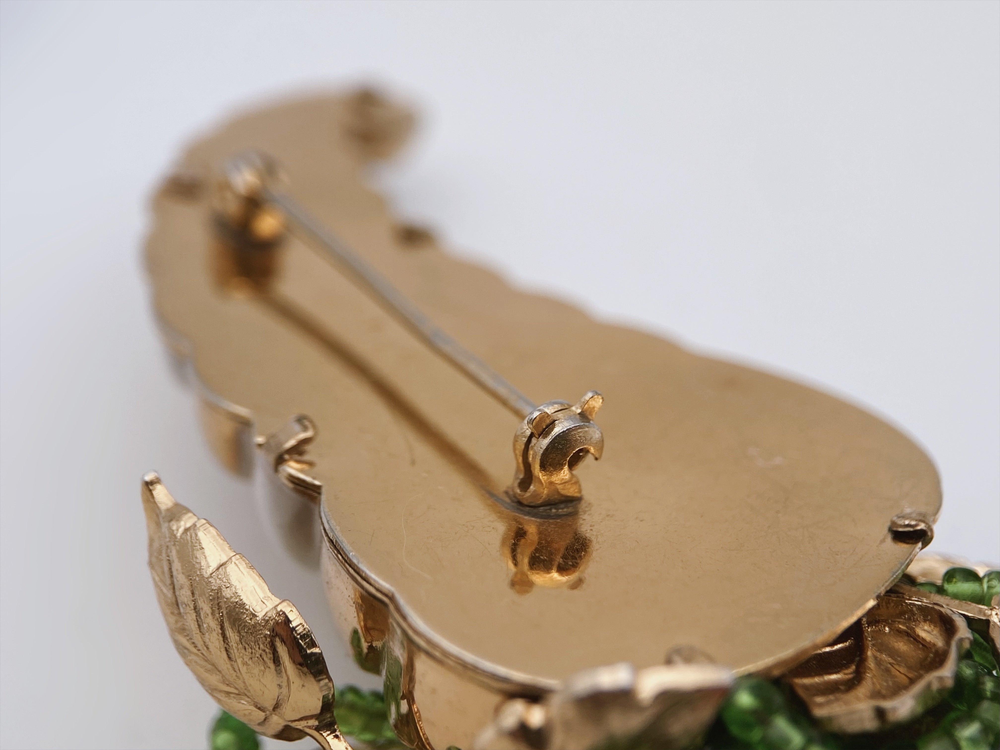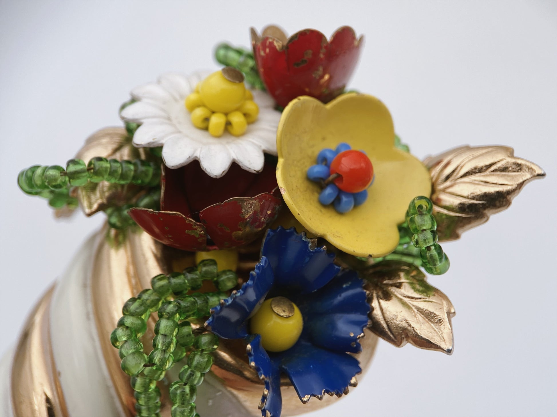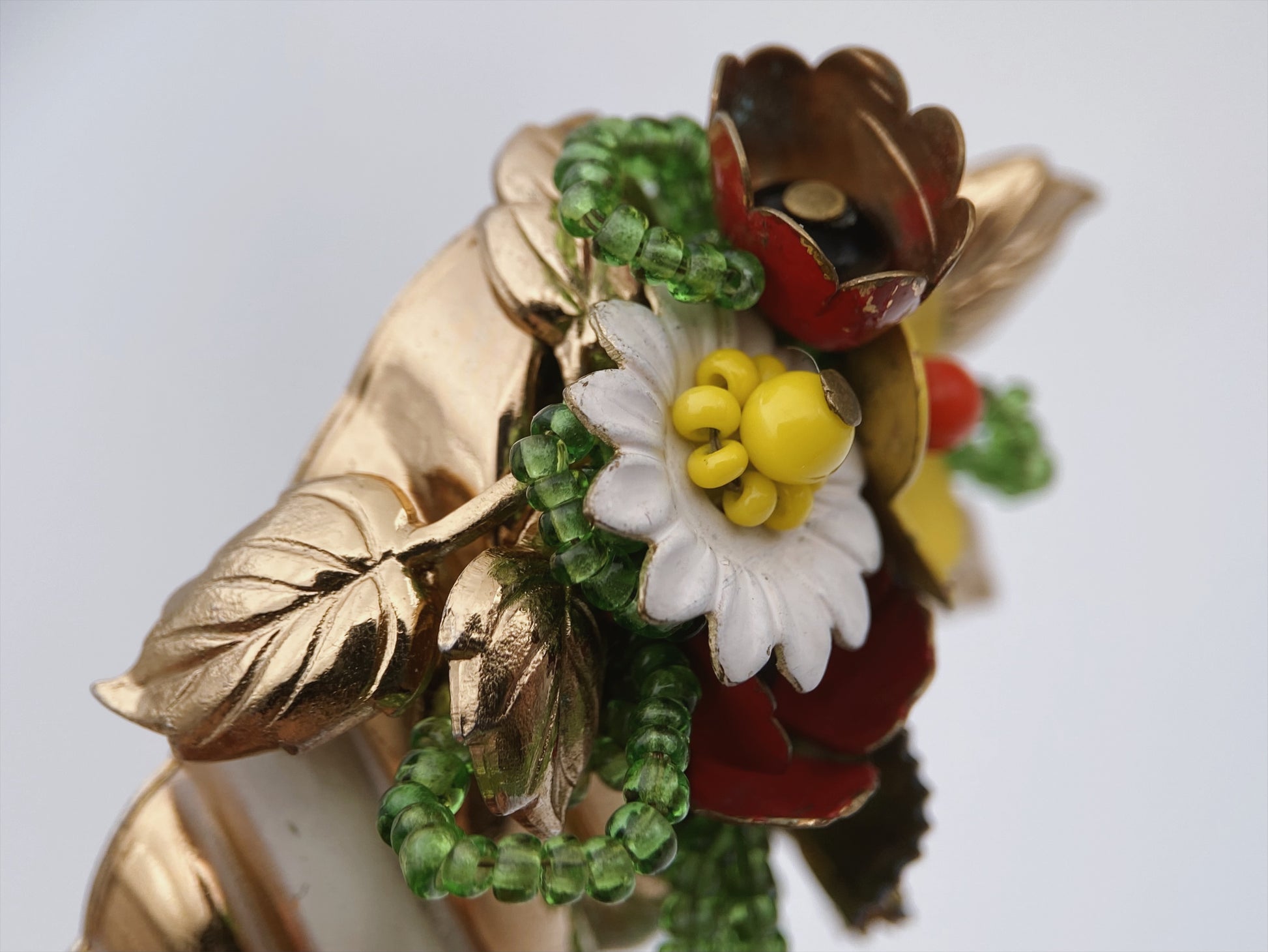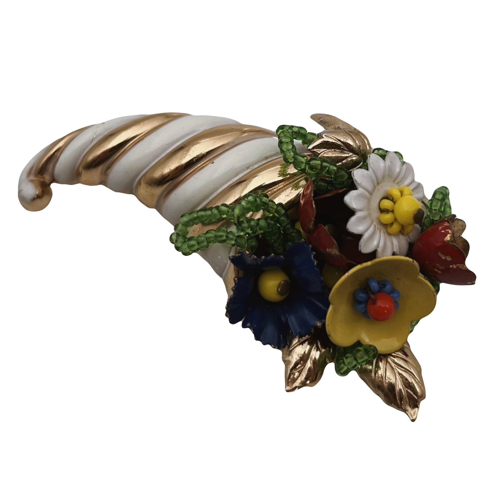 Tai „Gausybės rago“ (Cornucopia) motyvu dekoruota segė, greičiausiai pagaminta XX a. viduryje (apie 1940–1950 m.). Tokio tipo emalė ir stiklo karoliukų gėlių segės buvo gaminamos XX a. viduryje (apie 1940–1950 m.) JAV ir Europoje. Jas kūrė keli gamintojai – Coro, Haskell, Florenza, kartais net be aiškių žymėjimų.