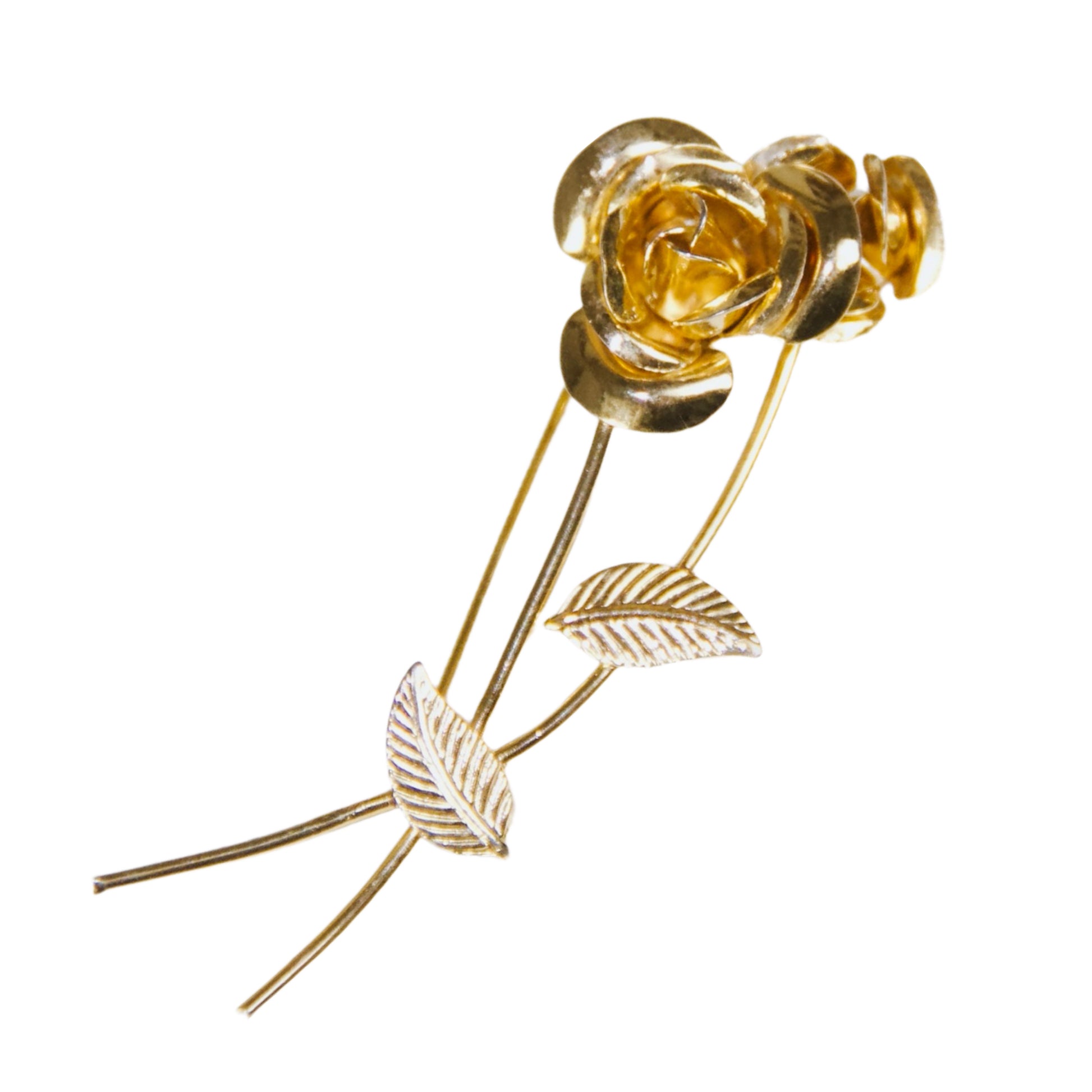Ši sagė vaizduoja dvi auksines rožes su lapeliais, ir yra puikus pavyzdys 1950–1970 m. vintažo sagių su gėlių motyvais sagių pavyzdys. Sagė yra elegantiško, modernistinio, bet tuo pačiu labai klasikinio stiliaus – toks buvo populiarus pokario laikotarpiu, ypač segėms segėti ant paltų ar suknelių.