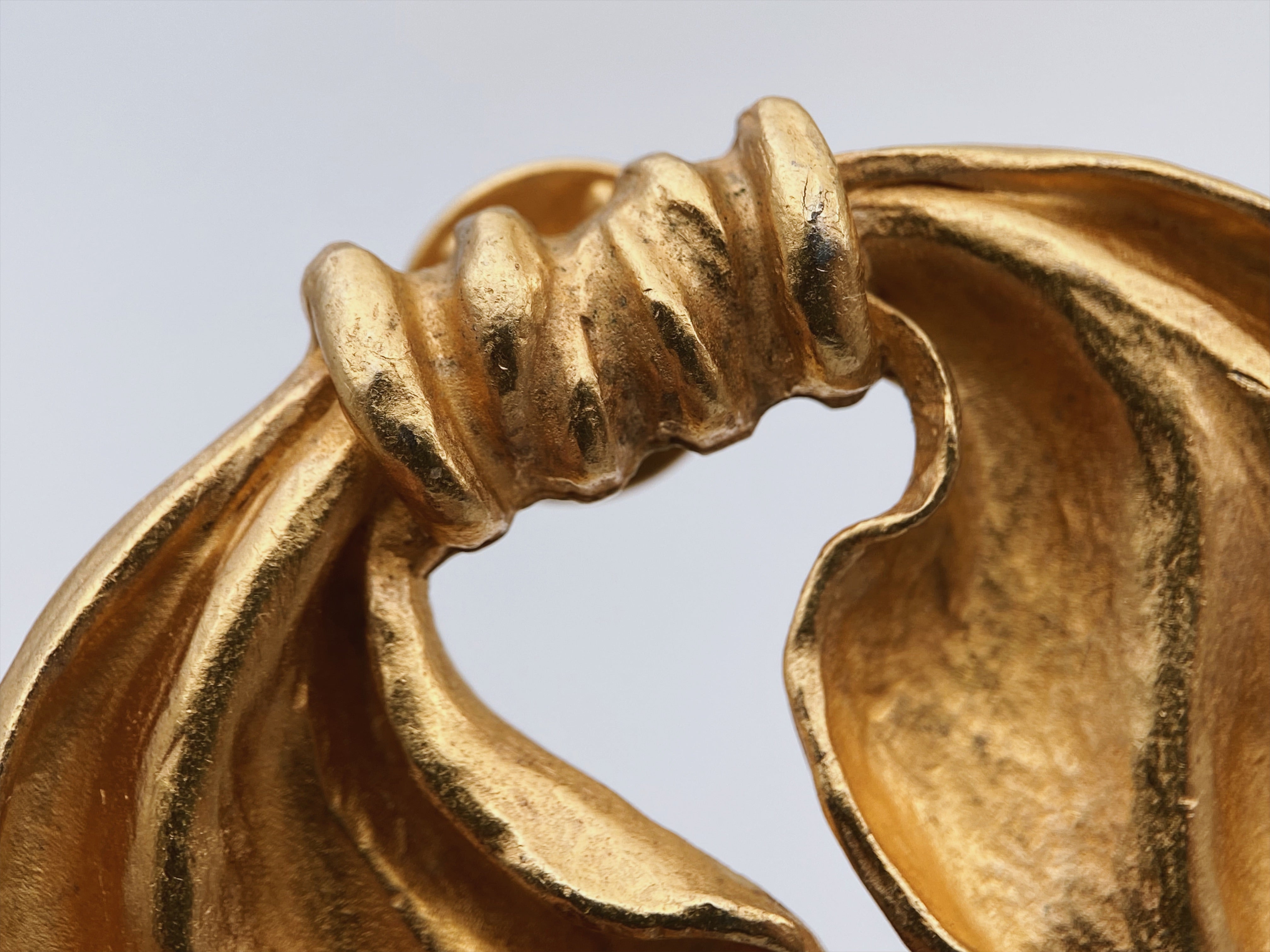 Unikali segė, pažymėta “Le Jacquard Français” prekės ženklu. Segės dizainas primena skulptūriškai sulankstytą audinį ar kaspiną – tai subtili aliuzija į jų tekstilės meistriškumą.