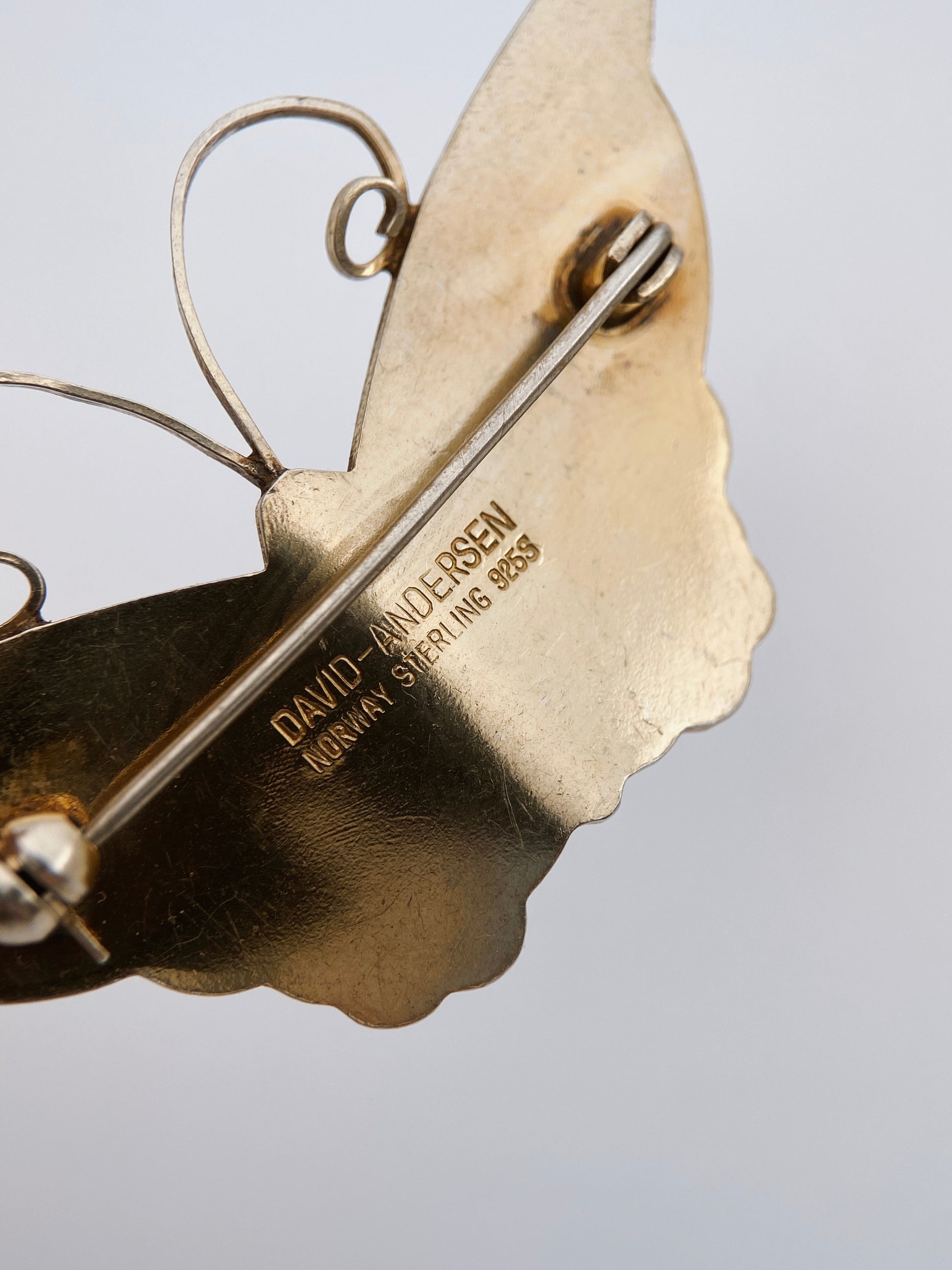 “David-Andersen” yra vienas prestižiškiausių ir seniausių Skandinavijos juvelyrikos namų, pasaulyje žinomas dėl aukštos kokybės sidabro emalio papuošalų. Prekės ženklas įkurtas 1876 m. Osle, Norvegijoje, o jo kūriniai iki šiol vertinami kolekcionierių visame pasaulyje. Nuo pat pradžių “David Andersen” garsėja meistrišku sidabro apdirbimu ir skulptūrine metalų technika. 1890–1930 m. pereina prie emalio technikų, kurios vėliau tampa jų vizitine kortele. Prasideda bendradarbiavimas su geriausiais Norvegijos emalio meistrais. 1950–1970 metai – “golden age”, kai sukuriama garsioji guilloché emalio linija: drugeliai, gėlės, lapai, žuvys. Būtent šiuo laikotarpiu gaminami ryškiaspalviai drugeliai, kaip ši sagė.