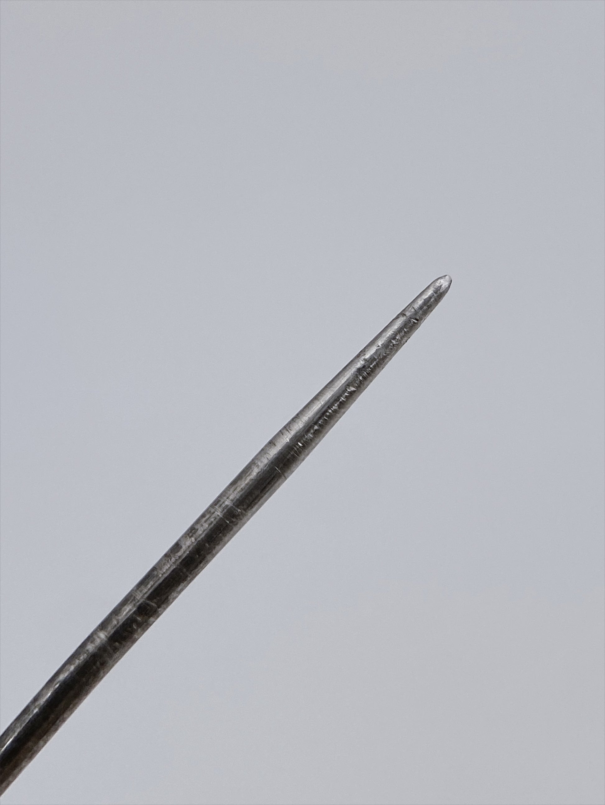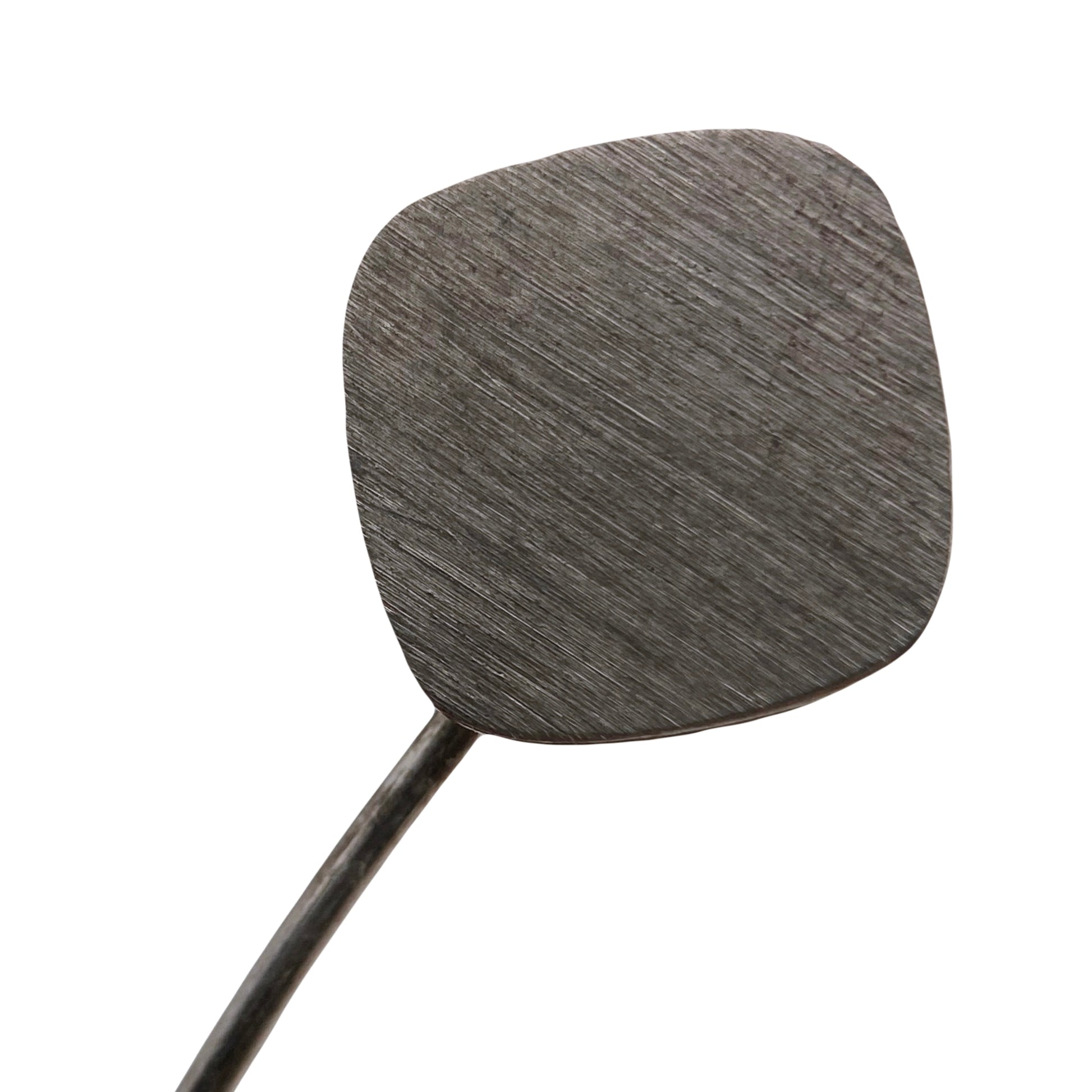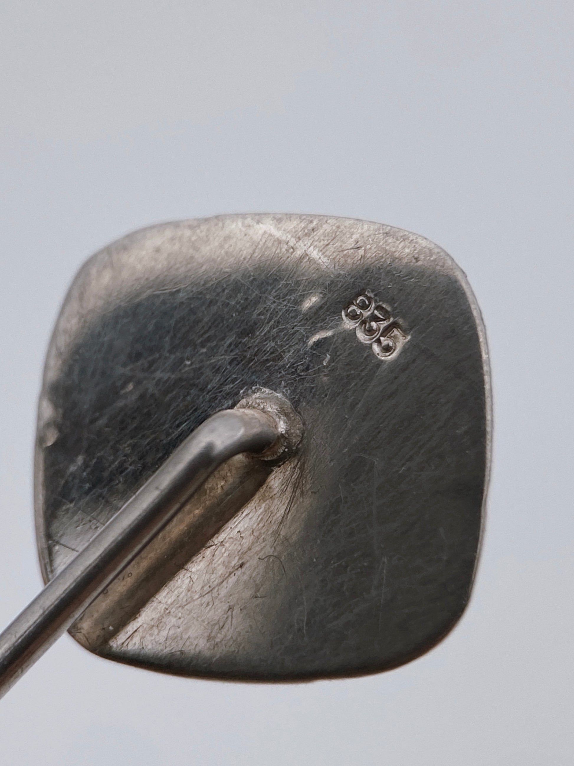 Išskirtinis modernistinio stiliaus sidabro smeigtukas, datuojamas 1950–1970 m. laikotarpiu. Pagamintas iš 925 prabos sidabro, su subtiliu šlifuoto („brushed“) paviršiaus efektu ir rankų darbo apdaila. Kvadratinė, švelniai užapvalintų kampų forma perteikia minimalistinę, skandinaviškam dizainui būdingą estetiką. Dekoruota adatėlė rodo meistrišką rankų darbą – kiekviena detalė atlikta preciziškai, su išlaikytu proporcijų balansu. Tai universalus papuošalas, tinkantis kaip skrybėlės, švarko atlapo ar šalikėlio segtukas, pasižymintis subtilia elegancija.