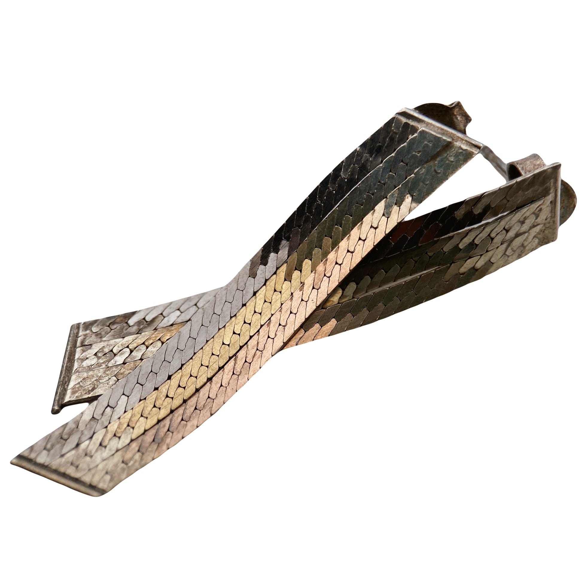 Sudėtis: sidabras Būklė: labai gera Išmatavimai: 3,5 cm x 0,5 cm Spalva: aukso, sidabro Žymėjimas: “925” Šalis: Italija Laikotarpis: 1980-1990 metai Rinkos vertė: 25-40 EUR