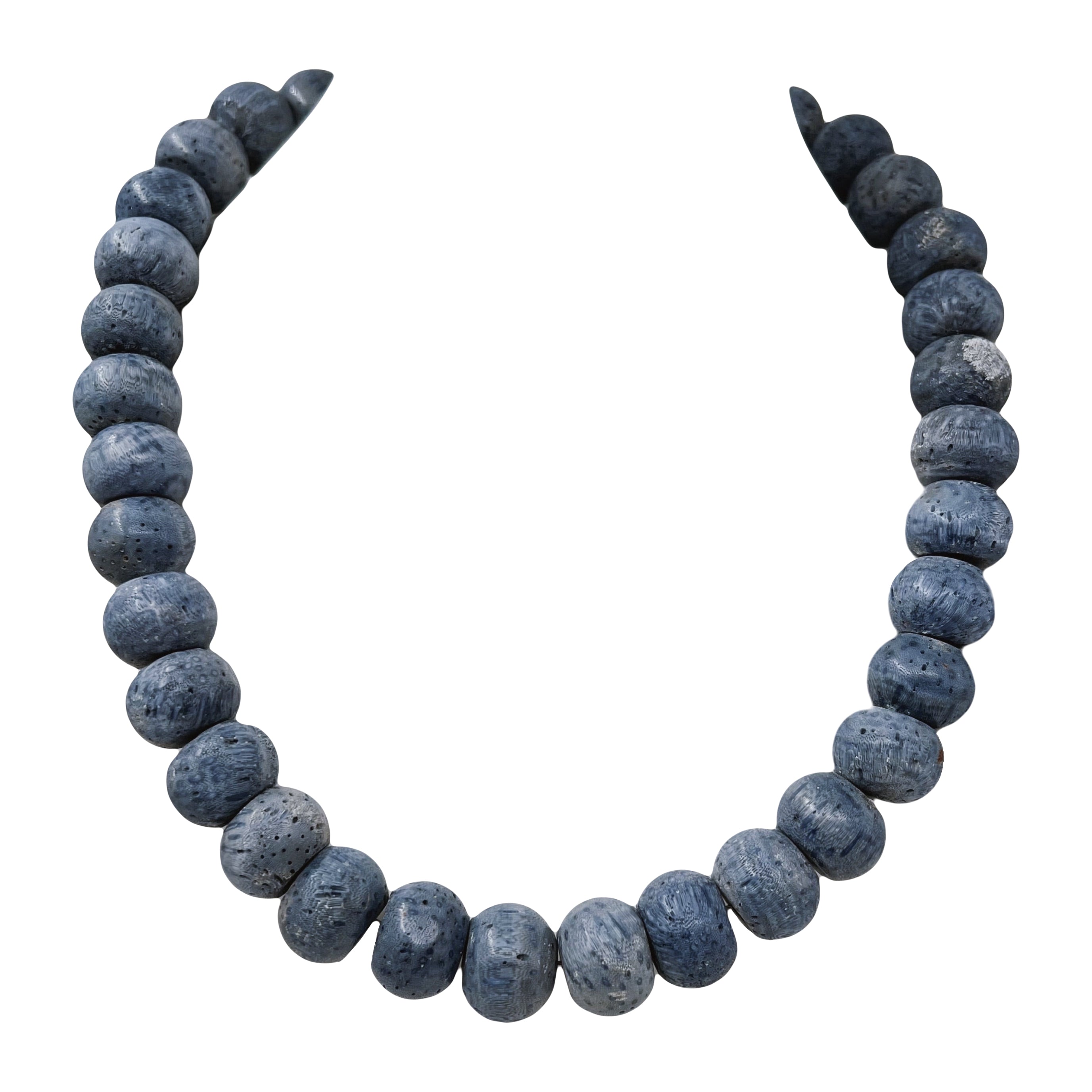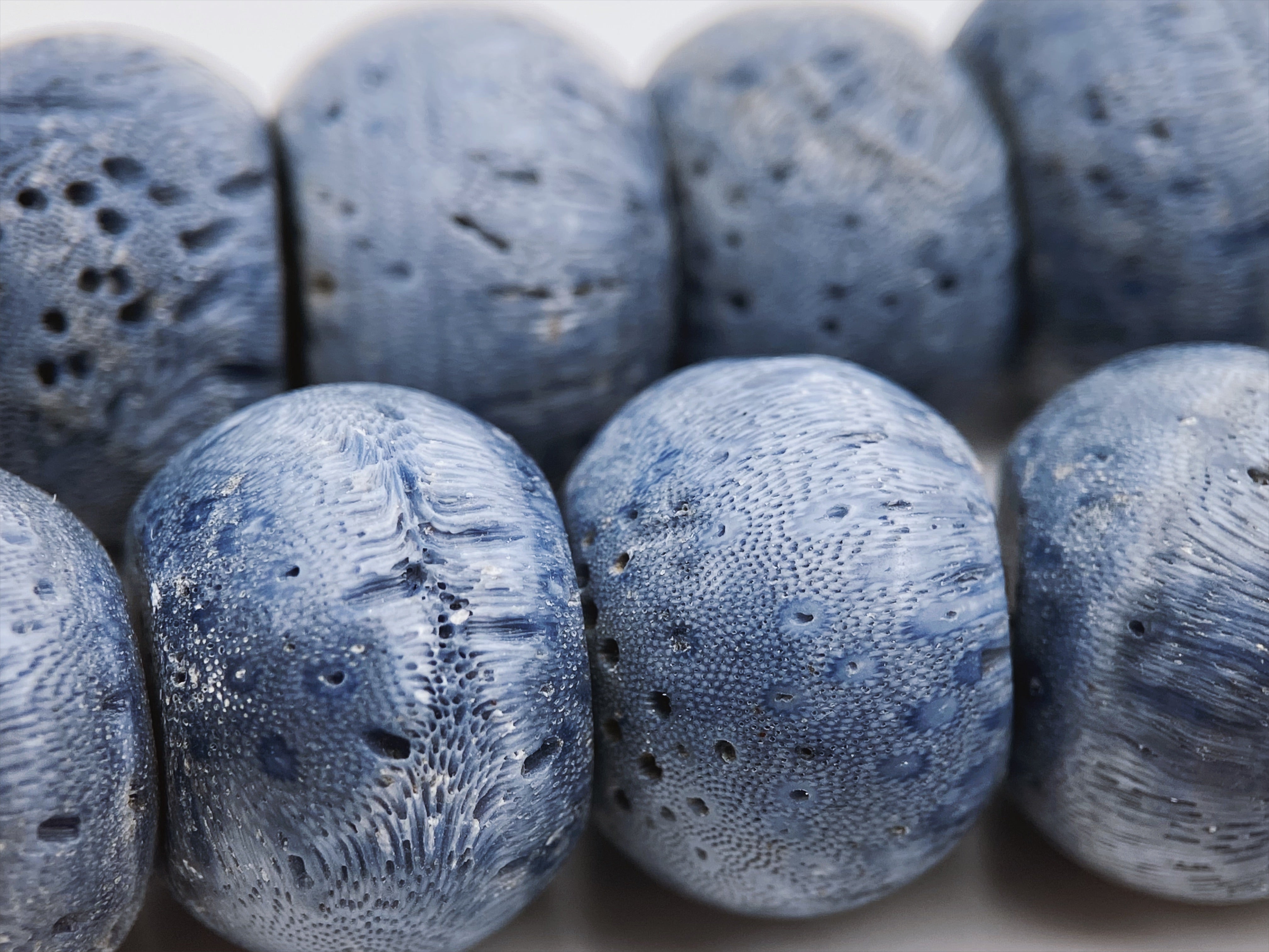 Tai rankų darbo vėrinys iš fosilinio koralo su sidabro užsegimu. Išskirtinis vėrinys iš natūralaus fosilinio koralo – akmens, susidariusio per milijonus metų iš suakmenėjusių rifinių organizmų. Karoliukai nudažyti sodria mėlyna spalva, išryškinančia natūralią porėtą tekstūrą. Vėrinys užbaigtas 925 prabos sidabro užsegimu, pabrėžiančiu elegantišką meistrystę.