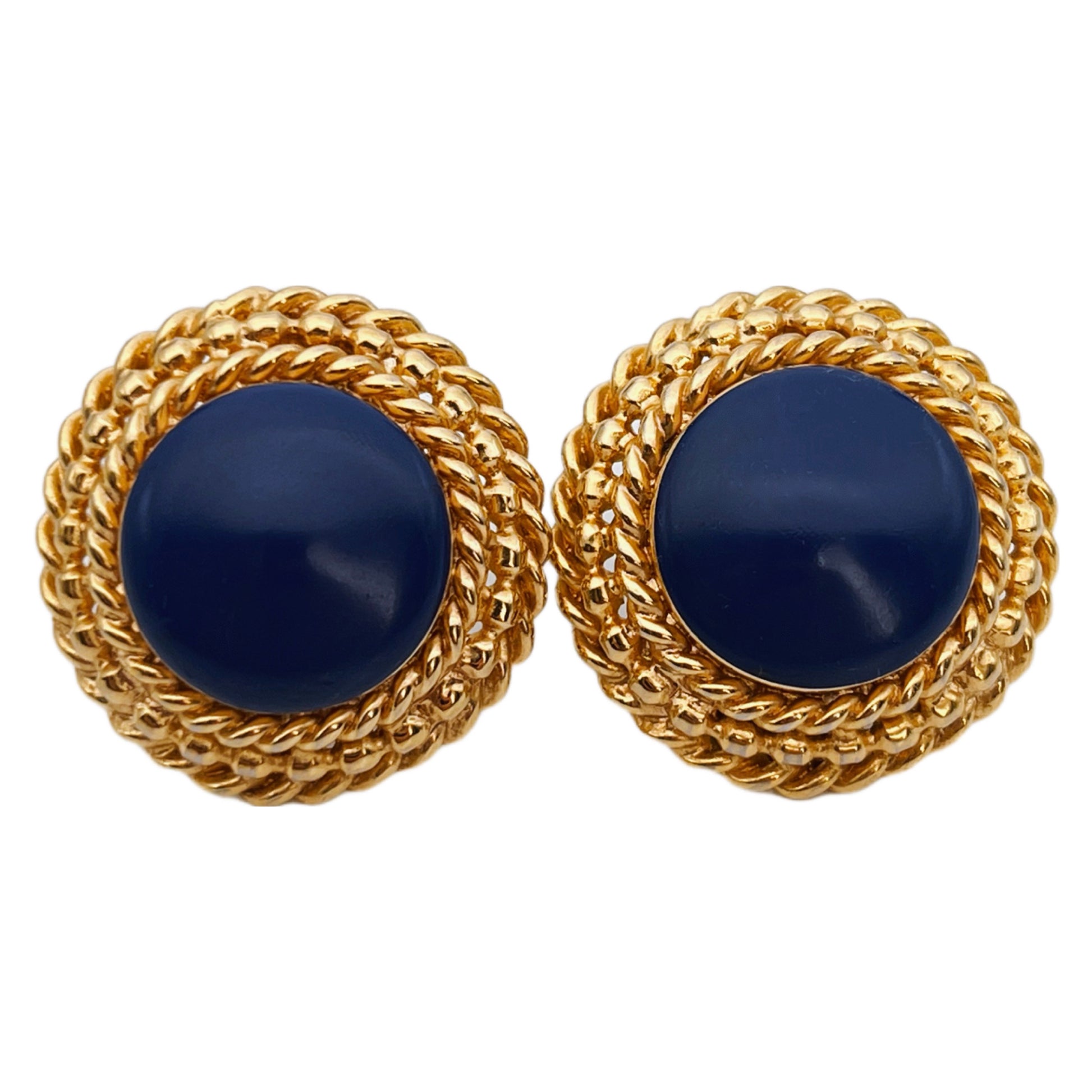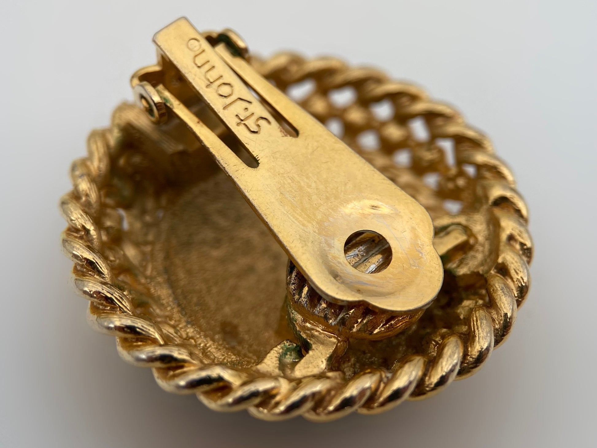 Šie auskarai – tai ST. JOHN bižuterijos pavyzdys, būdingas 1980–1990 m. šios amerikiečių mados namų kolekcijoms. Jie pasižymi šiomis savybėmis: paauksuotas metalas su mėlynu kabošonu, virvelės imitacijos tekstūra aplink centrą – tai dažnas ST. JOHN motyvas. Šis modelis – nėra itin retas, bet yra paklausus tarp ST. JOHN papuošalų gerbėjų.