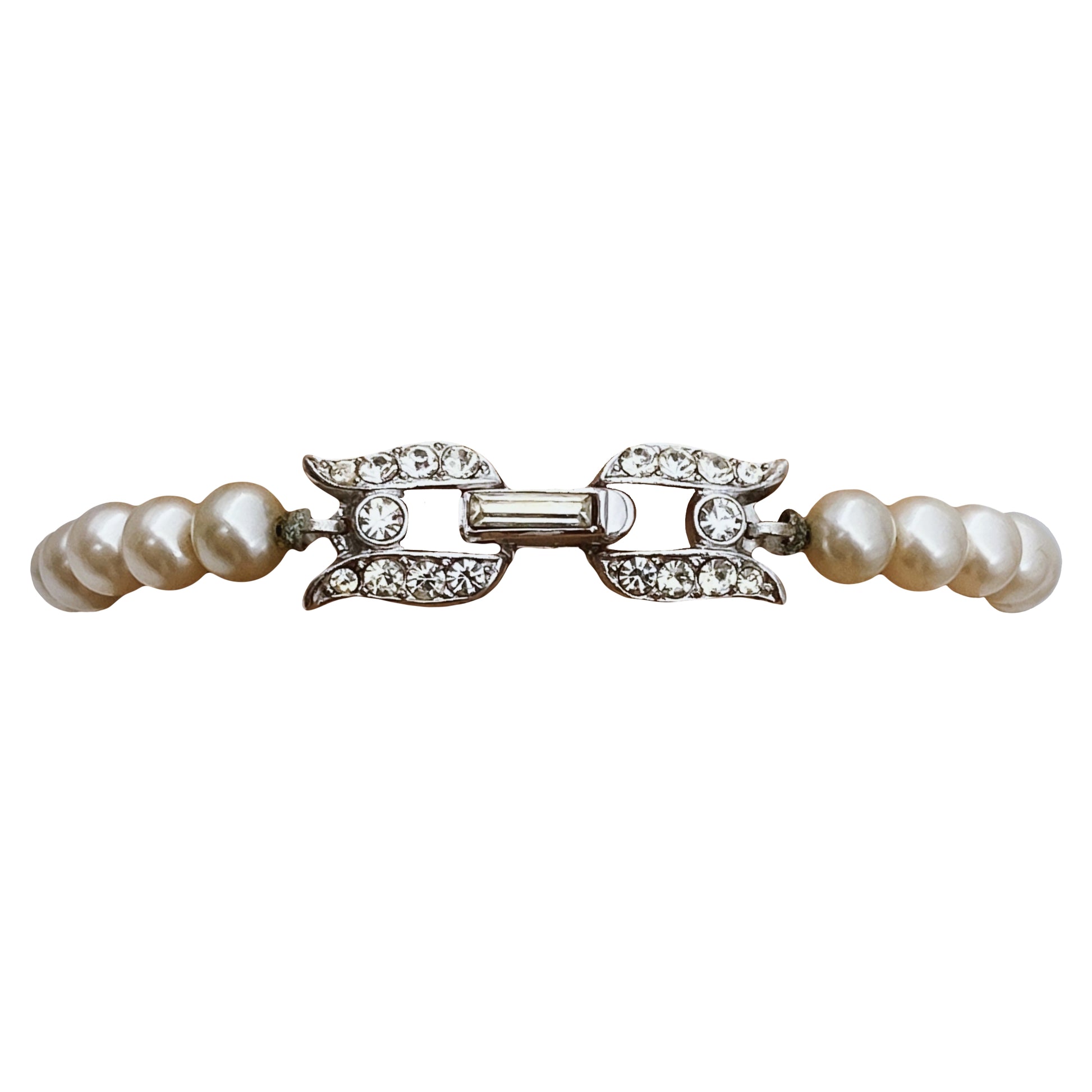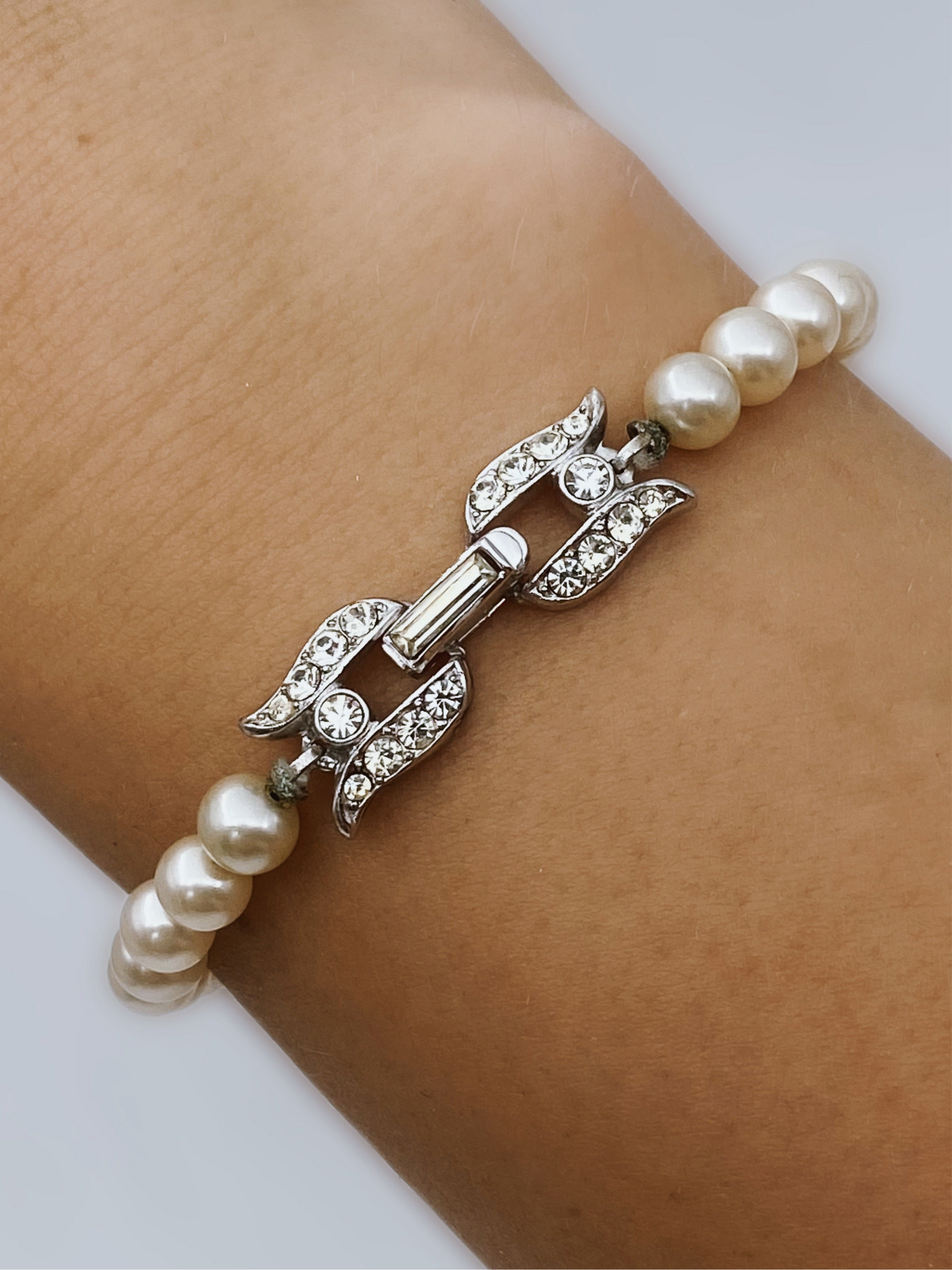 Apyrankė klasikinio Retro stiliaus, centre bagetinio šlifavimo kristalas su aplinkui išsidėsčiusiais apvaliais kristalais. Užsegimas išsiskiriantis, dekoratyvinis, o ne paslėptas – tai rodo ypatingą dizaino dėmesį. Seno stiliaus spynelė (box clasp) – atitinka 1940–1950 m. laikotarpį.