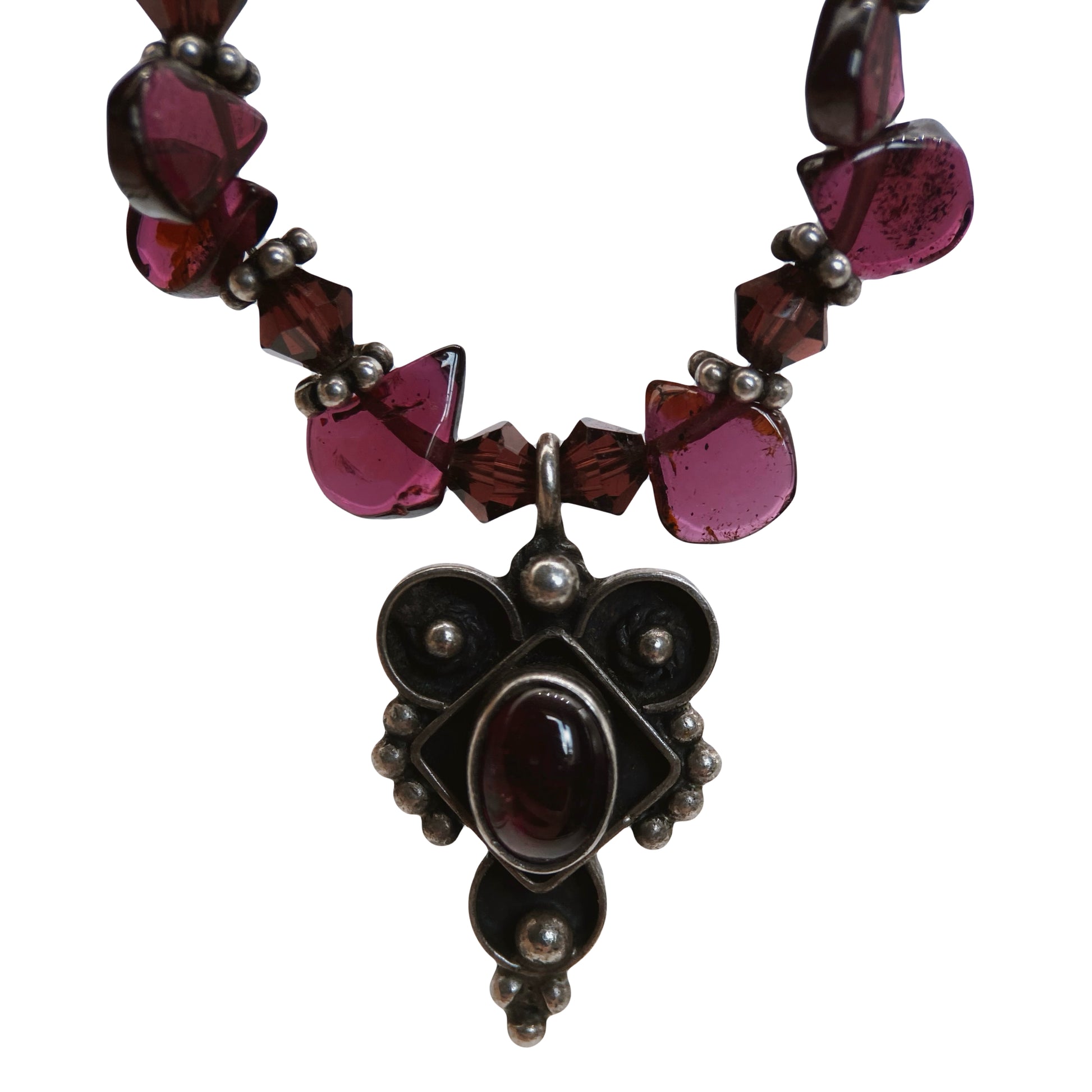 Tai dailus rankų darbo vėrinys su granatais ir 925 prabos sidabro detalėmis, įskaitant dekoruotą pakabuką. Vėrinyje panaudinti du granato tipai – neapdirbti tamsiai raudoni grynuoliai ir šlifuoti daugiasieniai karoliukai. Pakabukas – sidabrinis, su centriniu granato akmeniu, dekoruotas mažomis sidabrinėmis granulėmis.