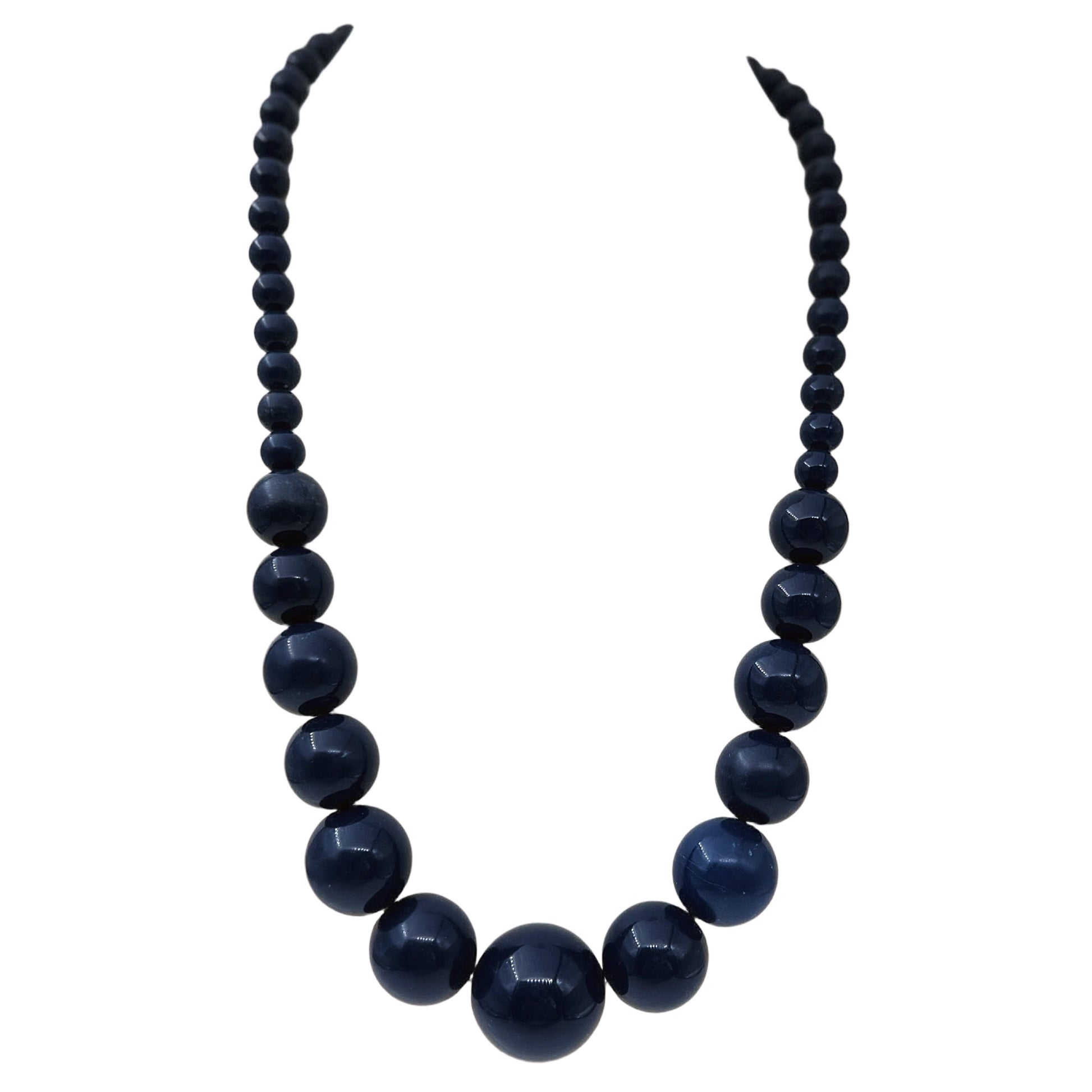 Klasikinis vėrinys iš blizgių tamsiai mėlynų karoliukų, kurie palaipsniui didėja centro link.