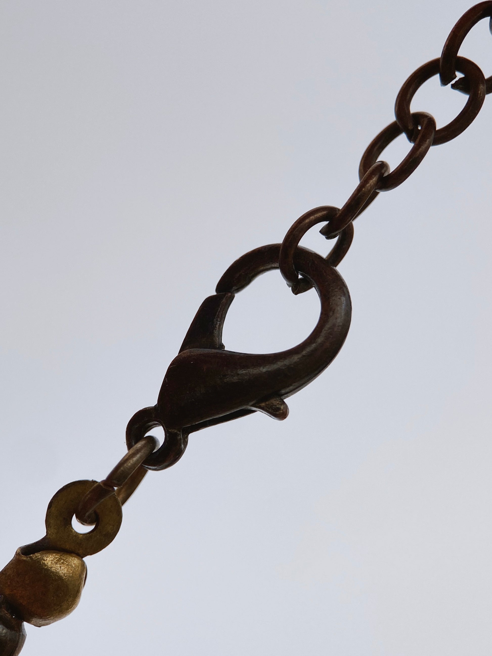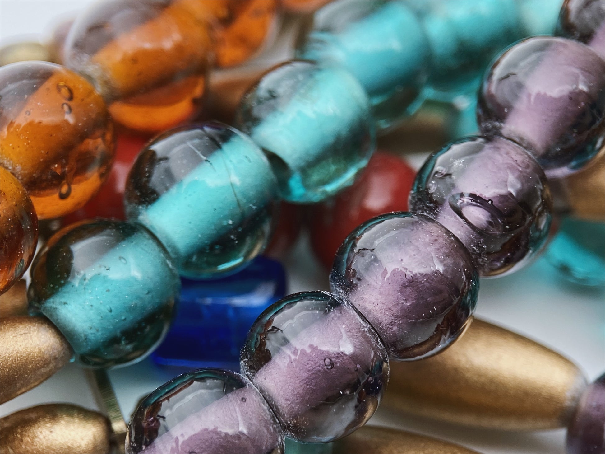 Tai įspūdingas, daugiasluoksnis vintažinis boho / etno stiliaus papuošalas, tikėtina sukurtas XX a. viduryje arba antroje pusėje, o kai kurios ypatybės leidžia daryti prielaidą apie JAV arba Vidurio Europos (pvz., Vokietijos ar Čekijos) kilmę. Dauguma karoliukų yra rankų darbo stiklas, su spalviniu sluoksniu, būdingu Murano tipo, Bohemijos arba Vakarų Vokietijos produkcijai. Matomi oro burbuliukai ir netolygumai – rodo, kad tai pūstas ar formuotas stiklas, dažnai naudotas 1940–1970 m. Spalvų paletė: gintarinė, safyrinė, turkio, alyvinė, vyšninė – populiari retro laikotarpiu. Šis vėrinys primena indėniško (Native American-inspired) arba bohemiškai etninio stiliaus papuošalus. Daugiasluoksnė struktūra su vamzdeliais ir stiklo karoliukais dažnai naudota JAV gaminamuose pseudoiniškuose papuošaluose 1960–1980 m., ypač „hipių eros“ metu.