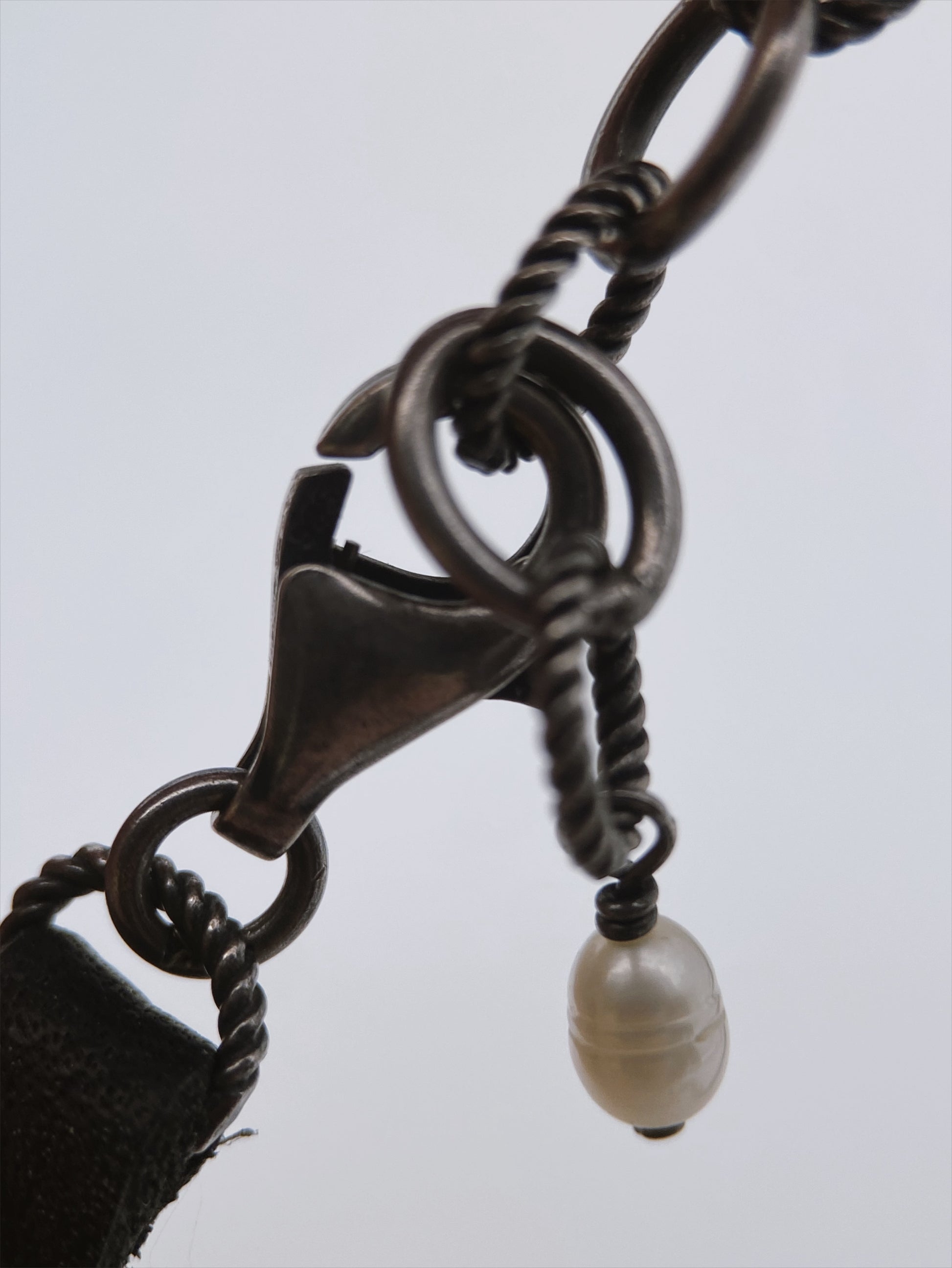 Sudėtis: sidabras, perlai, natūralūs akmenukai, oda