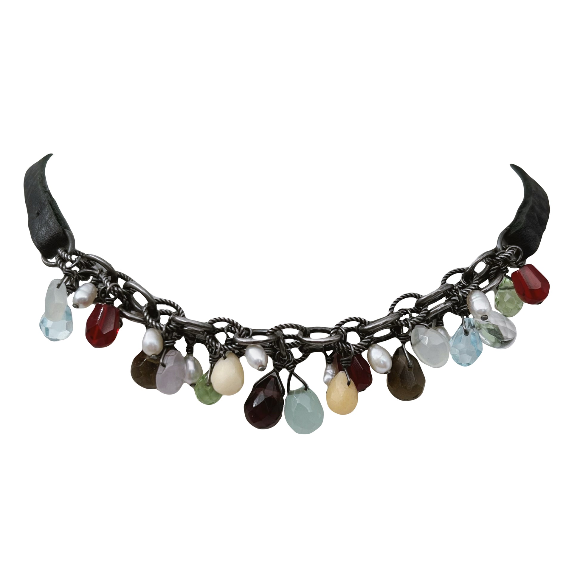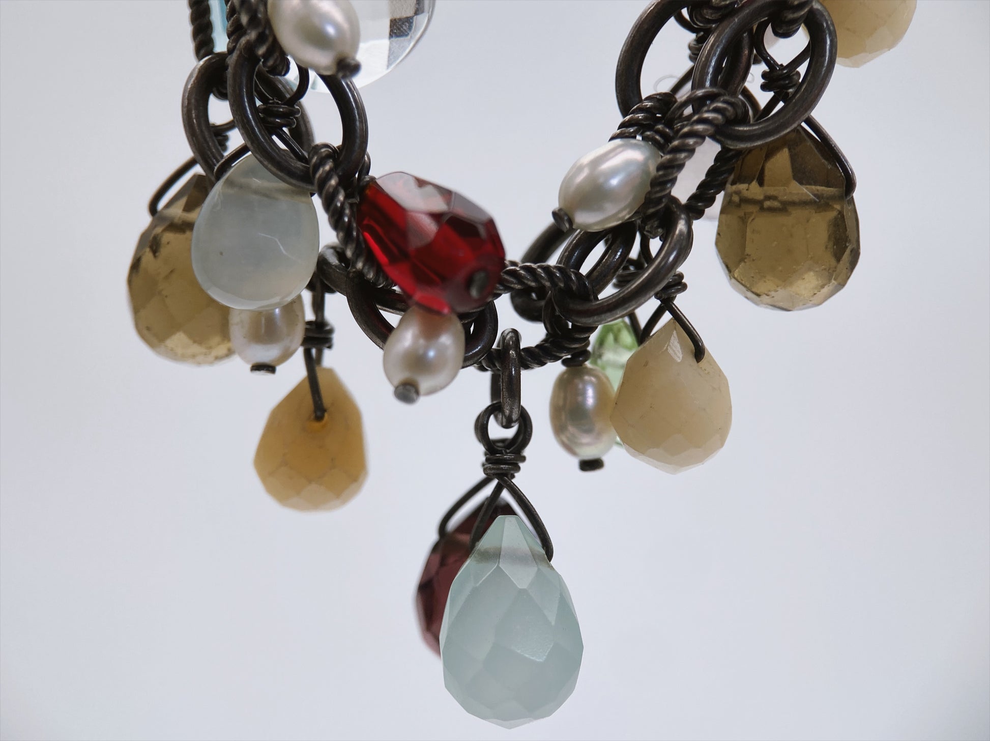 Šis vėrinys yra meniško, rankų darbo stiliaus su įvairių spalvų lašo formos pakabučiais iš natūralių ir dirbtinių akmenų bei perlų. Supintas metalas ir pakabukai rodo kruopštų meninį rankų darbą. Mišrus natūralių akmenukų ir perlų derinys – granatas, aventūrinas, kvarcas, chalcedonas, „keshi“ tipo gėlavandeniai perlai. Tai gali būti vienetinis arba riboto leidimo kūrinys, pagamintas juvelyro ar mažos studijos.