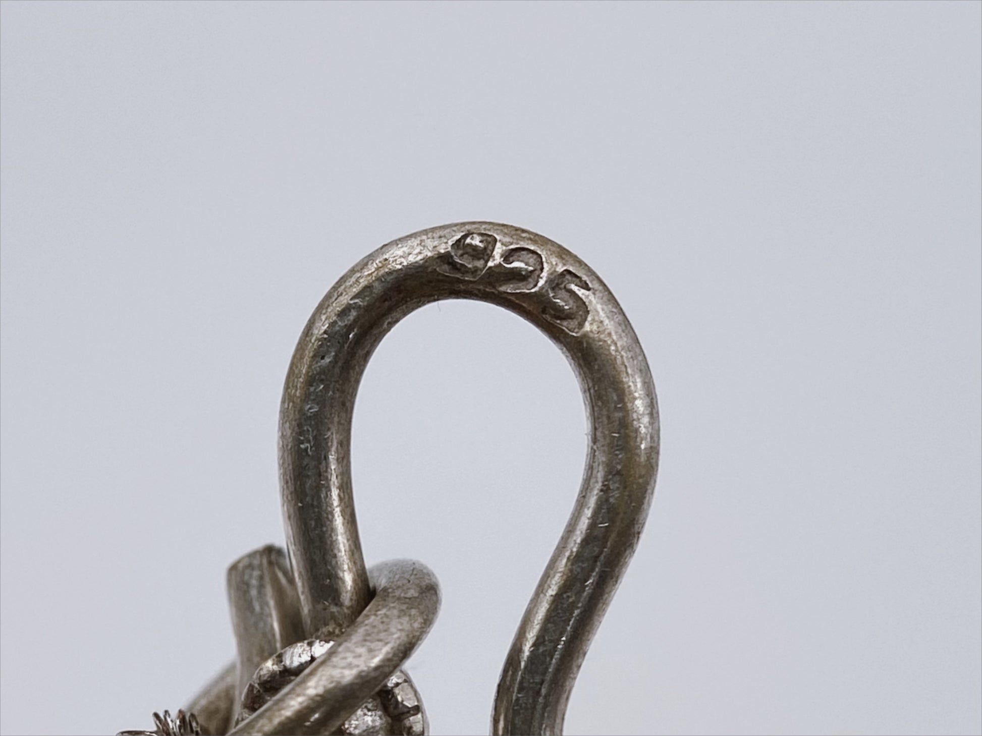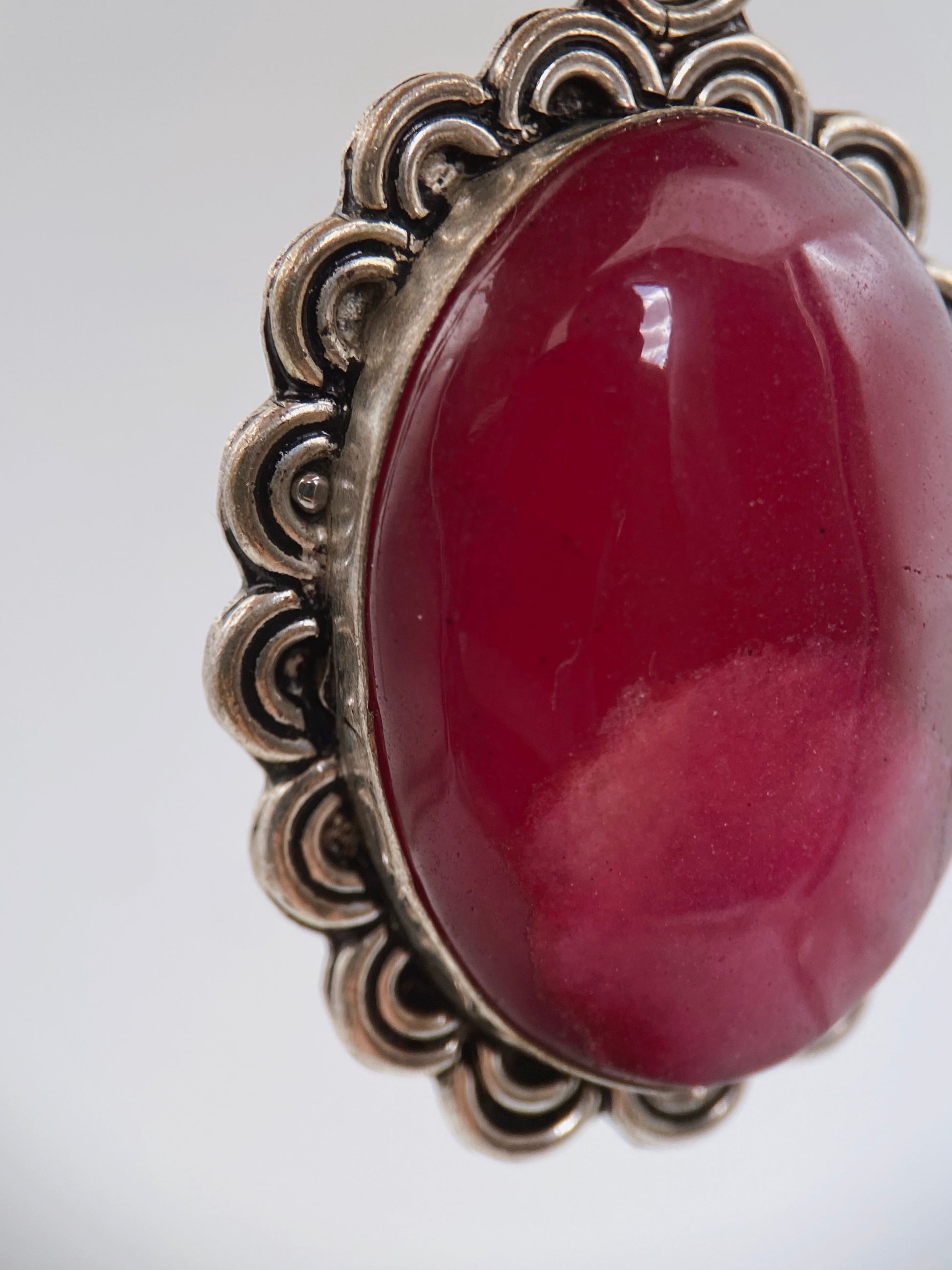 Sudėtis: sidabras, akmuo (tikėtina raudonasis jaspis arba dažytas chalcedonas)