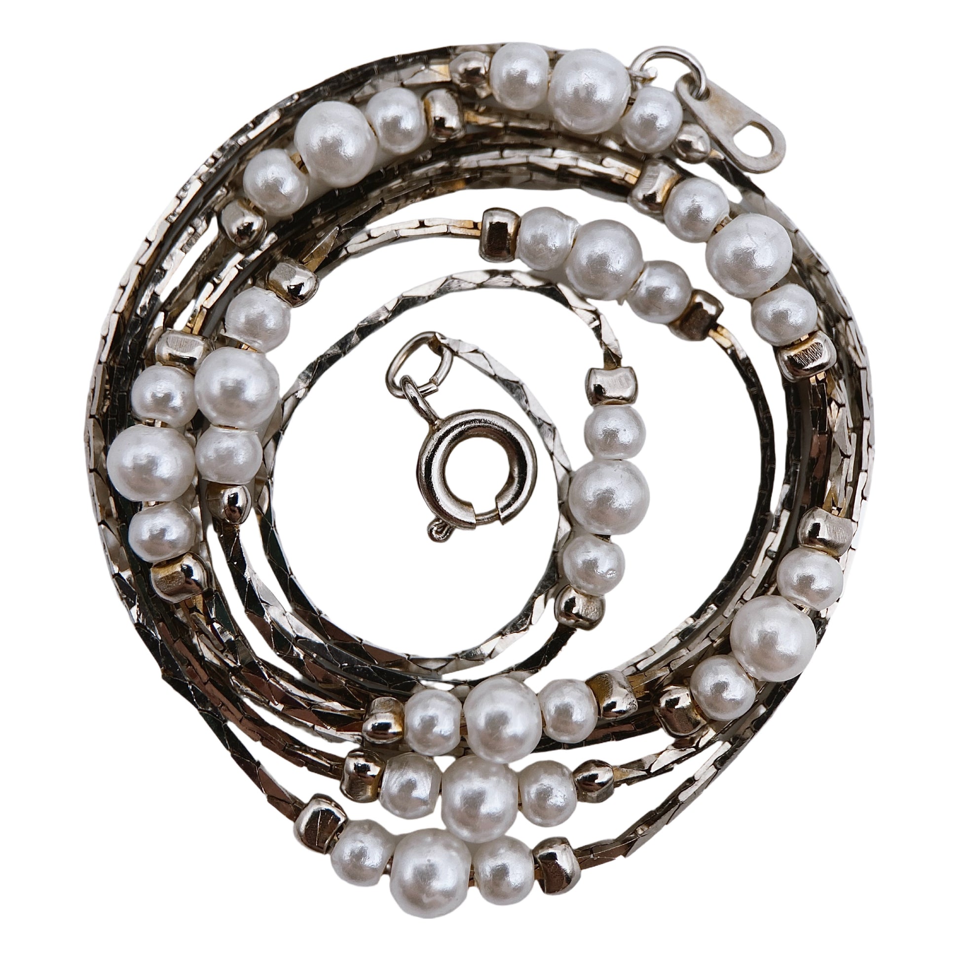 Sudėtis: metalas, perlų imitacijos Būklė: labai gera Išmatavimai: 77 cm Spalva: aukso, balta Žymėjimas: "Korea" Šalis: JAV Laikotarpis: 1980-1990 metai Rinkos vertė: 15-20 EUR