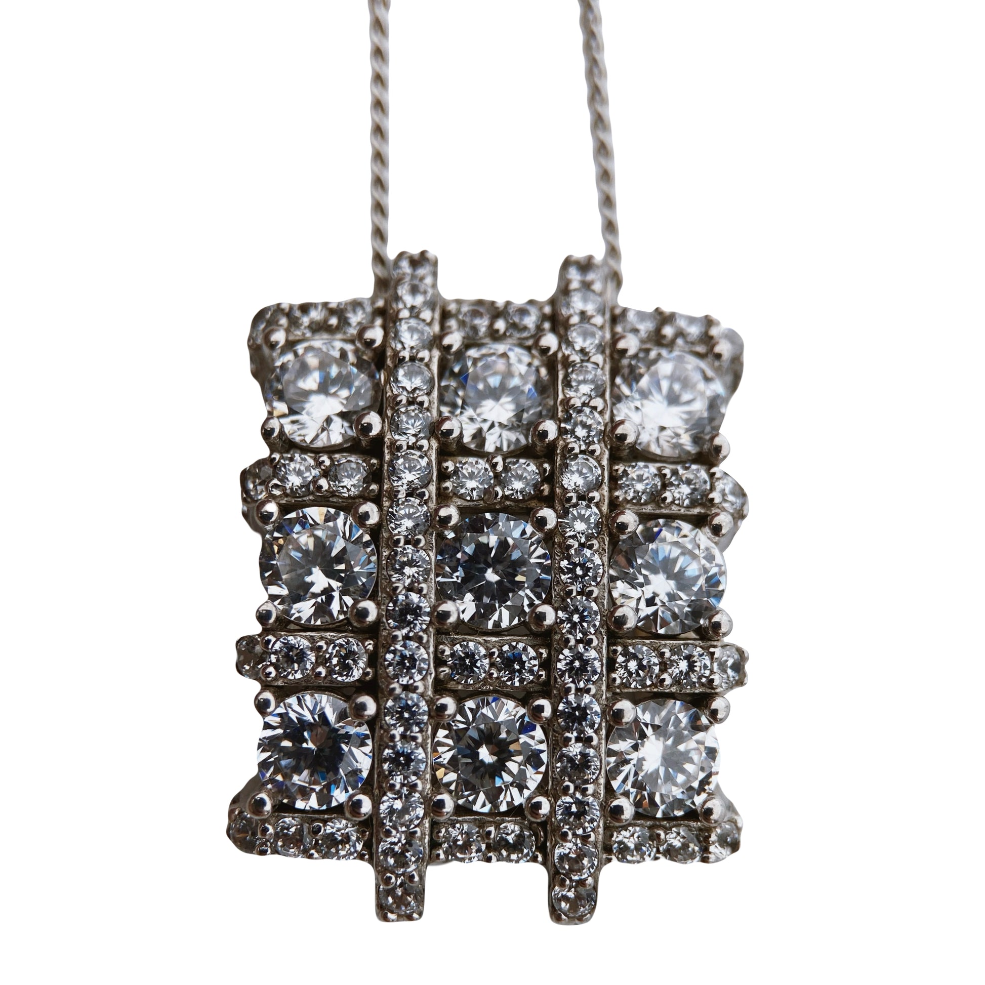 Šis pakabukas yra sukurtas garsaus juvelyro Jose Hess, kurio vardas yra išgraviruotas ant papuošalo nugarėlės. Papuošalas pagamintas iš 925 prabos sidabro ir pažymėtas „CZ“, reiškiančiu kubinį cirkonį – tai dirbtinis brangakmenių pakaitalas, dažnai naudojamas vietoje deimantų dėl panašios išvaizdos. Dizainas: geometriškai struktūruotas, masyvus, iš kelių eilių kubinių cirkonių, įrėmintų į “grotelėmis” dekoruotą pakabuką – būdingas Jose Hess modernistiniam stiliui.