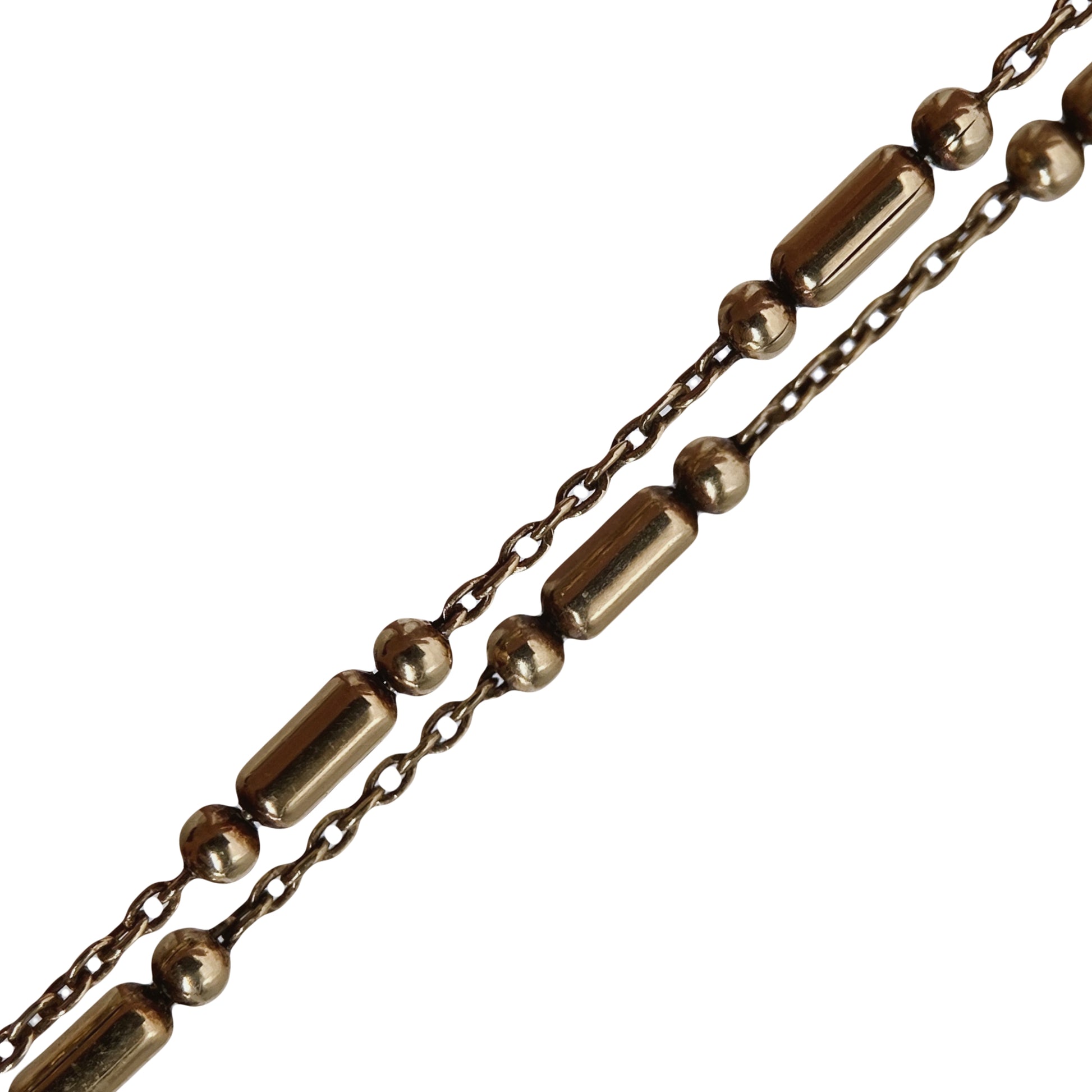 Grandinėlė susideda iš cilindro formos segmentų, atskirtų mažais rutuliukais, sujungtais grandinėle. Tai primena Art Deco stilių, bet gamyba ir forma labiau nurodo į šiuolaikinį arba XX a. pabaigos dizainą.