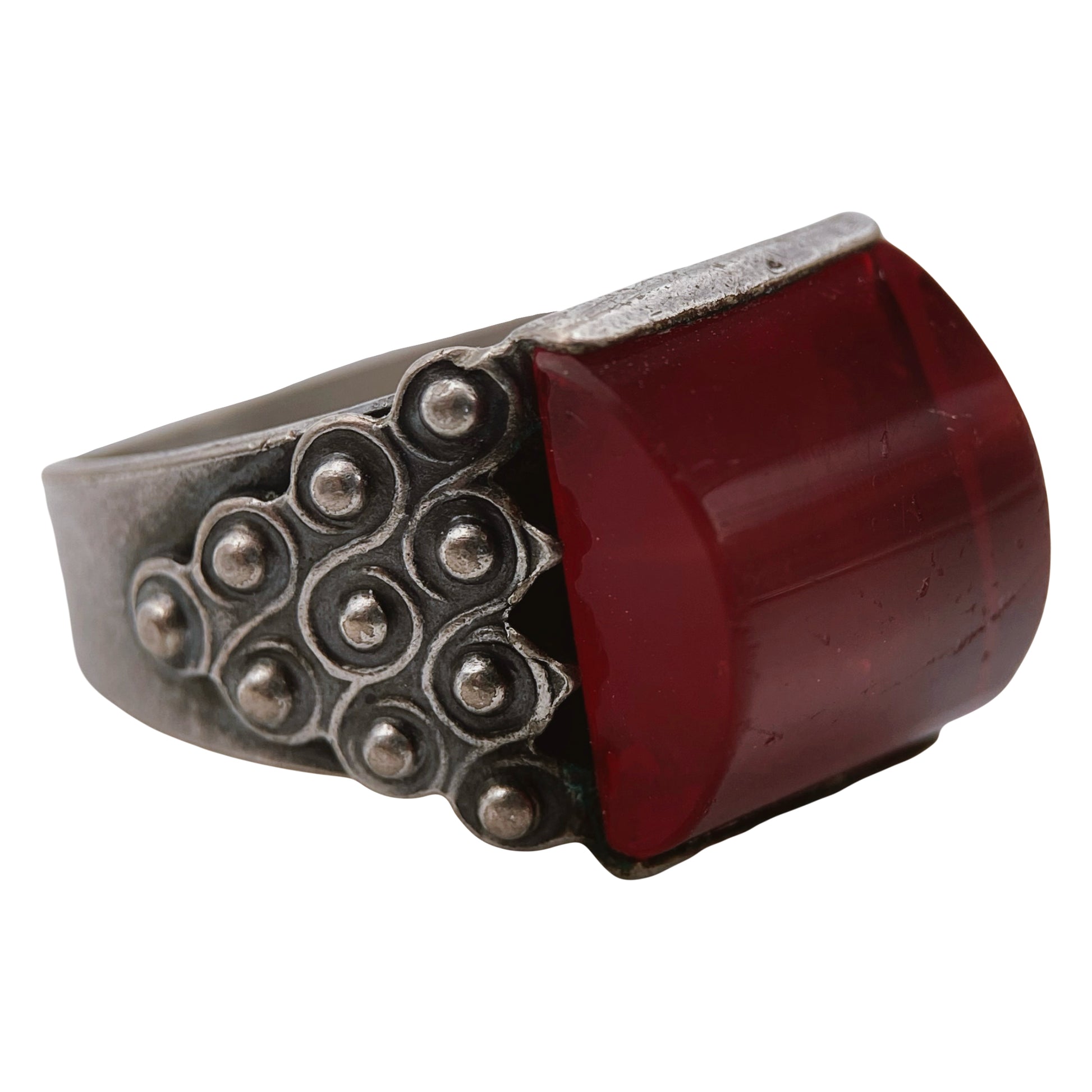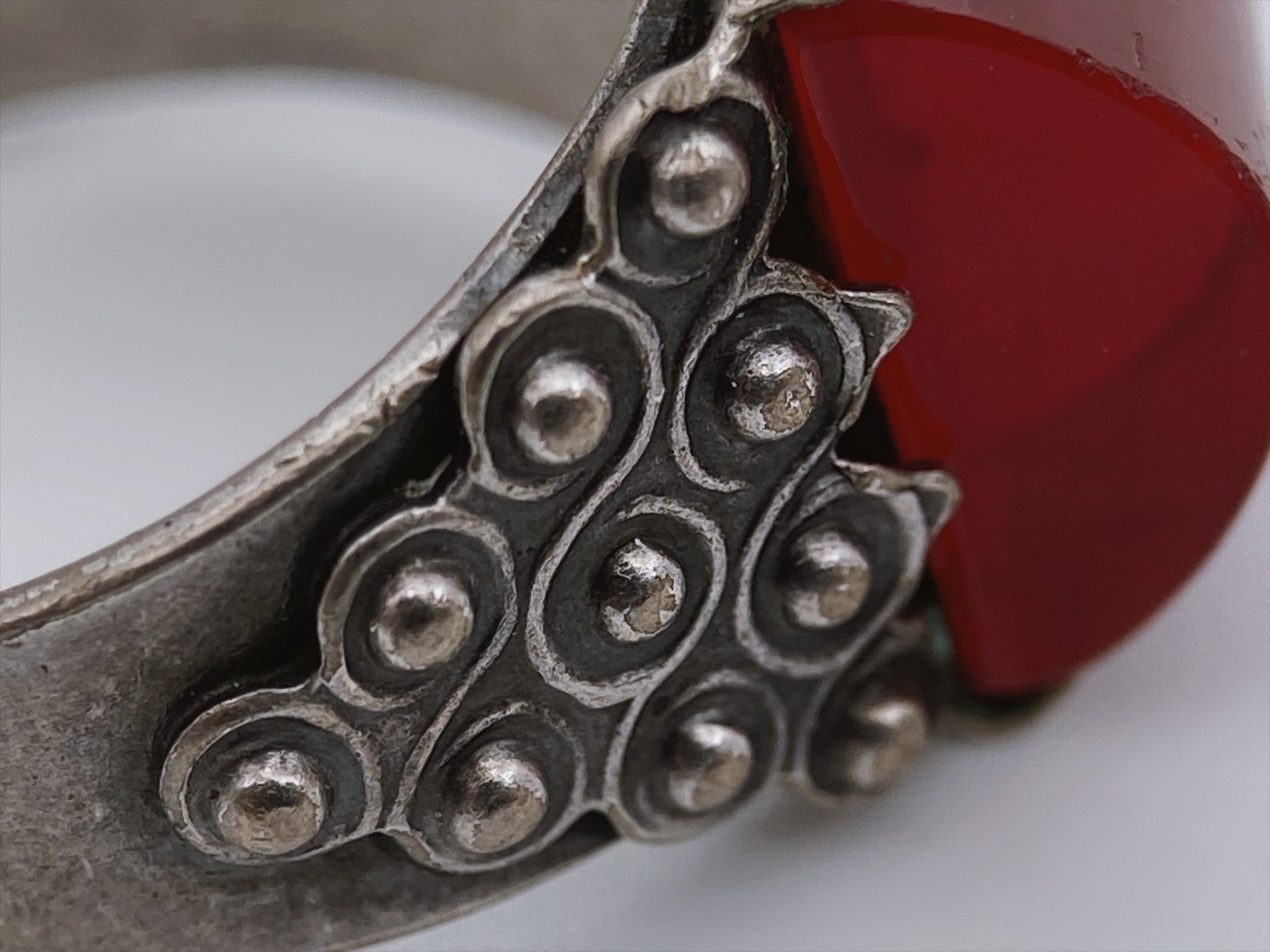 Šis žiedas, pažymėtas „LKM“, tikėtina esantis rankų darbo, su etninio ar tautinio stiliaus įkvėpimu – primenantis tradicinį Baltijos regiono sidabro papuošalų dekorą. Ornamentika su apskritimais (granuliacija) ir geometriniais elementais labai būdinga etniniams ar liaudies motyvais įkvėptiems papuošalams; tai gali būti Baltijos (ypač Latvijos ar Lietuvos tautodailė). Galbūt tai žiedas, kuris pagamintas Lietuvos Liaudies Meistrų Kūrybos Namų (neturime informacijos kaip buvo žymimi jų papuošalai). Šis gamintojas dažnai gamino papuošalus su tautiniais, baltų, archeologiniais motyvais.