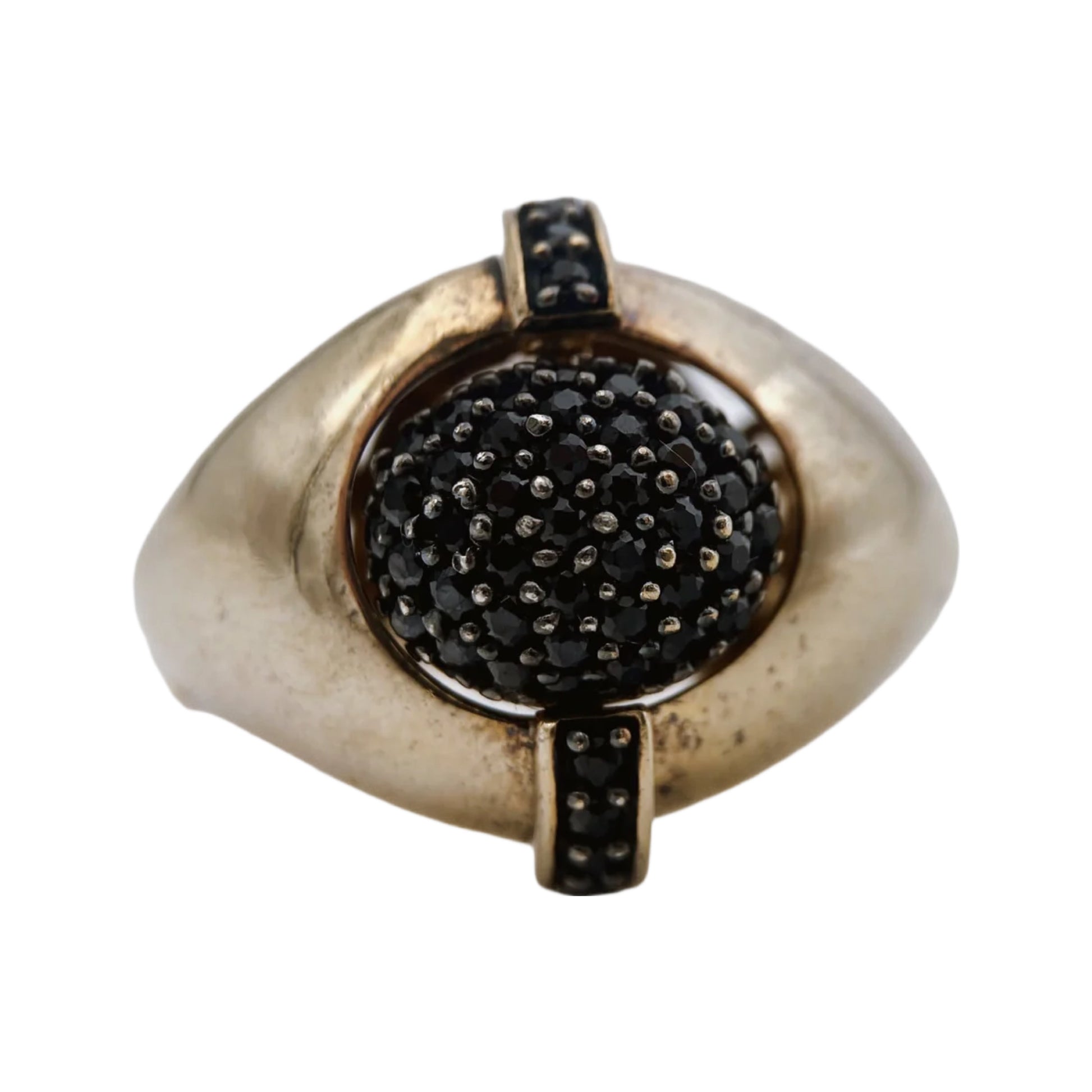 “925” – sidabras (92,5 % gryno sidabro), “GP” – gold plated (paauksuotas), t. y. ant sidabro dengtas plonas aukso sluoksnis. Žiede keičiamas centrinis akmuo. Vienoje žiedo versijoje - juodi pavé tipo kristalai (spinelis), kitoje - etiopinis “Welo” opalas (natūralus opalas, randamas Welo regione Etiopijoje). “TJC” – tai The Jewellery Channel, britų juvelyrikos prekės ženklas.