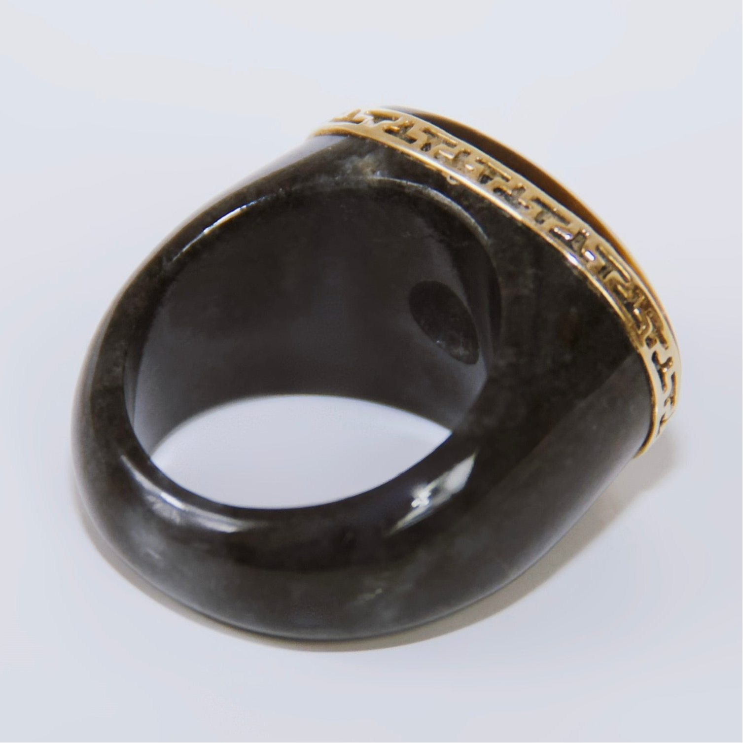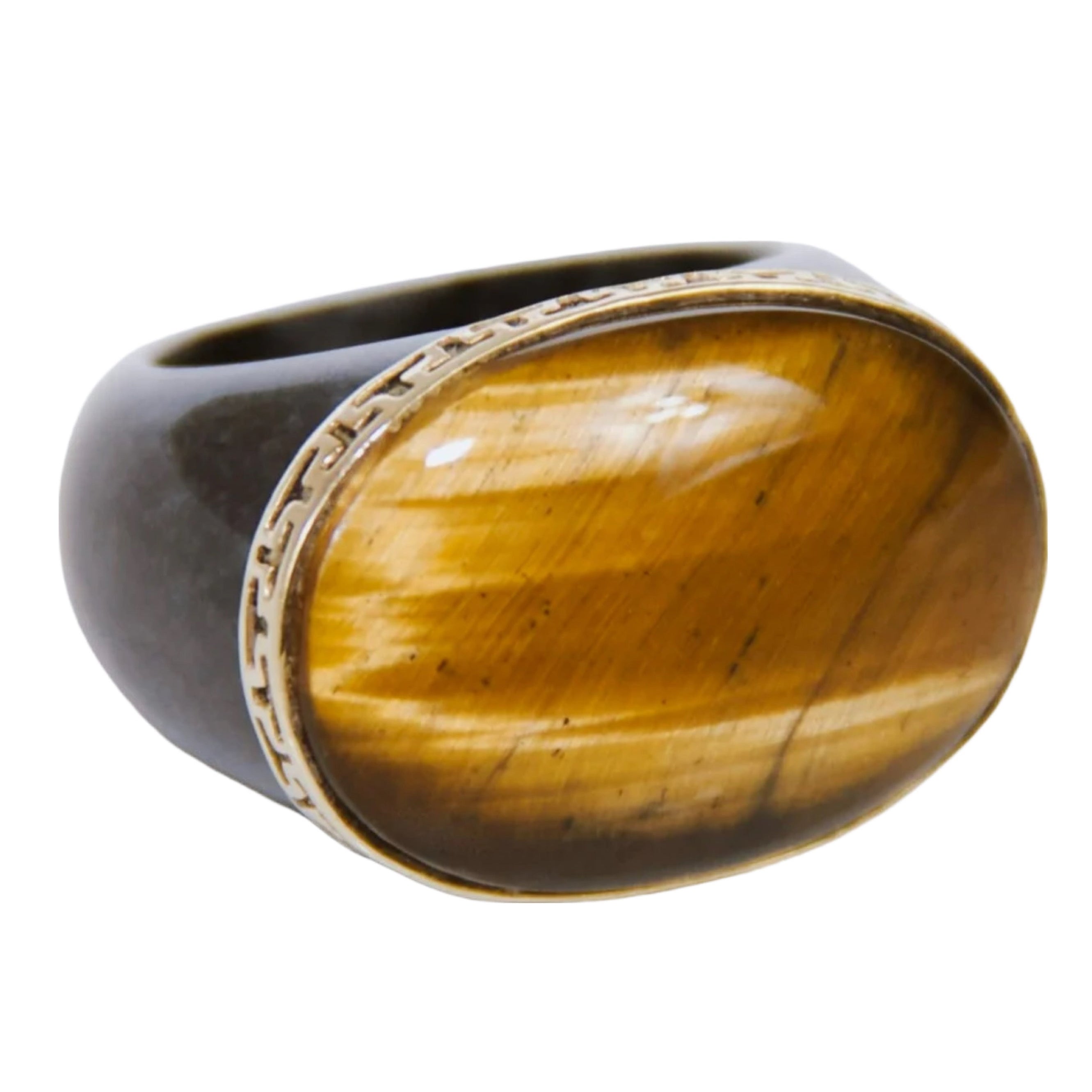 Tai išraiškingas ir išskirtinis “unisex” žiedas, pasižymintis natūralių medžiagų naudojimu ir etniniu-modernistiniu dizainu.